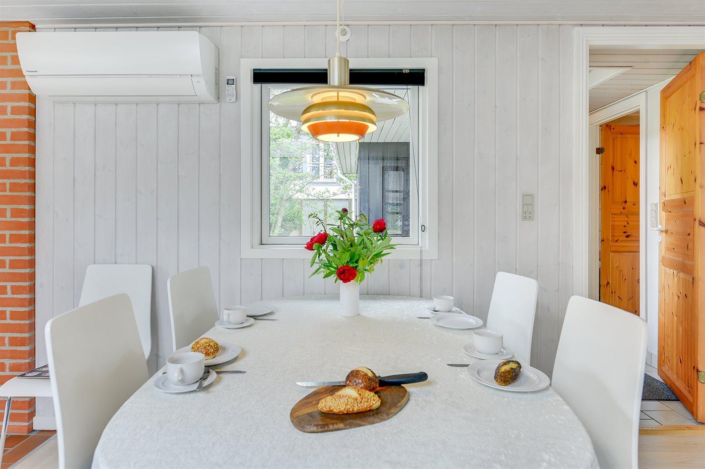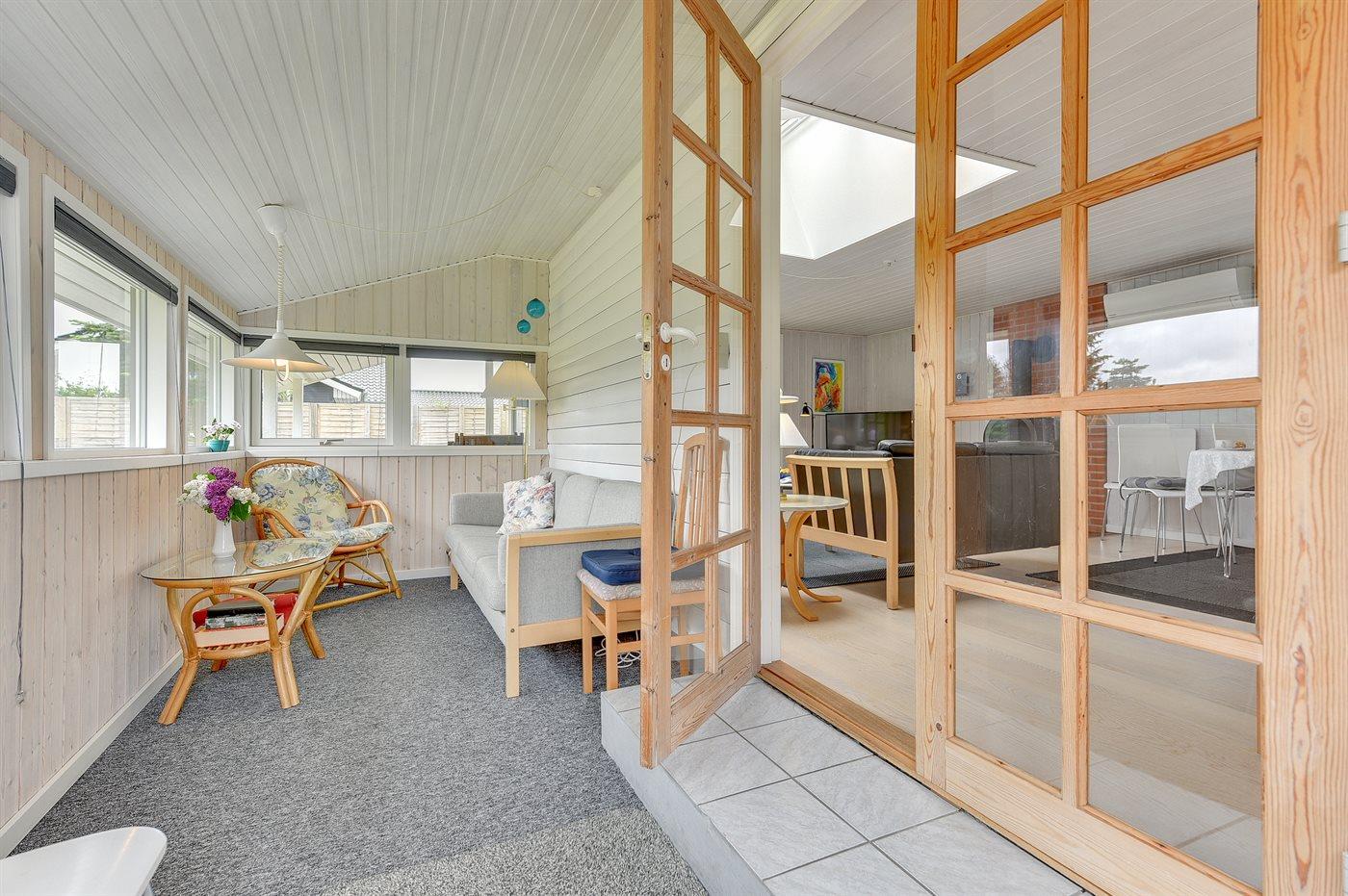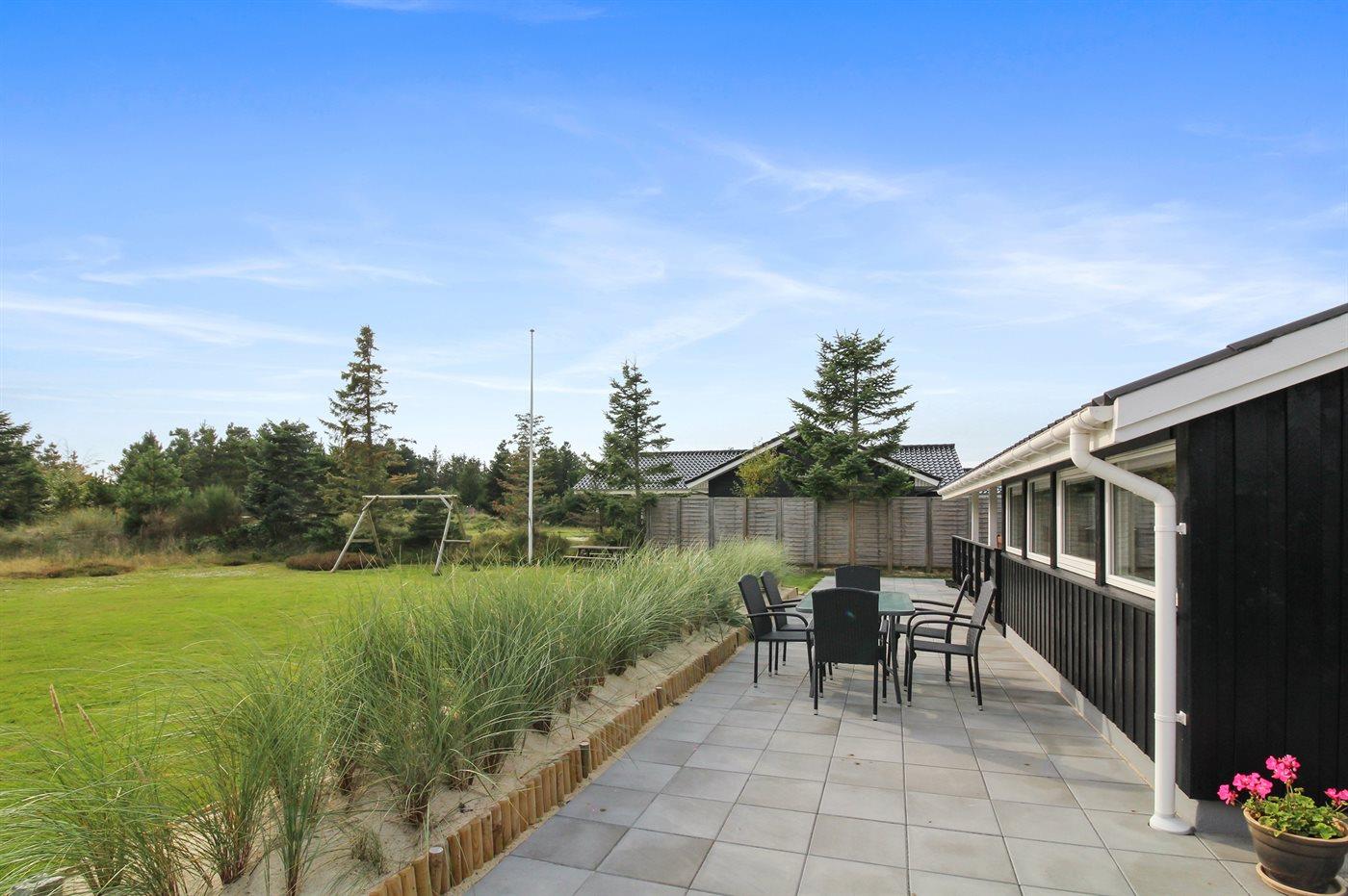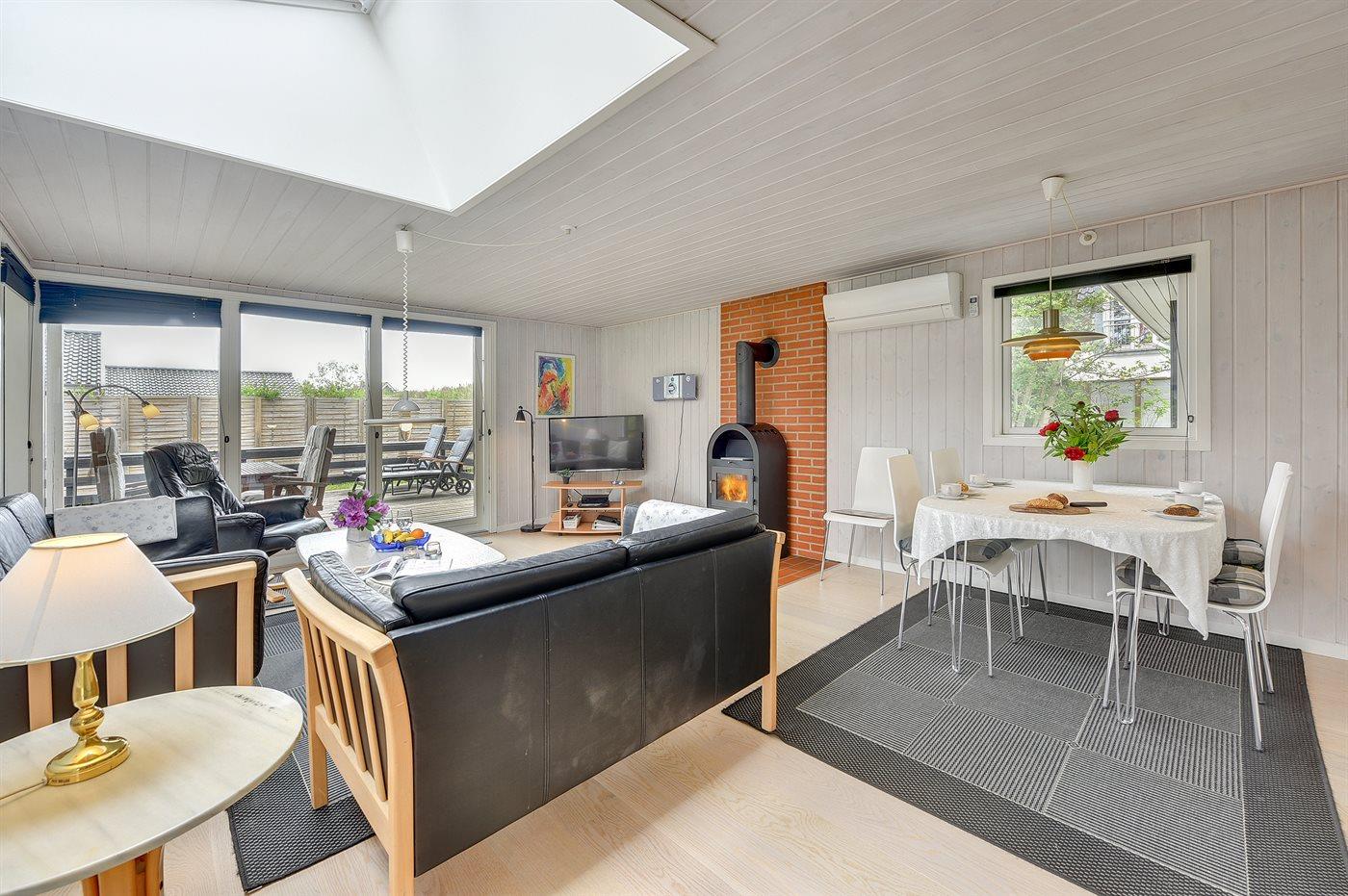 Ikke langt fra havet og den dejlige sandstrand finder I dette veludstyrede sommerhus i træ med spa og sauna, senest renoveret i 2014 med bl.a. nyt køkken, nyt tag og nye trægulve i stue og køkken. Huset ligger på en naturgrund med græs, der er omgivet af træer - her finder I såvel sandkasse samt gynge til børnene. Til huset hører et delvist overdækket terrasseareal med nye havemøbler og liggestole samt en dejlig, sydvendt udestue. Det veludstyrede køkken indeholder bl.a. fryser, mikrobølgeovn og opvaskemaskine, og i den hyggelige opholdsstue med lædermøblement er der brændeovn, stereoanlæg med CD-afspiller samt TV tilsluttet fibernet og DVD-afspiller. Skønt badeværelse med bruseniche, 2-pers. spa og direkte adgang til sauna. Husets sovepladser fordeler sig på 3 gode værelser med dobbeltseng. Af yderligere udstyr kan gratis, trådløs internetforbindelse (computer skal medbringes), vaskemaskine, tørretumbler, høj barnestol samt barneseng nævnes og der er gulvvarme i huset samt installeret energibesparende varmepumpe. Her er tale om et dejligt sommerhus i særklasse.