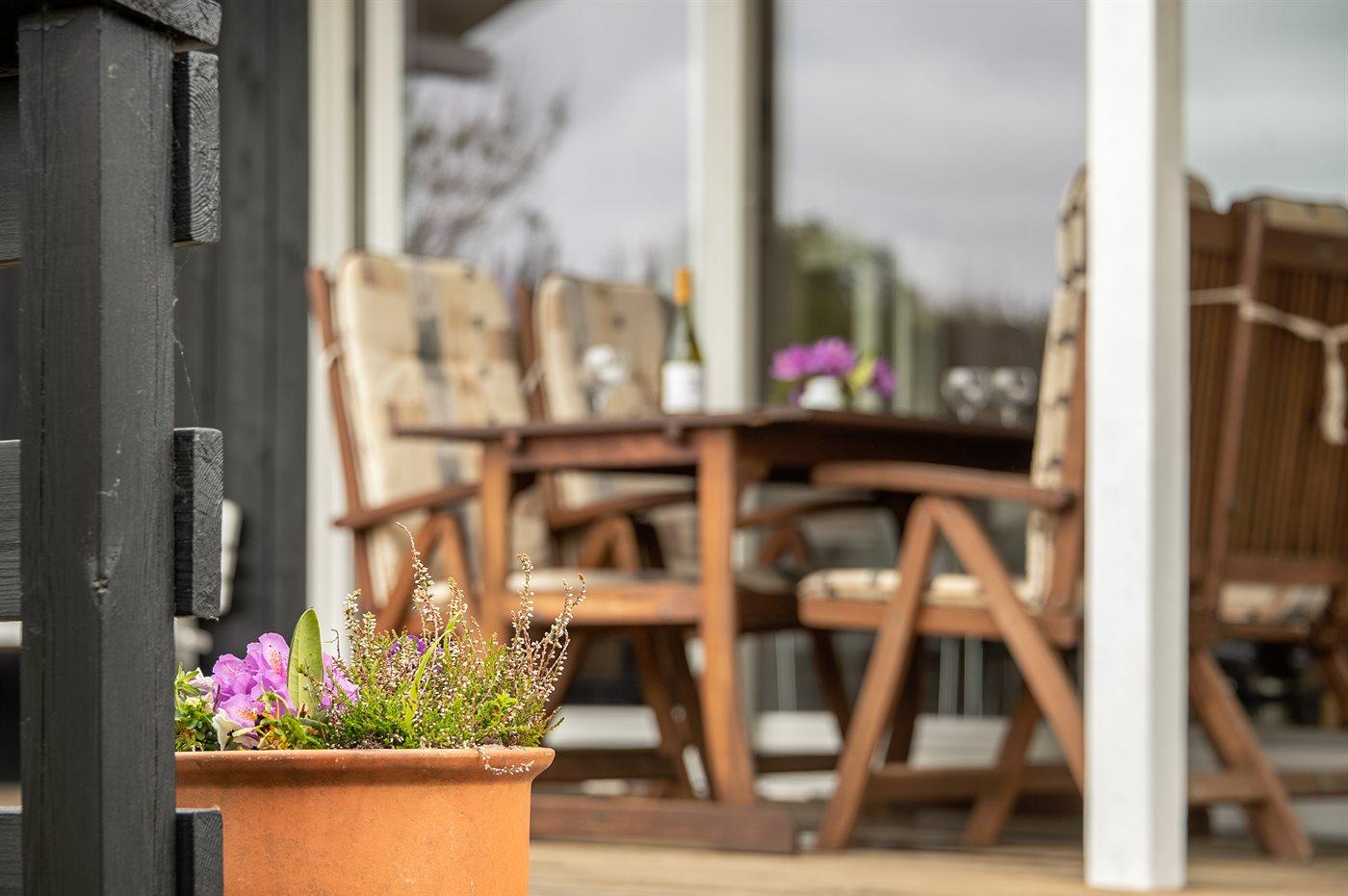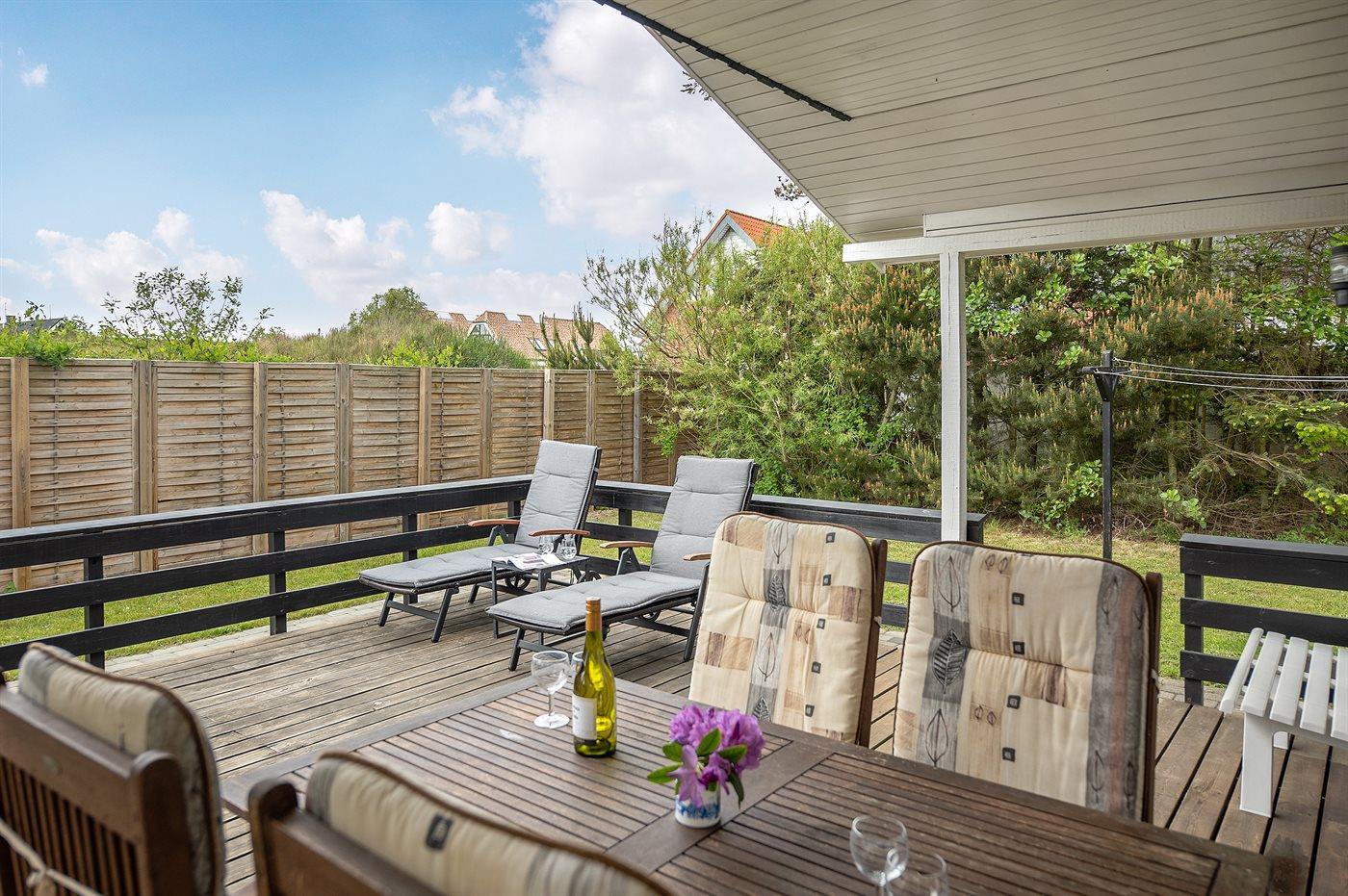 Veludstyret træsommerhus med spa, sauna og sydvendt udestue tæt ved Blåvands strand.