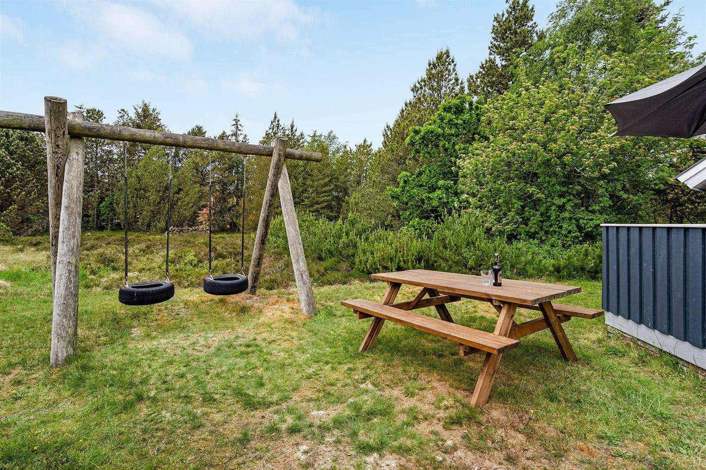 Ferieboligen er beliggende på en 1670 m² stor naturgrund. Der er 2500 m til havet. Nærmeste forretning er beliggende i en afstand af 1500 m. Til ferieboligen hører 60 m² åbent og 7 m² overdækket terrasseareal - heraf i alt 67 m² lukket terrasse. Der er redskabsrum. Gynge. Sandkasse. Legehus. Parkering ved ferieboligen.
