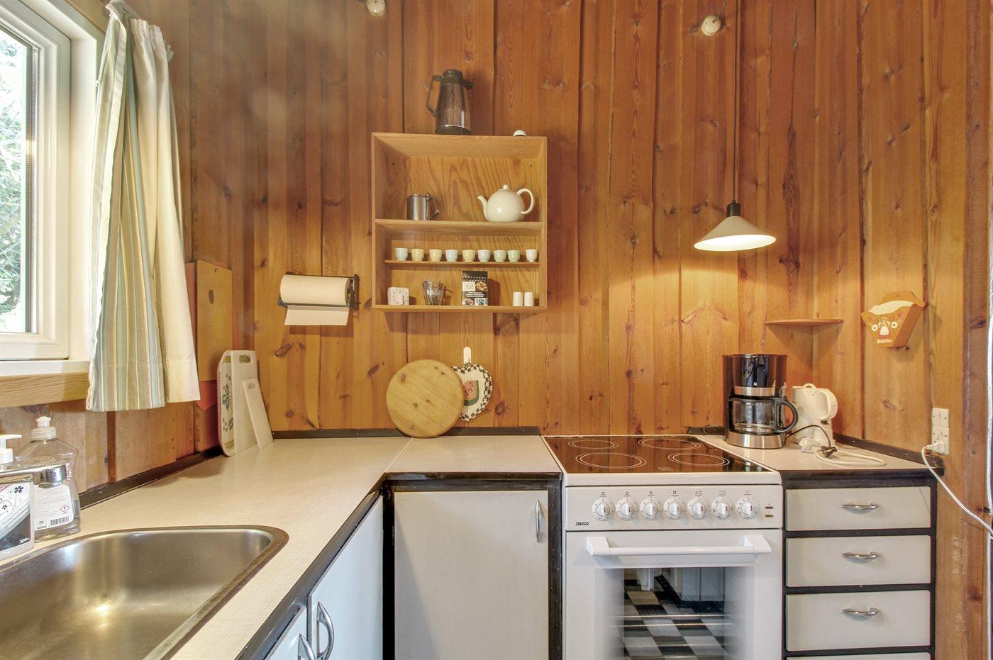 Køkkenet er udstyret med 1 køleskab. Der er 4 elkogeplader, bageovn.