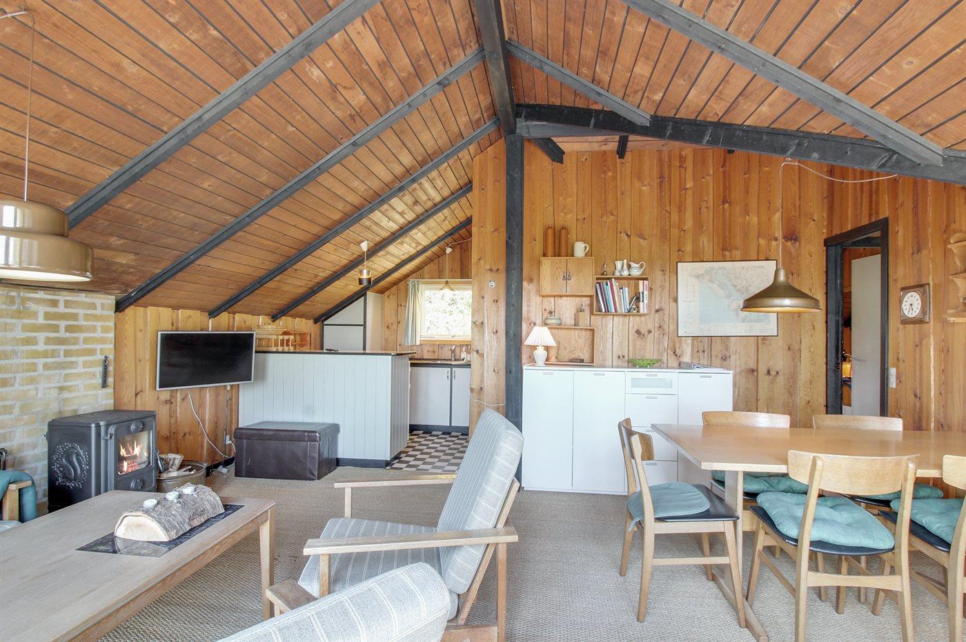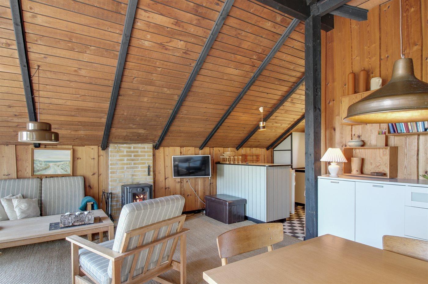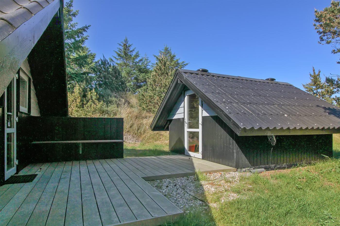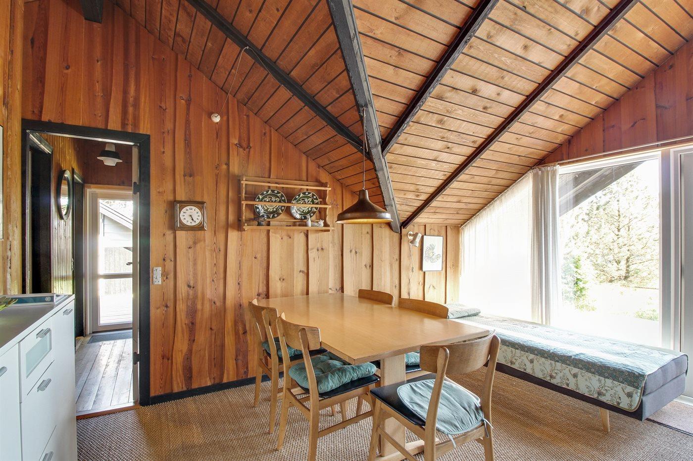 Dette hyggelige sommerhus er beliggende tilbagetrukket på en meget stor og kuperet grund ud til store og åbne naturarealer. Fra terrassen er der en skøn udsigt over klitlandskabet, og fra den højeste klit på grunden, kan man fra bænken nyde en flot udsigt til vandet.