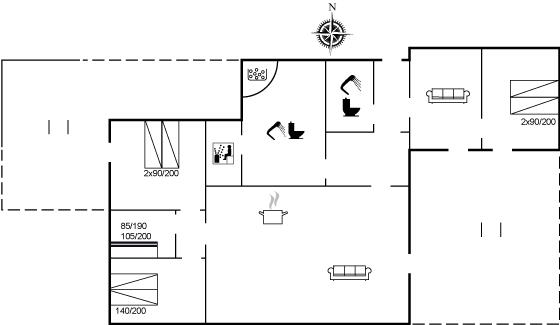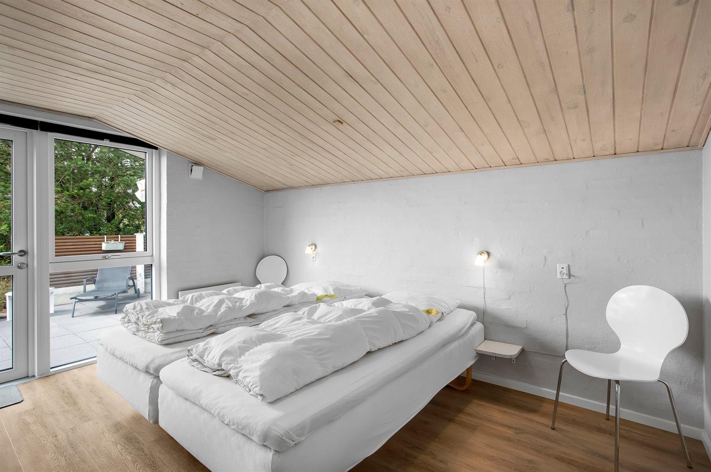 Der er i alt 4 soveværelser. Sovepladserne fordeler sig på: 6 sovepladser i dobbeltsenge. 2 sovepladser i køjeseng. Derudover er der 1 stk. barneseng.