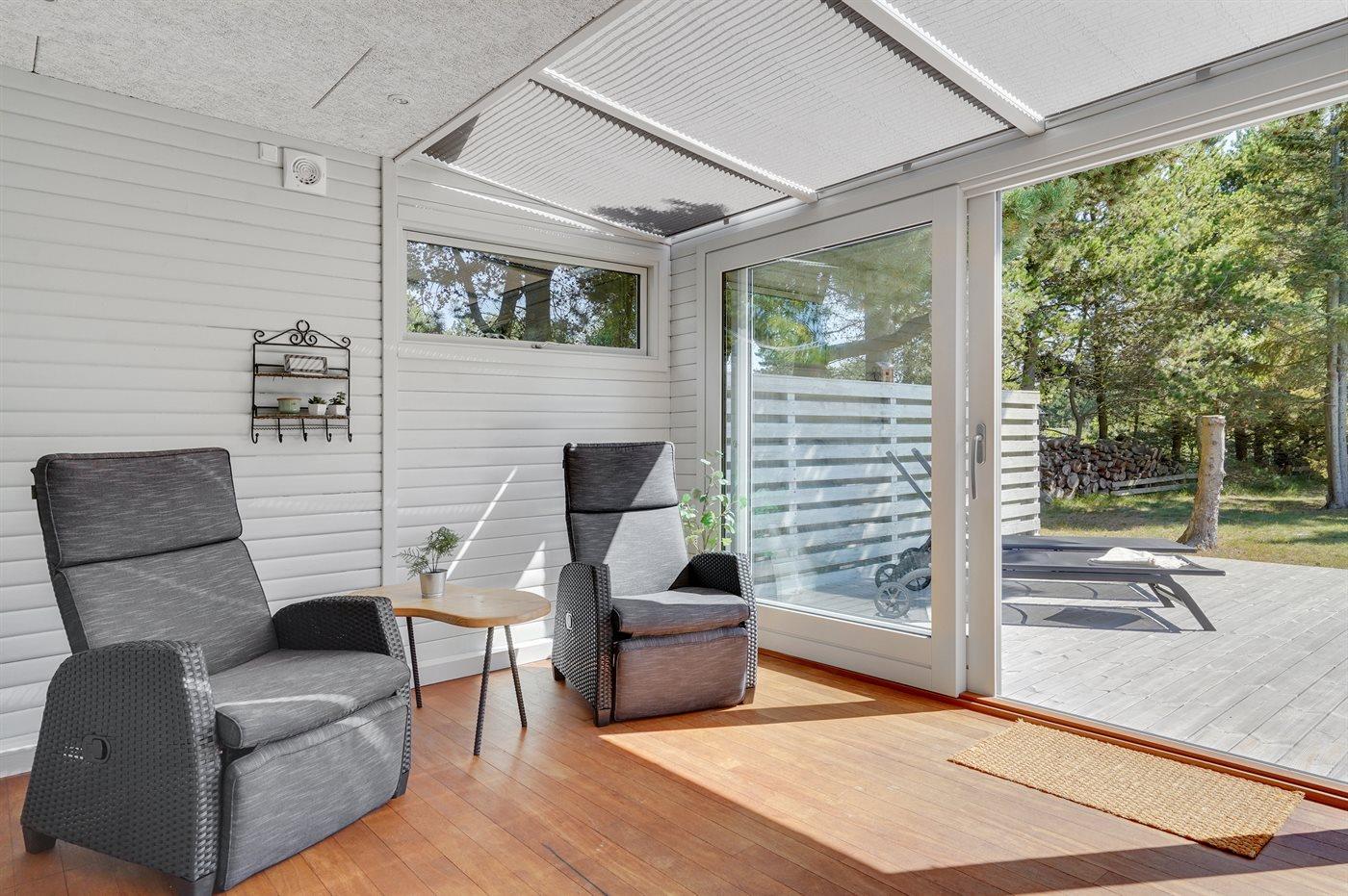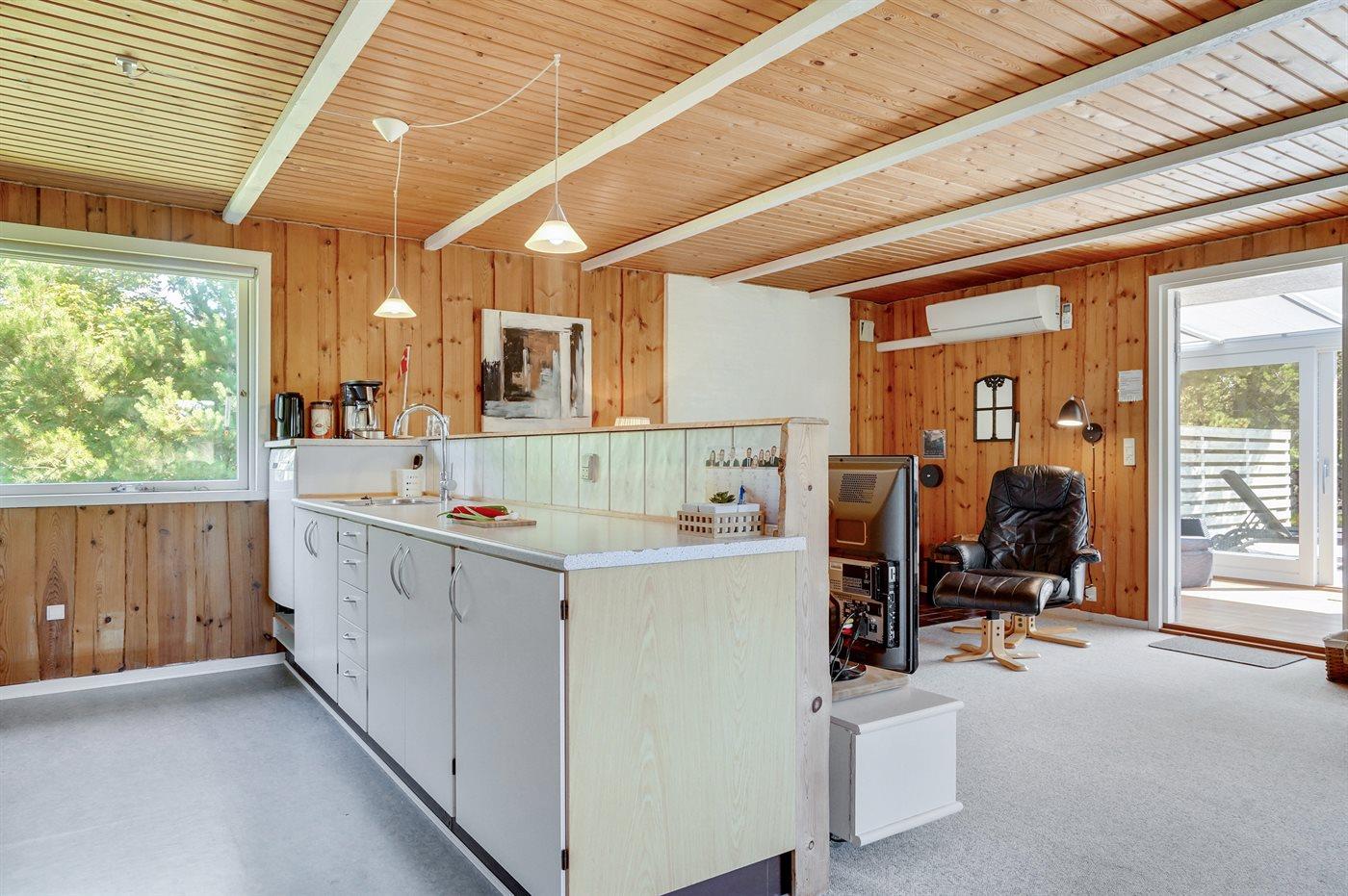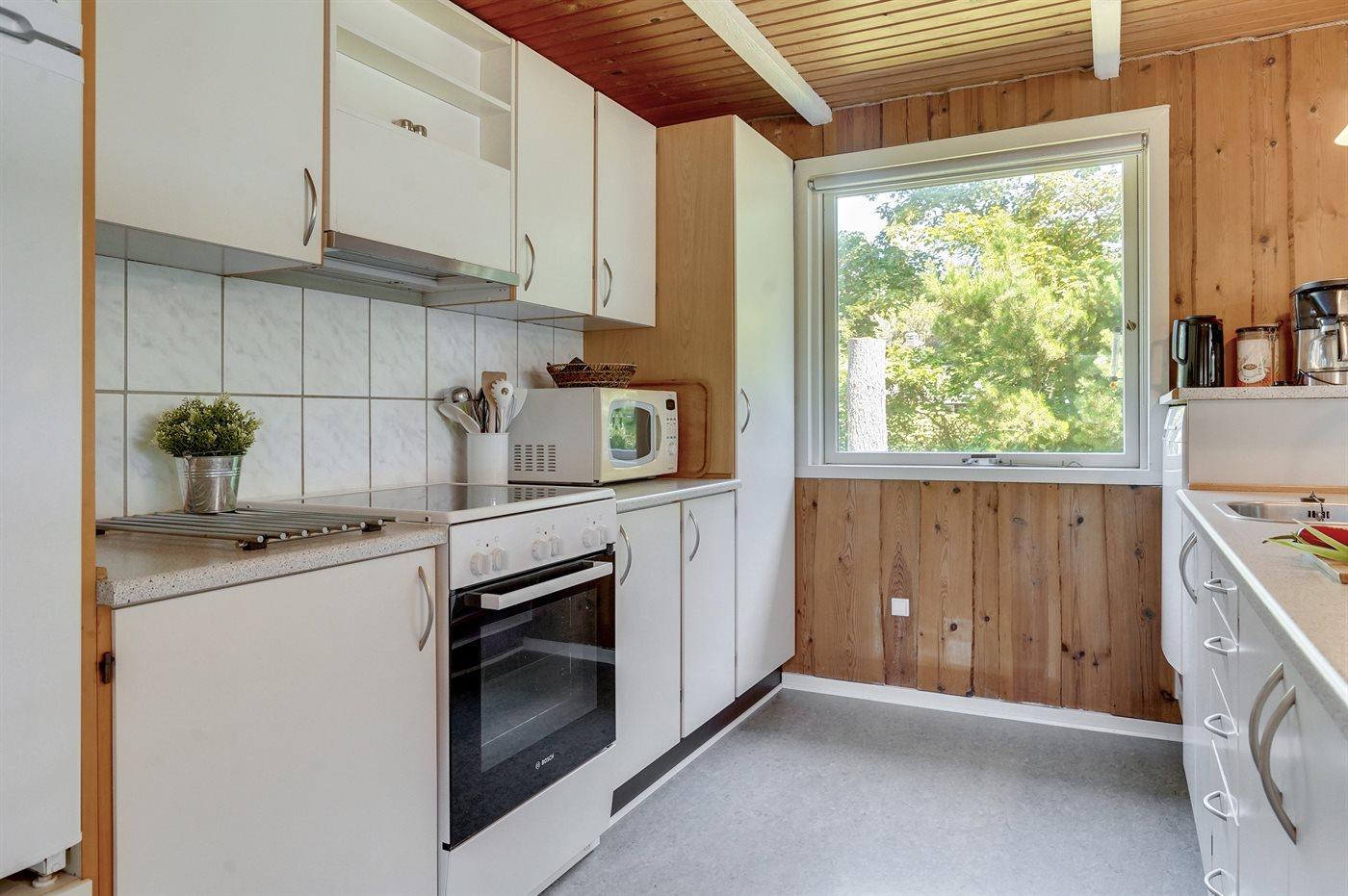 Dejligt, godt vedligeholdt sommerhus. Huset er bygget af træ og opført i 1976, og moderniseret i 2004. Sommerhuset ligger på en dejlig, stor og ugeneret naturgrund. God terrasse med tilhørende havemøbler. Badeværelse med bruseniche og gulvvarme. Åbent køkken med komfur med keramiske kogeplader, varmluftovn, mikrobølgeovn, fryser og opvaskemaskine. Skøn, stor stue med direkte adgang til havestuen. I stuen er der TV med parabolantenne (digital), DVD-afspiller og stereoanlæg med CD-afspiller samt dejlig brændeovn. Husets soveværelser består af 3 værelser med dobbeltsenge. I huset forefindes desuden gratis, trådløs internetforbindelse (computer skal medbringes), Playstation2 med spil, vaskemaskine og tørretumbler, høj barnestol og barneseng, samt gynge og sandkasse på grunden. Lej dette dejlige sommerhus og få også ganske kort vej til indkøb, spisesteder, osv.
