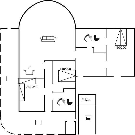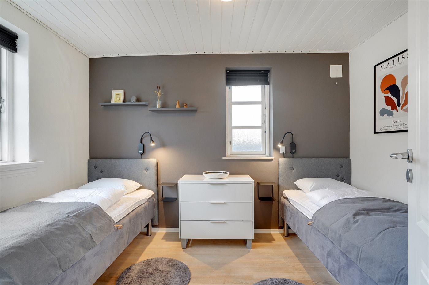 Der er i alt 4 soveværelser. Sovepladserne fordeler sig på: 6 sovepladser i dobbeltsenge. 2 sovepladser i enkeltsenge. 2 af disse sovepladser befinder sig i et anneks. Derudover er der 1 stk. barneseng.