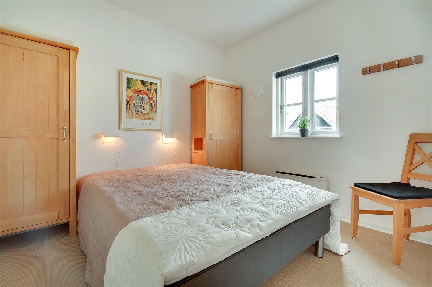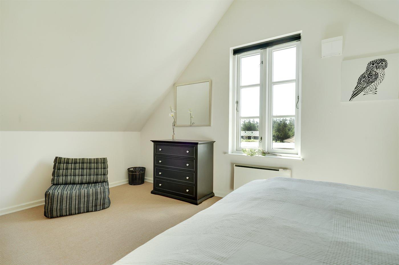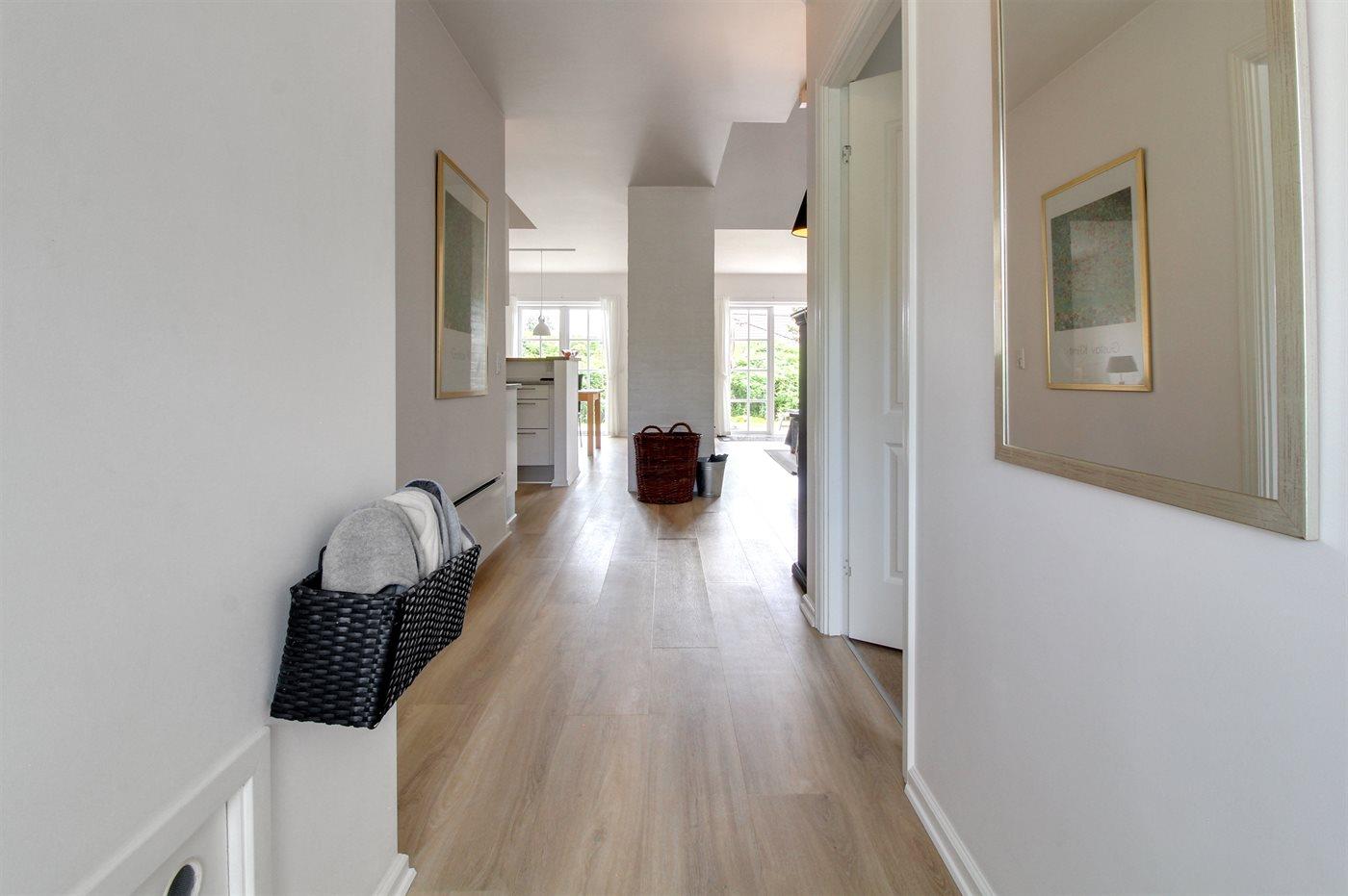 Huset er i 2 plan og opført i 2002. Indvendig er vægge og lofter malet i lyse farver og gulvene er dels belagt med klinker, dels med tæpper. Stuen er møbleret med klassiske møbler og har brændeovn, DVD-afspiller og Smart-TV. Desuden gratis, trådløs internetforbindelse og Chromecast til rådighed. Køkkenet er bl.a. udstyret med opvaskemaskine, mikrobølgeovn og varmluftovn. I det dejlige badeværelse, som er renoveret i 2017 findes der opvarmet klinkegulv, 2-pers. spa, bruseniche og direkte adgang til sauna. Nyt gæstetoilet (2018) på 1. sal. Stort, praktisk bryggers med vaskemaskine og tørretumbler. Husets 6 sovepladser fordeler sig på 3 dobbeltsenge, hvoraf 1 er placeret i stueetagen og 2 på 1. sal. Til de mindste feriegæster findes der barneseng og høj barnestol.
