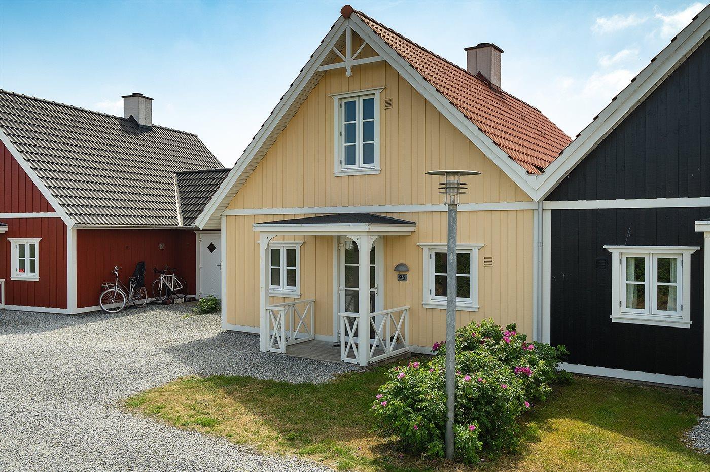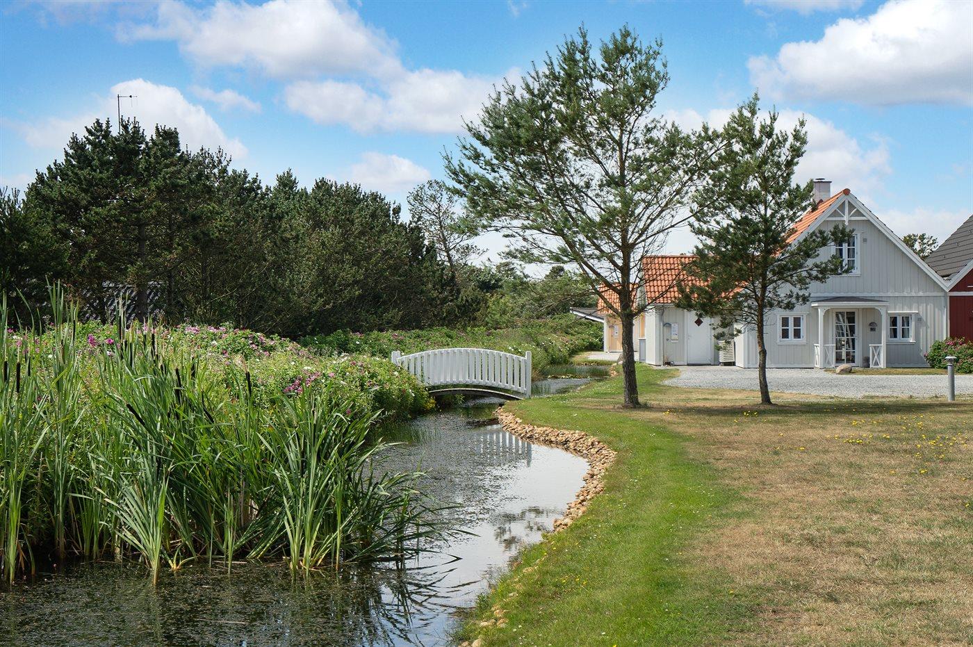 I Blåvandslyst ligger dette romantiske sommerhus i træ. Huset er centralt beliggende i et område med små vandløb og hvide broer - tæt ved indkøb, restauranter, bowlingcenter og strand. Her foregår livet i en rolig atmosfære. De smukke rækkehuse i svensk-inspireret byggestil er placeret i små klynger og har privat parkeringsplads ved huset og terrasse med flotte havemøbler. Der er installeret stik til opladning af elbil.