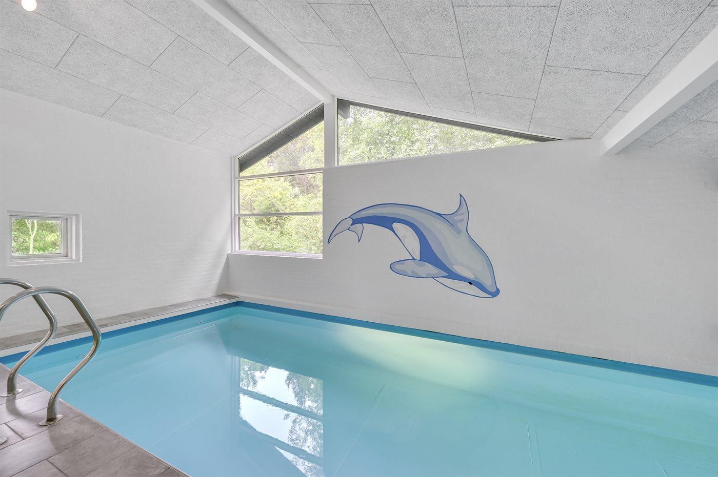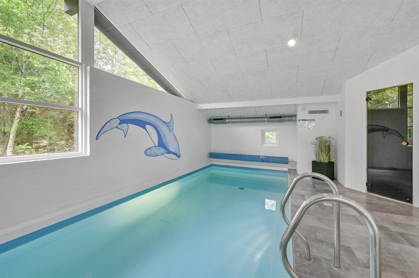 I den indendørs swimmingpool er der mulighed for leg og hyggeligt samvær. Swimmingpoolen måler op til 3 m i bredden, 6 m i længden og den er op til 1,2 m dyb. Vandet er mellem 24 og 28° C varmt. Der er gulvvarme i swimmingpoolområdet.