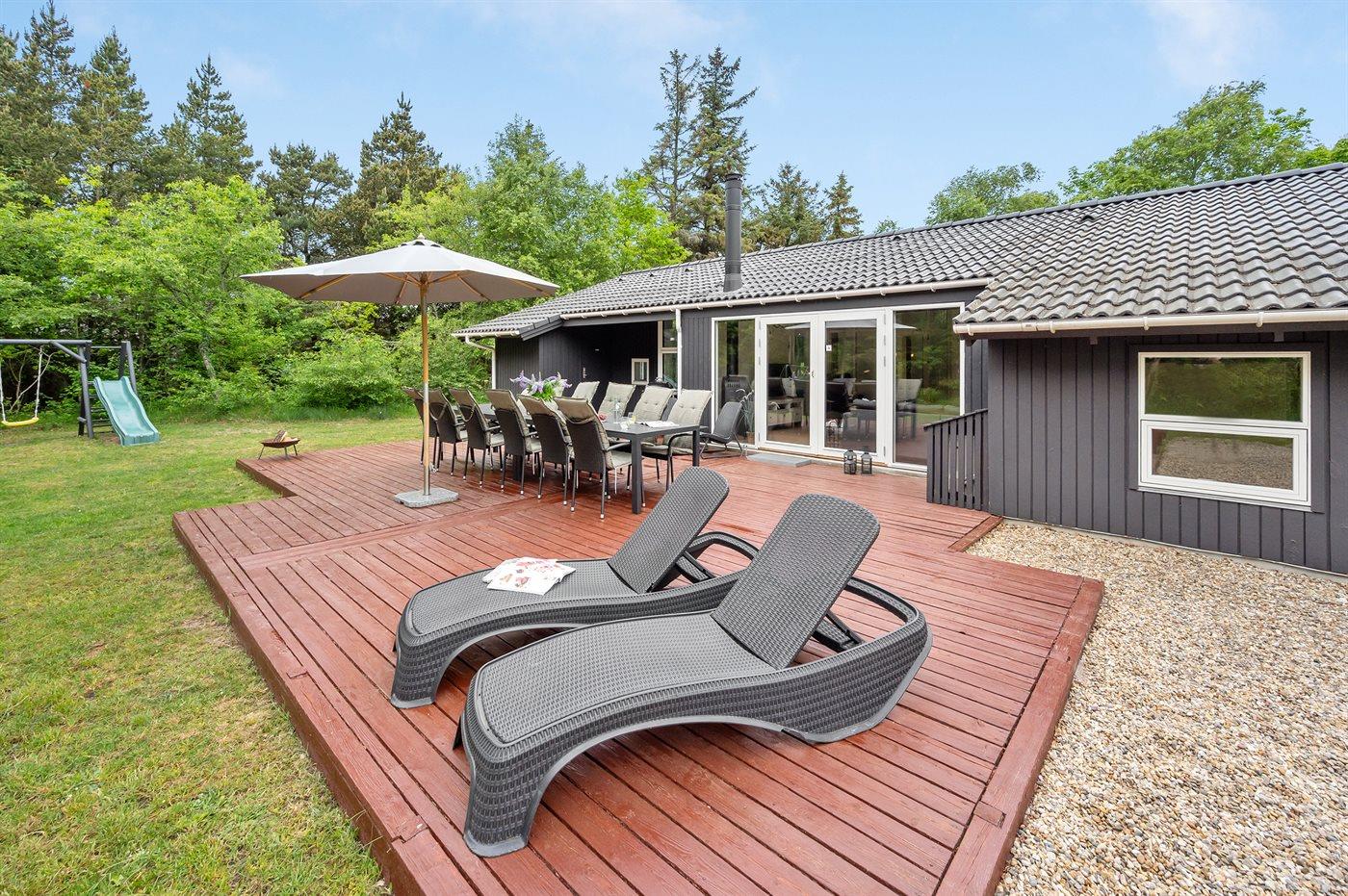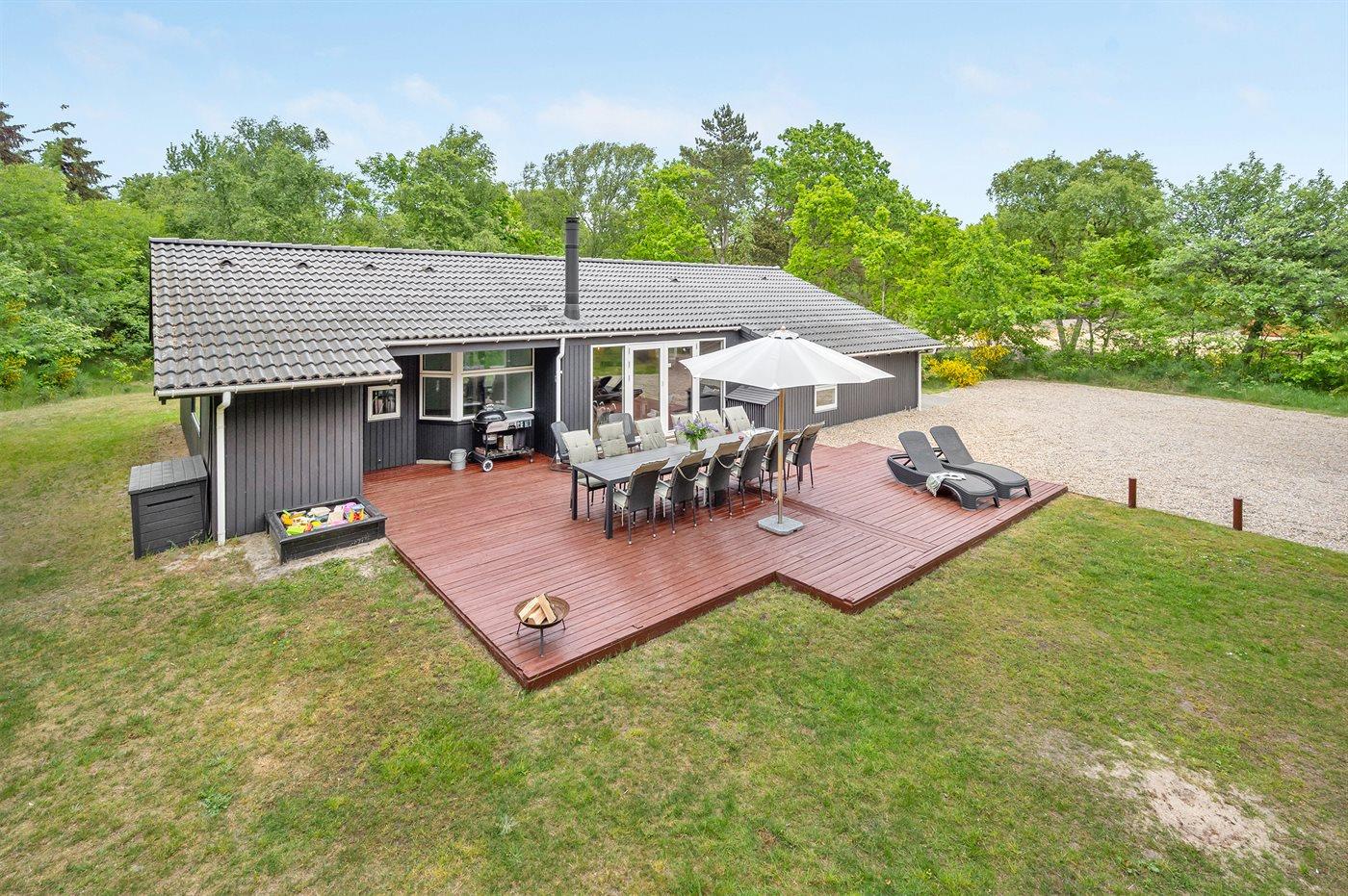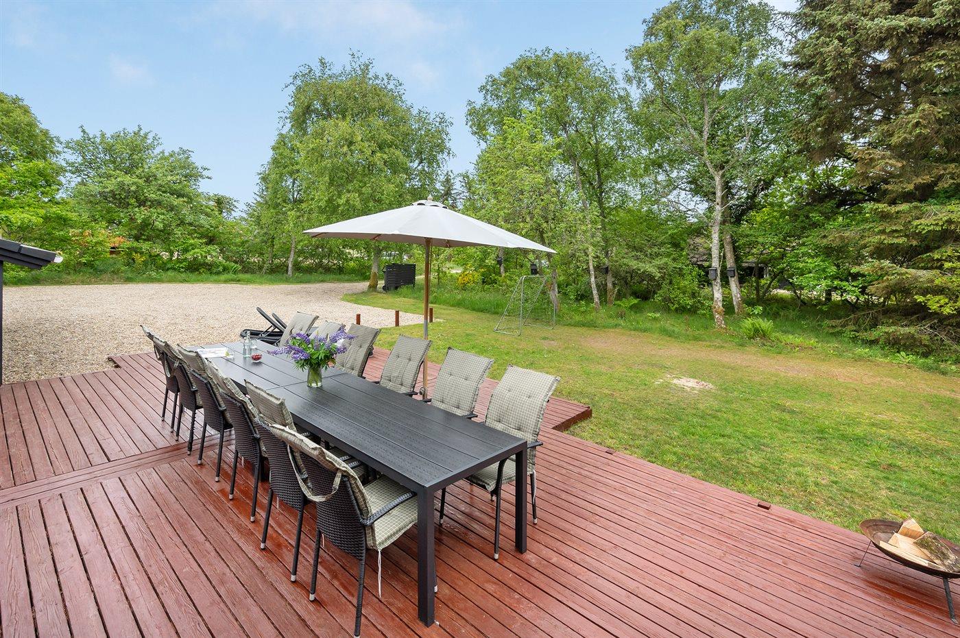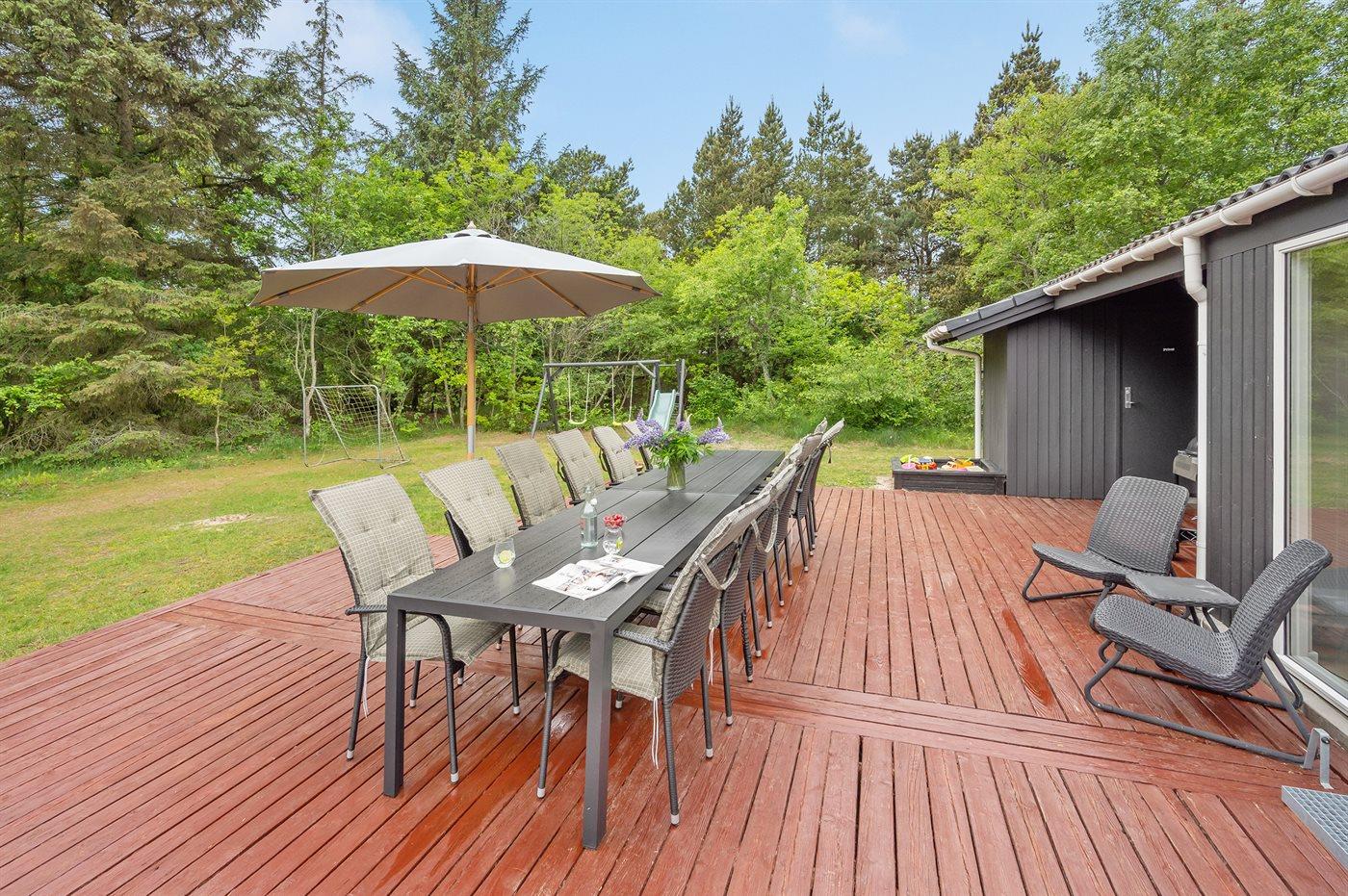 Ferieboligen er beliggende på en 1800 m² stor naturgrund. Der er 1600 m til havet. Der er 4500 m til fjorden. Der er 7000 m til Vadehavet. Nærmeste forretning er beliggende i en afstand af 1800 m. Til ferieboligen hører 51 m² terrasseareal. Gynge. Sandkasse. Legetårn. Rutchebane. Fodboldmål. Grill til rådighed. Parkering ved ferieboligen.