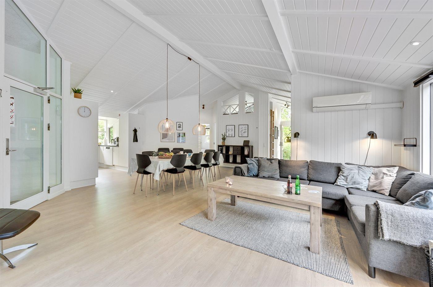Et virkeligt dejligt sommerhus som er velegnet til såvel 1 som 2 familier, og er beliggende uforstyrret for enden af en lukket vej uden støj og trafik. Indvendigt er huset indrettet lyst og indbydende med adgang til hems, hvor 2 af sovepladserne befinder sig.