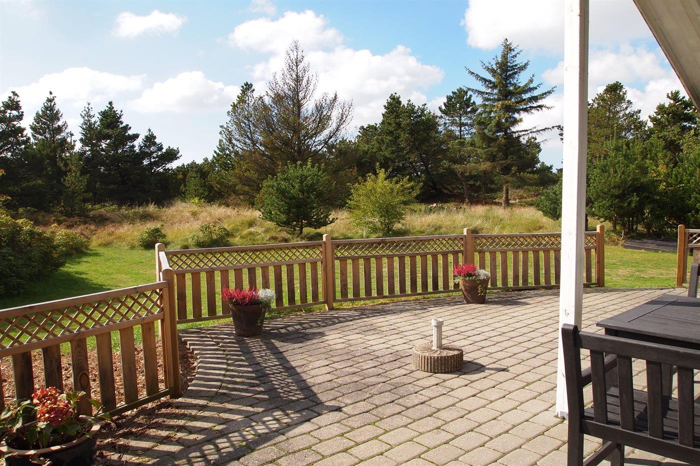 Ferieboligen er beliggende på en 2500 m² stor naturgrund. Der er 1100 m til havet. Nærmeste forretning er beliggende i en afstand af 1500 m. Til ferieboligen hører 30 m² terrasseareal. Desuden er der 12 m² overdækket terrasse. Gynge. Sandkasse. Rutchebane. Der er installeret stik til opladning af elbil. Parkering ved ferieboligen.