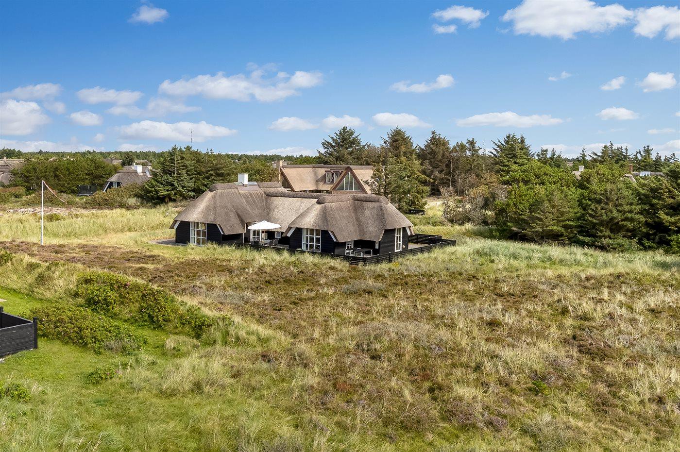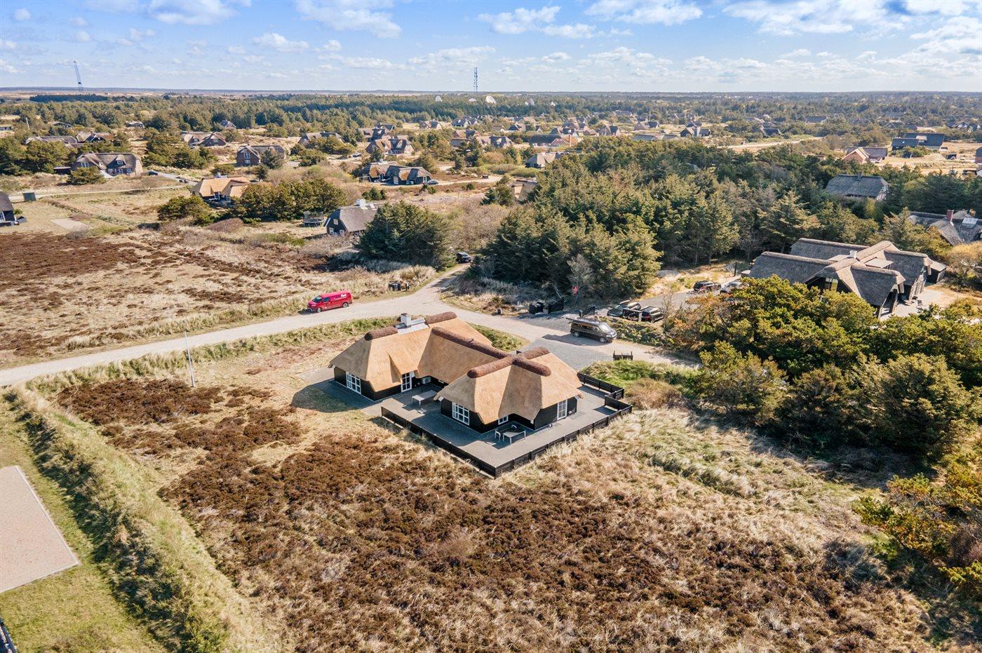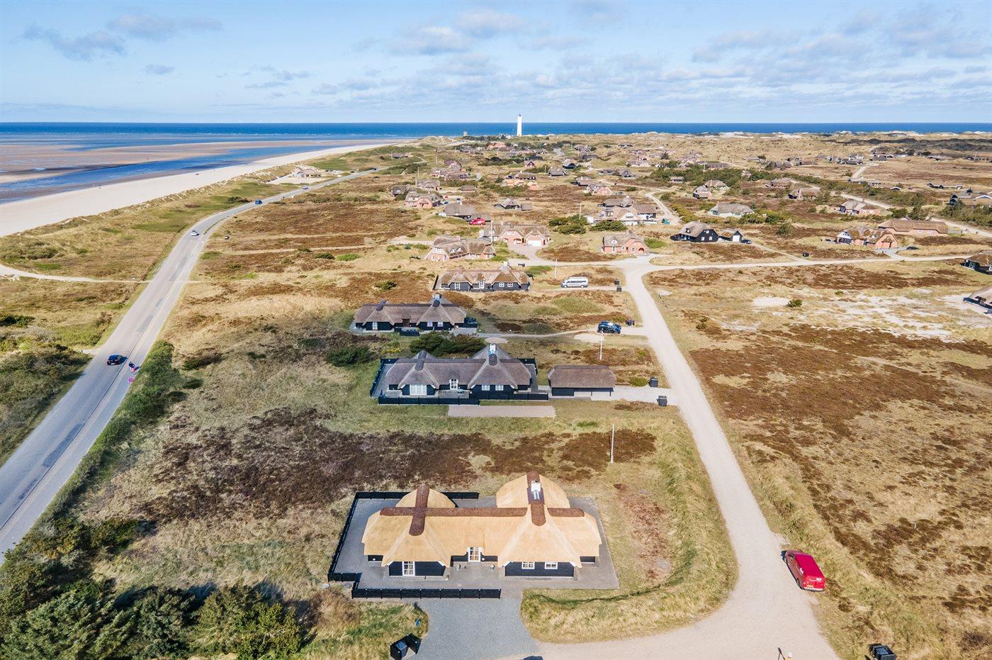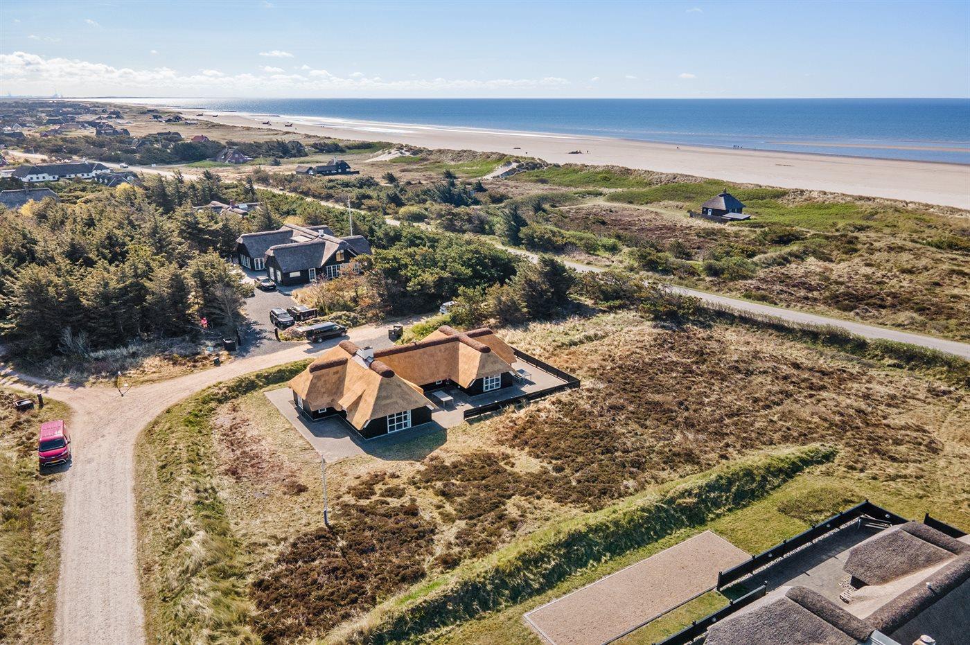 Kun 100 m fra en af Danmarks bedste og mest børnevenlige badestrande finder I dette flotte og arkitekttegnede sommerhus. Huset ligger på en dejlig naturgrund, i et meget attraktivt og roligt område, ikke langt fra Blåvand Fyr og i gåafstand fra Blåvand centrum. Nærmeste forretning er beliggende i en afstand af 900 m. Området egner sig rigtig godt til gåture eller ture på stranden og der er god parkeringsmulighed ved huset.