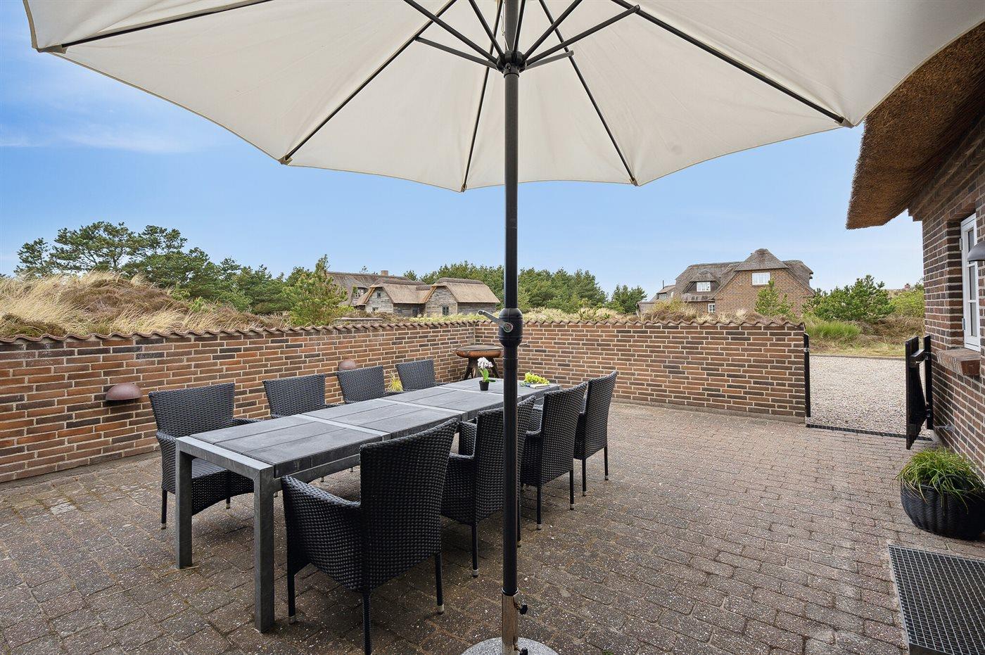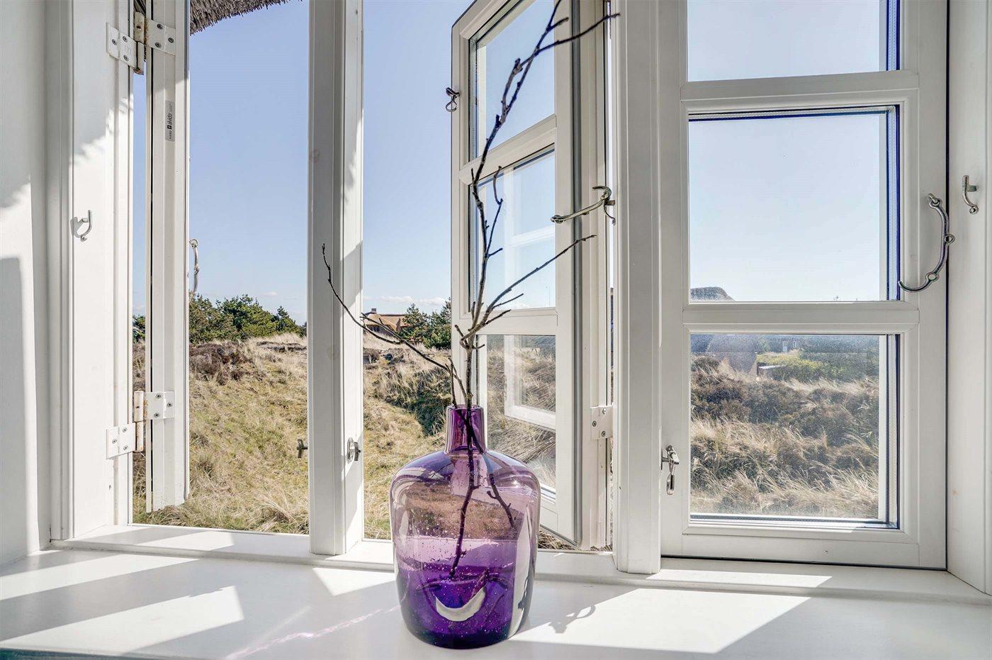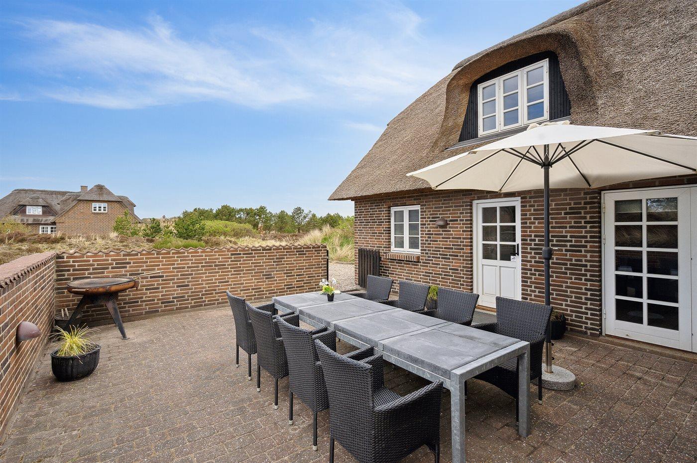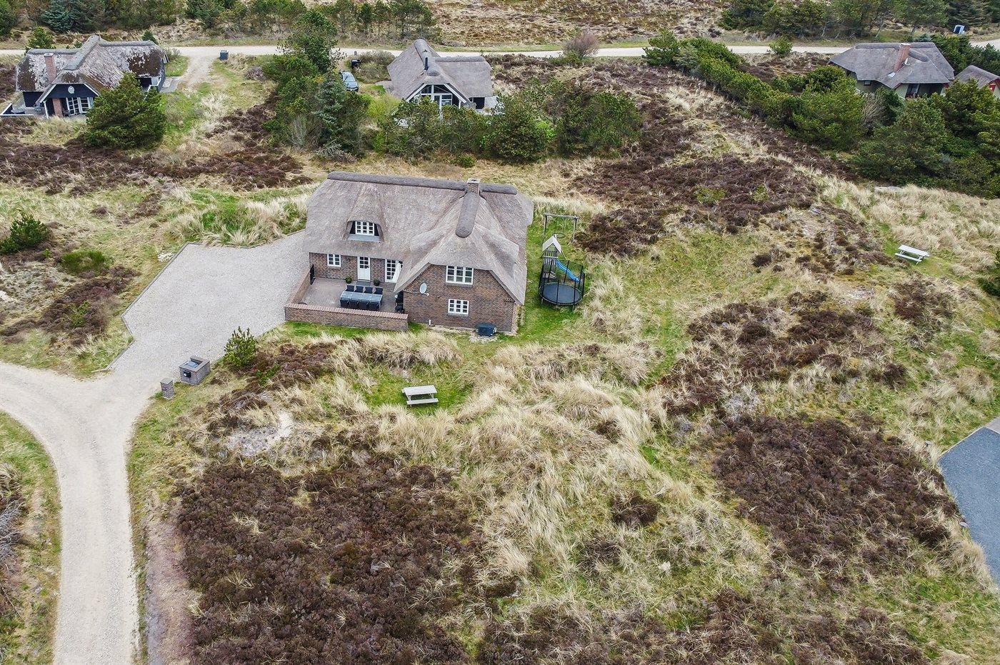 På en af de mest attraktive grunde i Blåvand finder I dette skønne sommerhus med stråtag. Huset er beliggende på en 2500 m2 stor grund, kun 350 m fra havet og en af Danmarks bedste badestrande. Fra husets 1. sal er der en flot udsigt over den smukke natur i området samt til Blåvand Fyr.