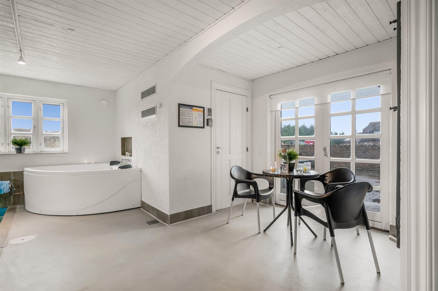 Skønt sommerhus med stråtag nær Blåvand Strand og havet, med pool, spa og mange faciliteter.