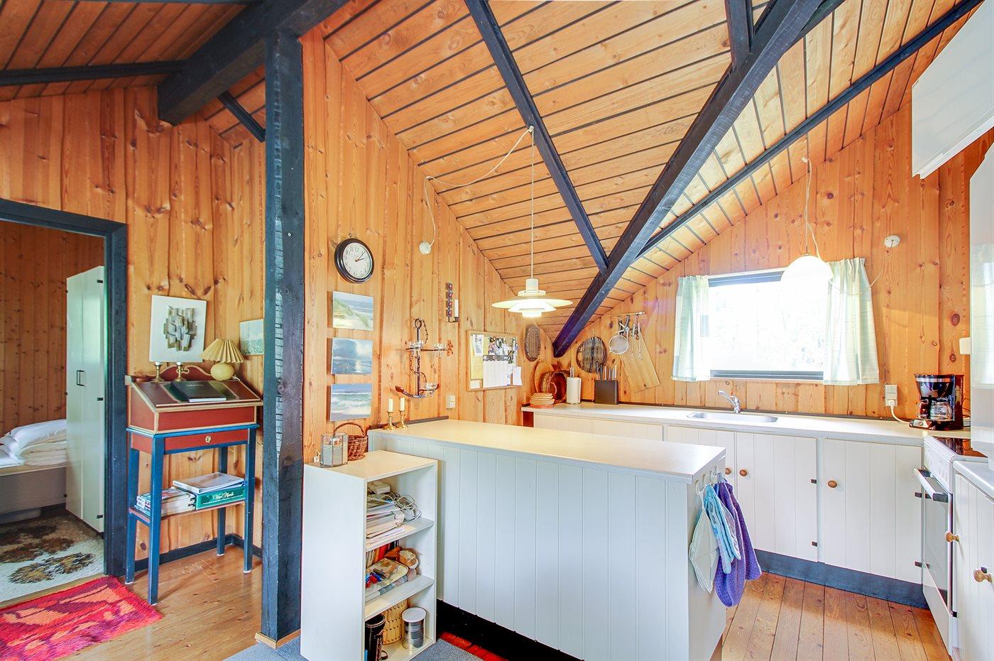 Hyggeligt sommerhus i Blåvand med stor grund, brændeovn og plads til hund.