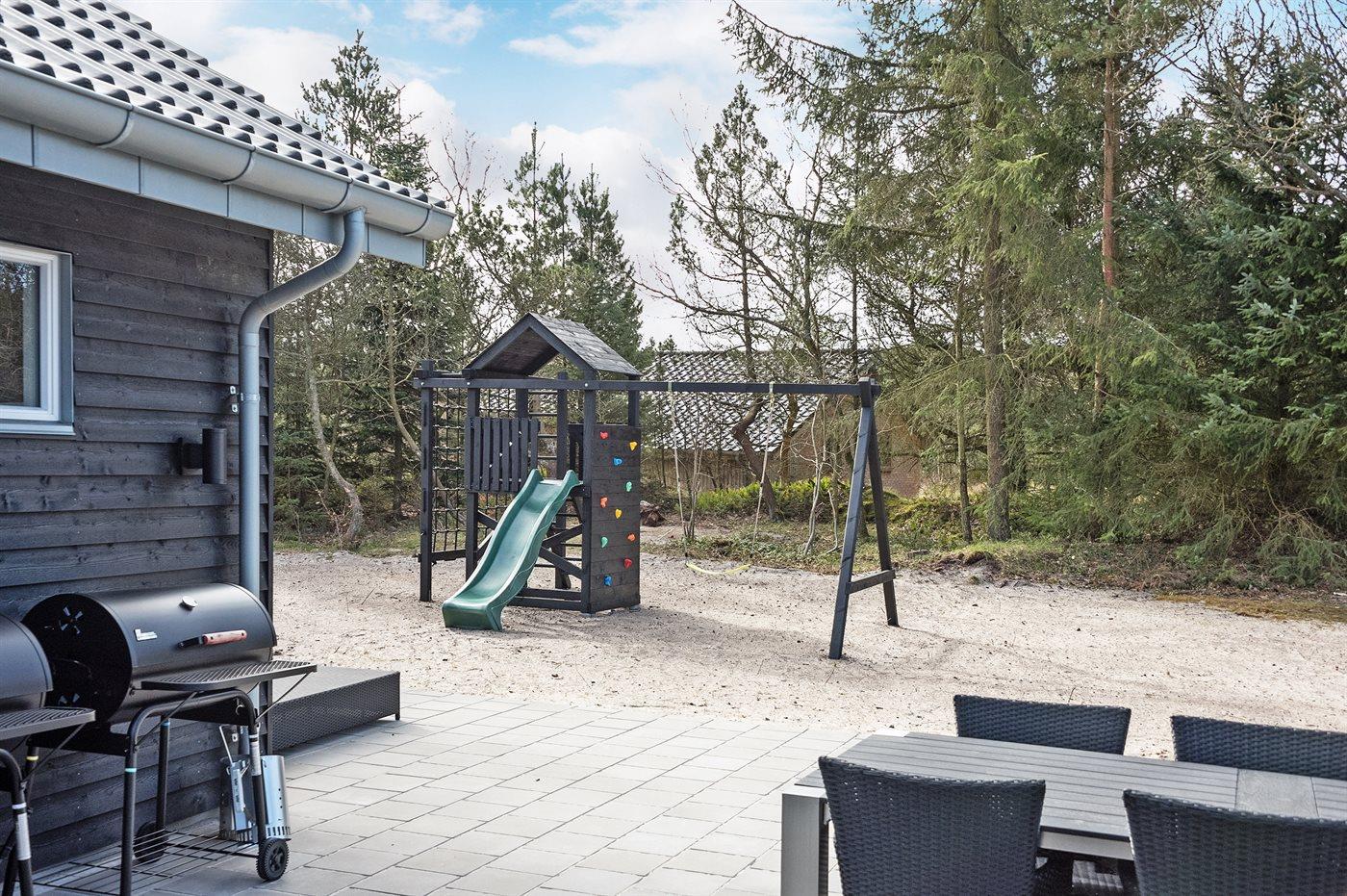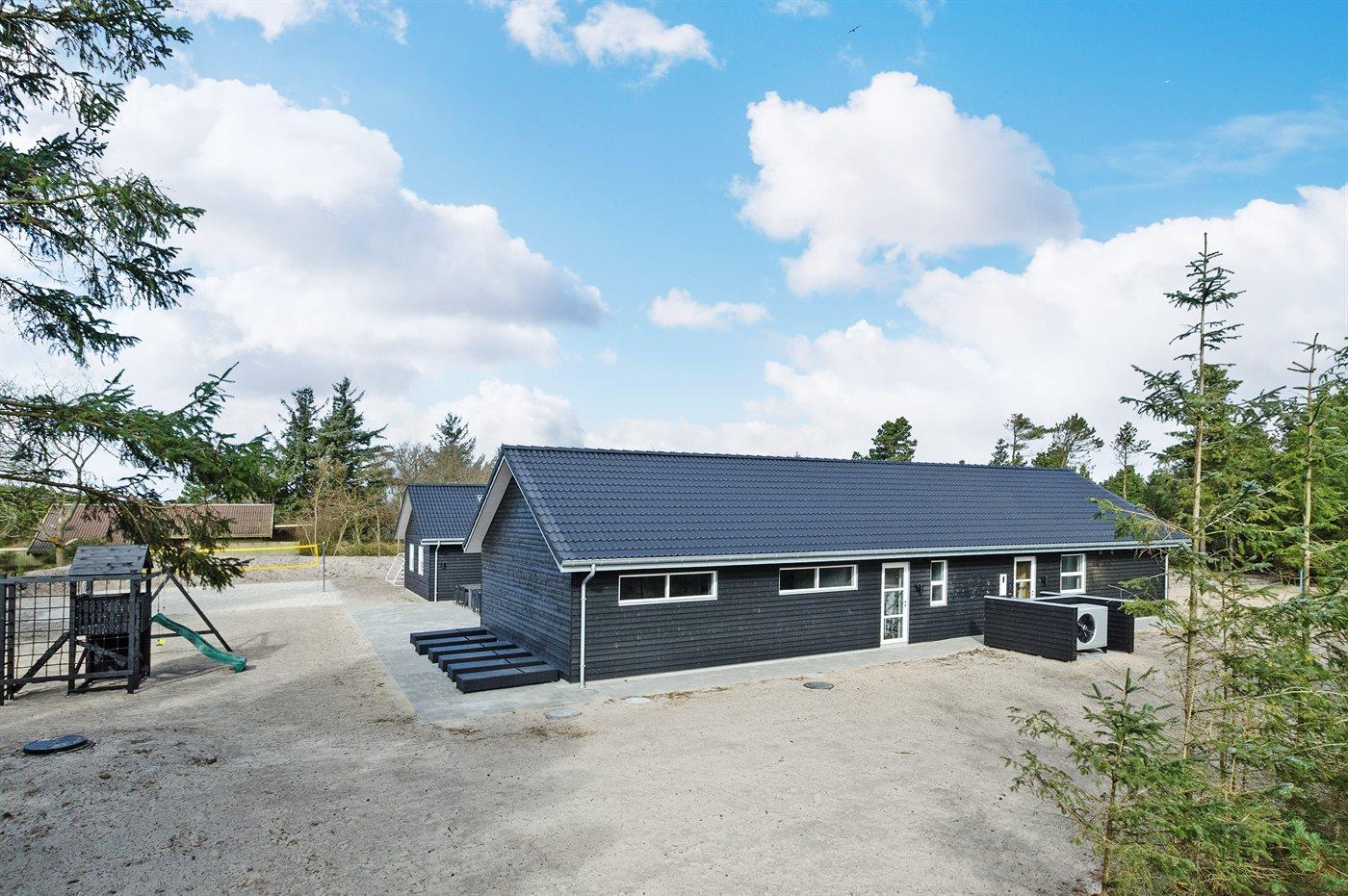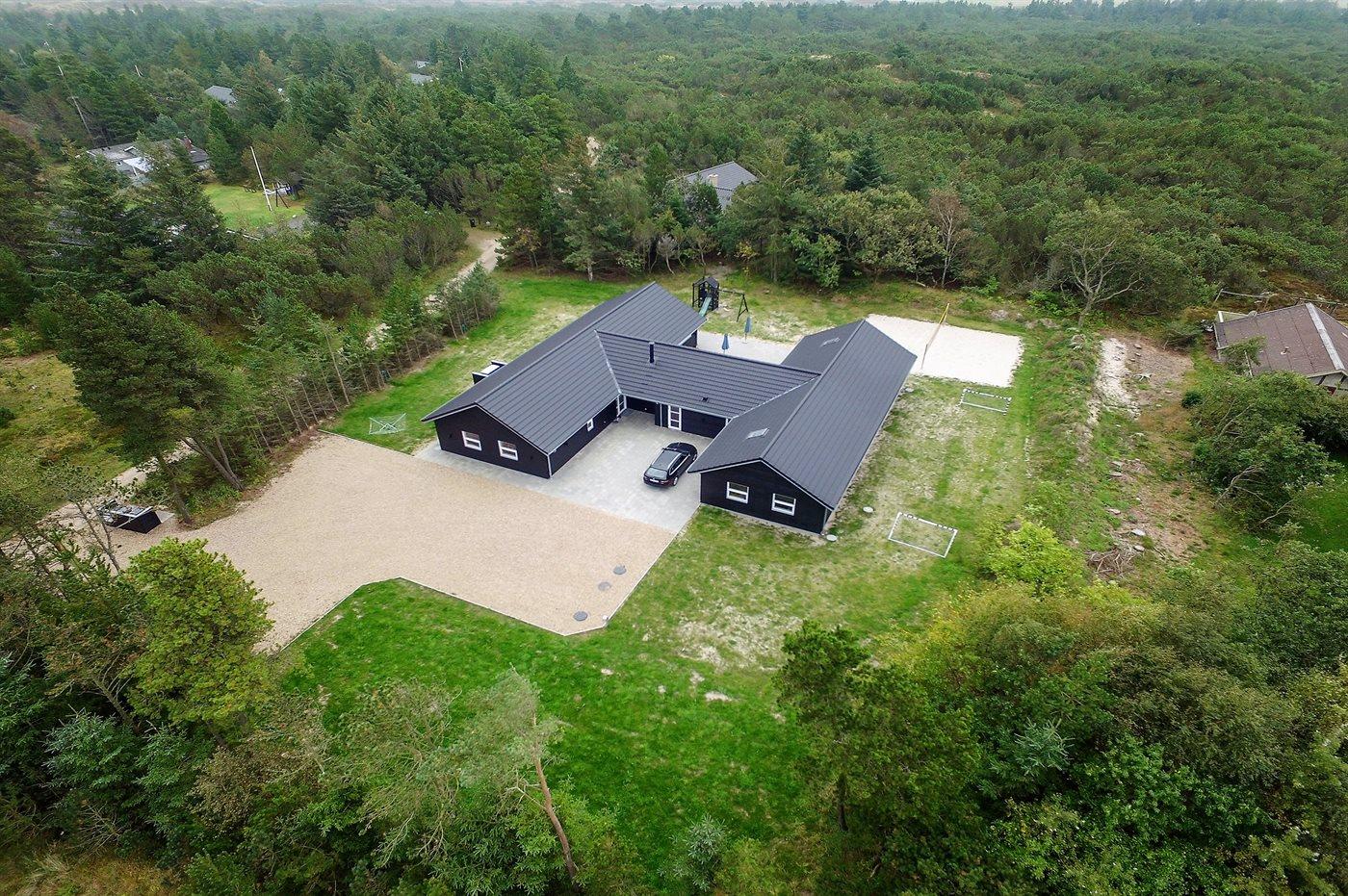 Ferieboligen er beliggende på en 3640 m² stor naturgrund. Der er 1600 m til havet. Nærmeste forretning er beliggende i en afstand af 2500 m. Til ferieboligen hører 105 m² terrasseareal. Gynge. Legetårn. Beachvolley. Der er installeret stik til opladning af elbil. Parkering ved ferieboligen.