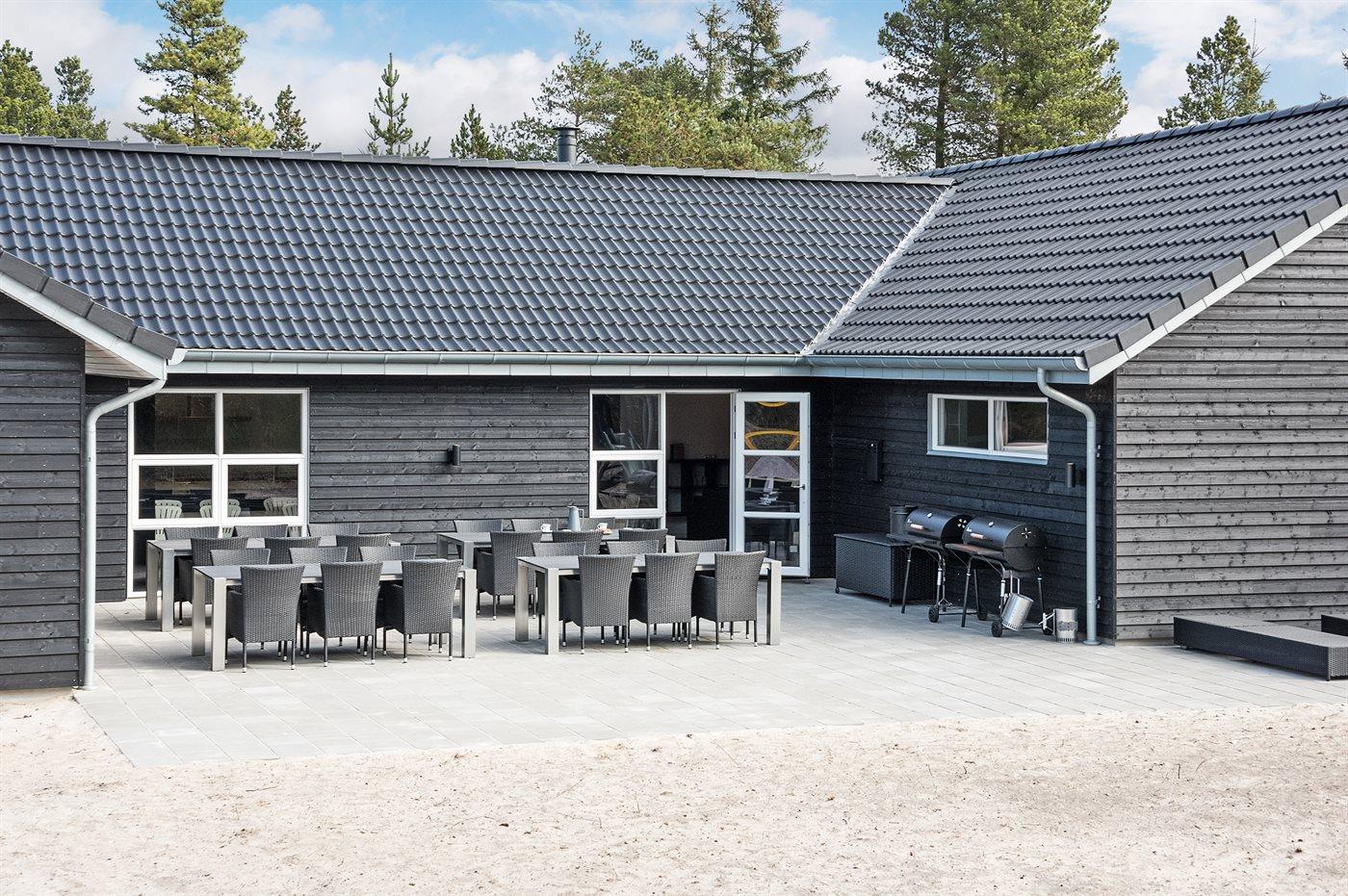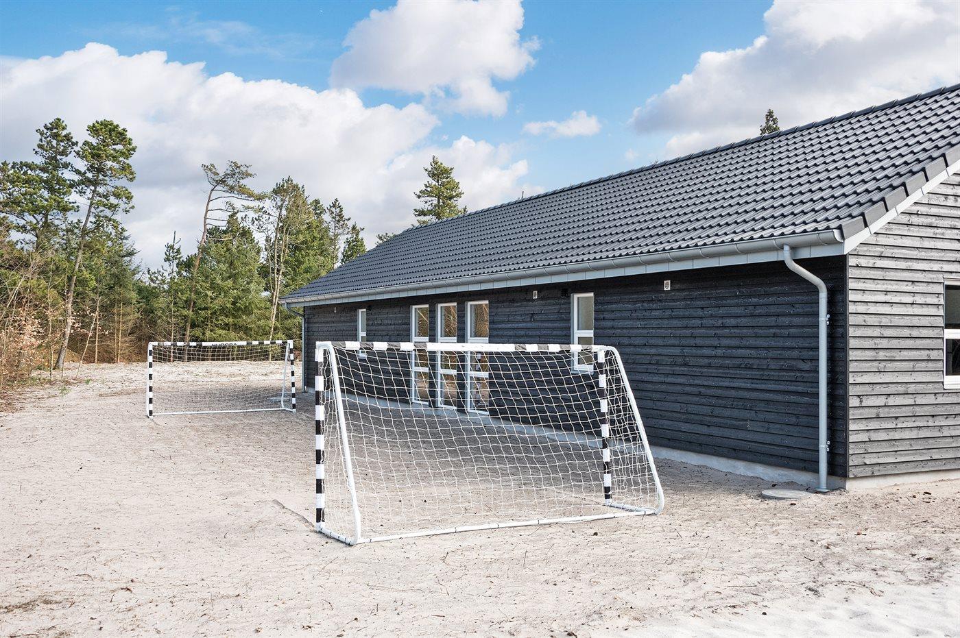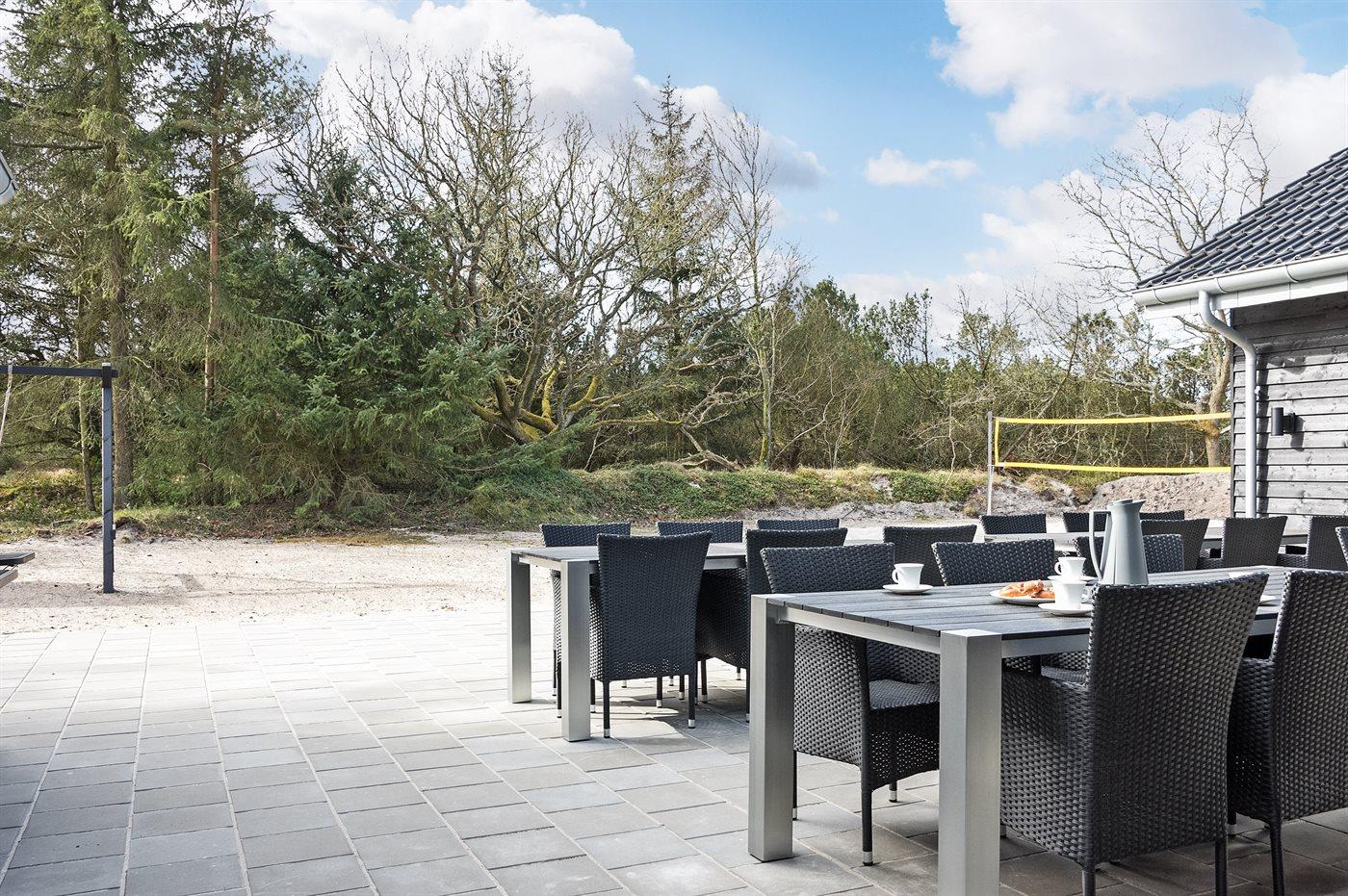 Ferieboligen er beliggende på en 3640 m² stor naturgrund. Der er 1600 m til havet. Nærmeste forretning er beliggende i en afstand af 2500 m. Til ferieboligen hører 105 m² terrasseareal. Gynge. Legetårn. Beachvolley. Der er installeret stik til opladning af elbil. Parkering ved ferieboligen.