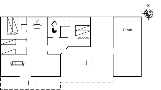 Der er i alt 3 soveværelser. Sovepladserne fordeler sig på: 4 sovepladser i dobbeltsenge. 2 sovepladser i enkeltsenge. Derudover er der 1 stk. barneseng.