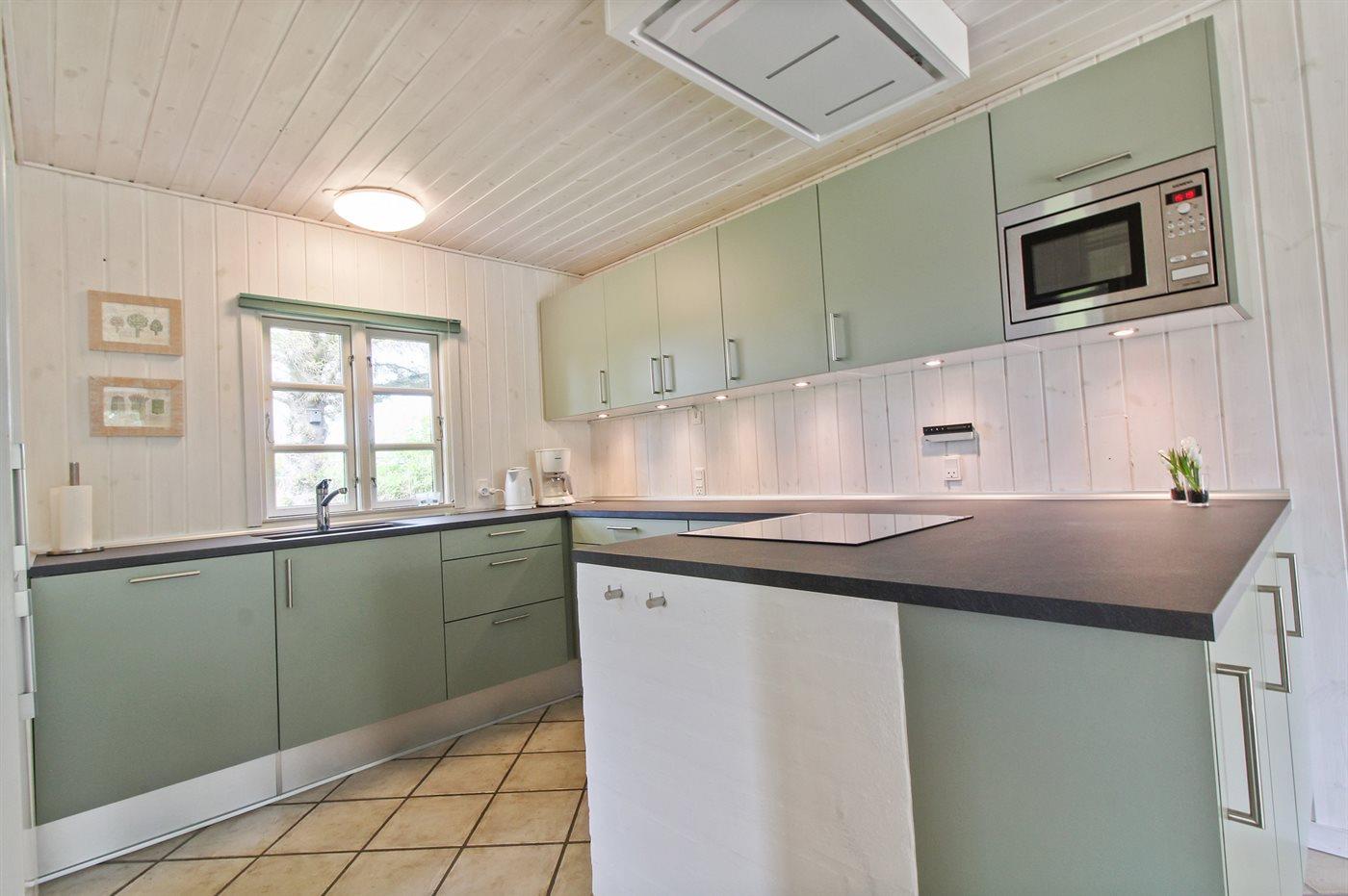 Køkkenet er udstyret med 1 køleskab. Der er 4 keramiske kogeplader, varmluftovn, mikrobølgeovn samt opvaskemaskine.