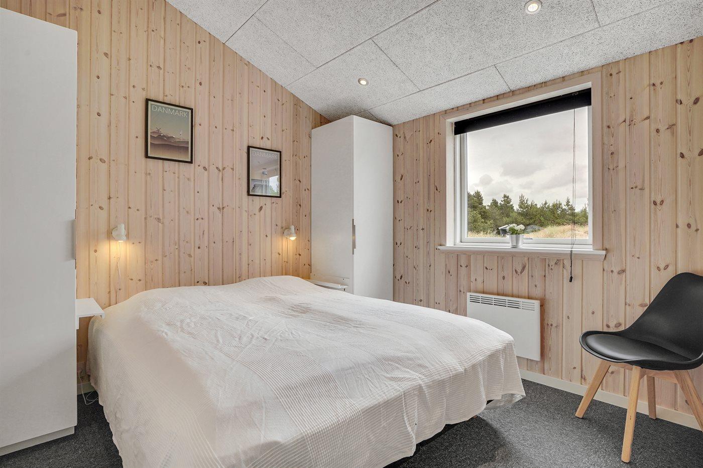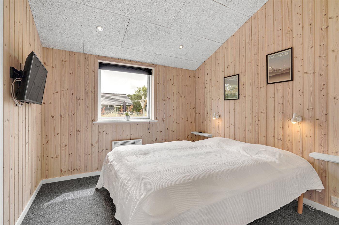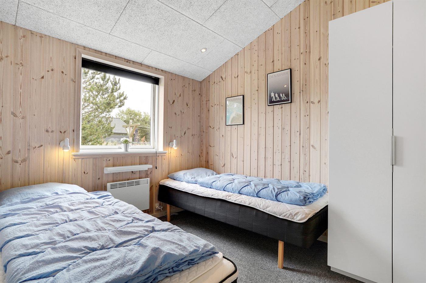 Der er i alt 3 soveværelser. Sovepladserne fordeler sig på: 4 sovepladser i dobbeltsenge. 2 sovepladser i enkeltsenge. Derudover er der 1 stk. barneseng.