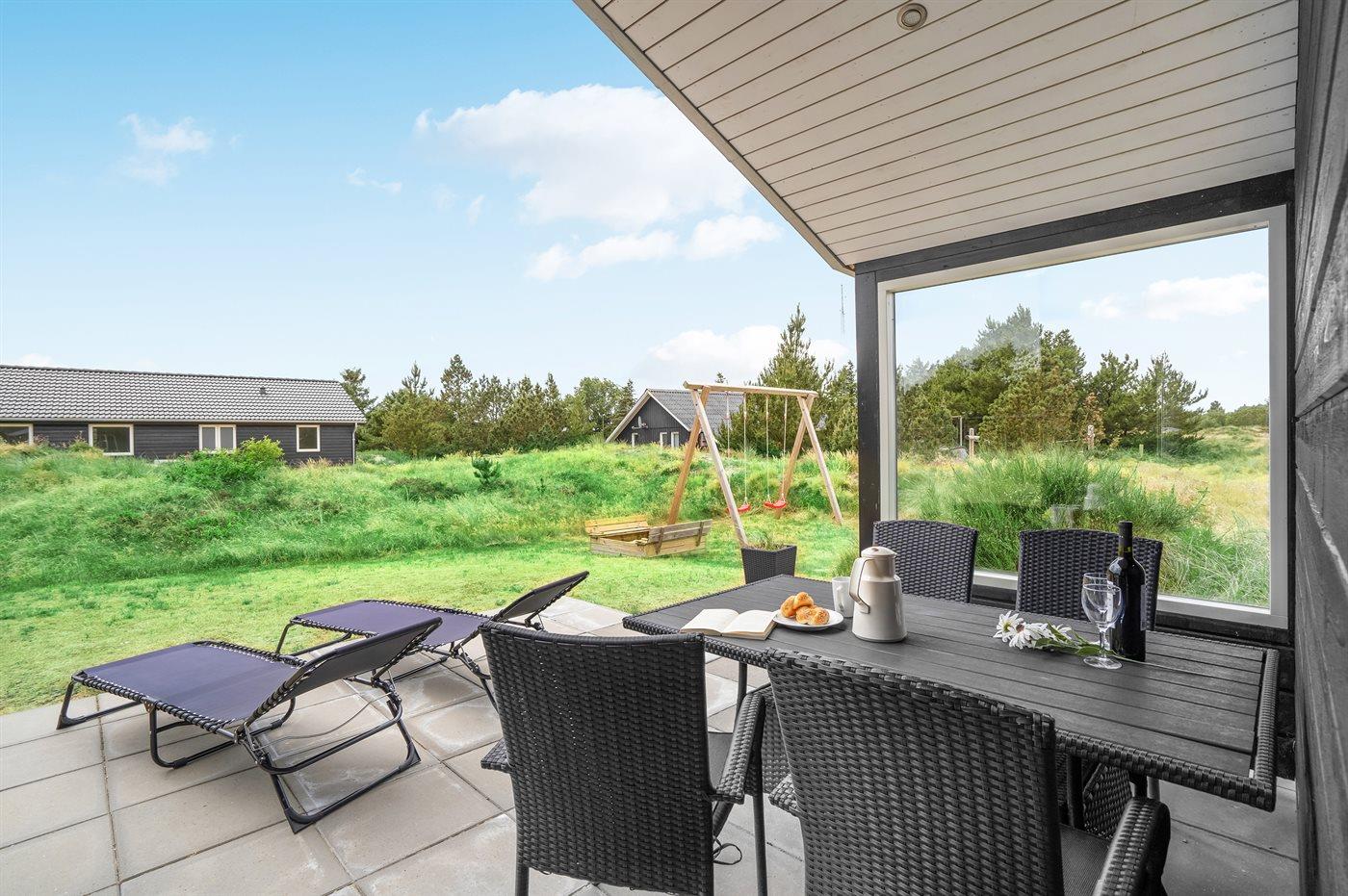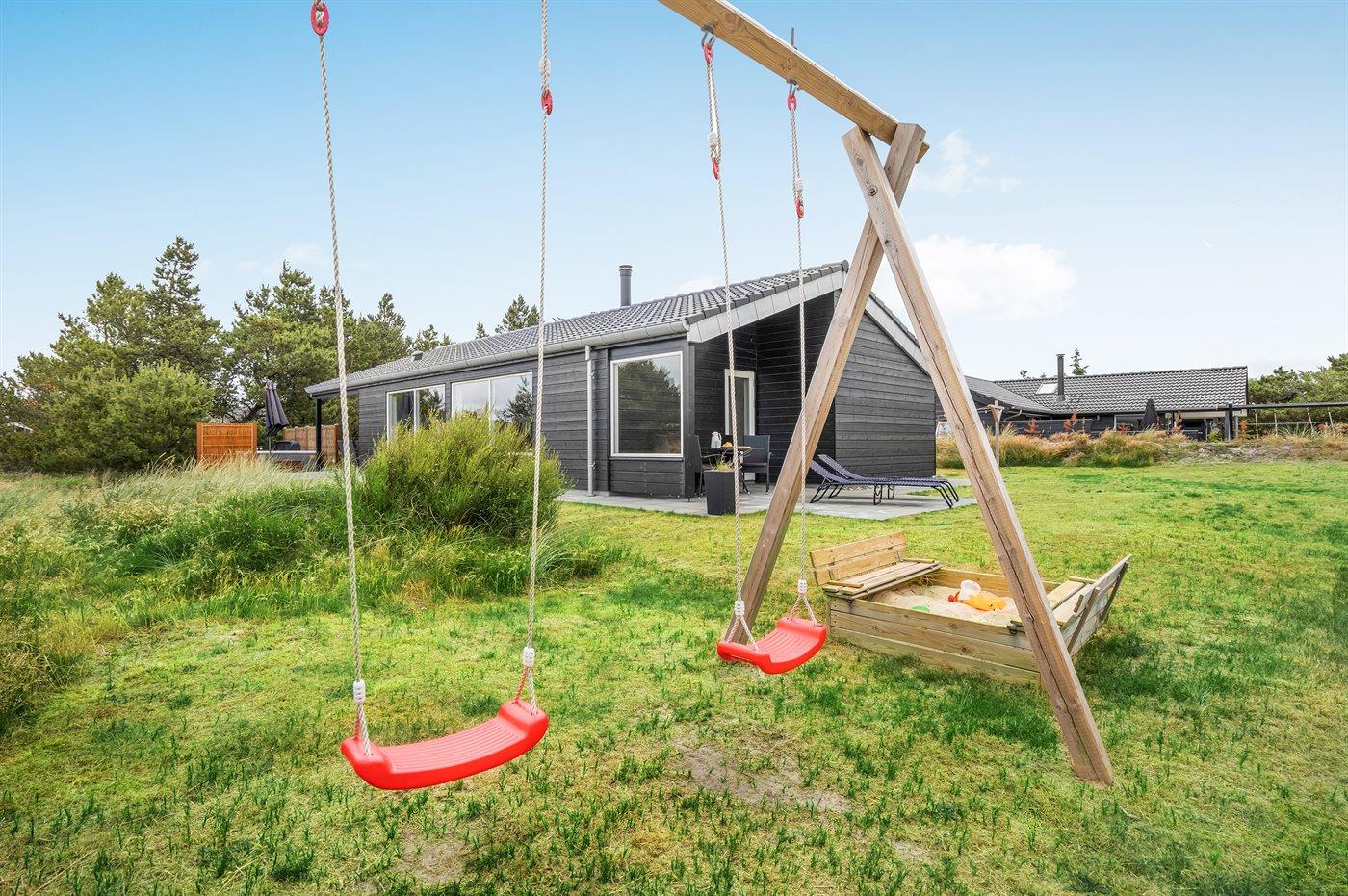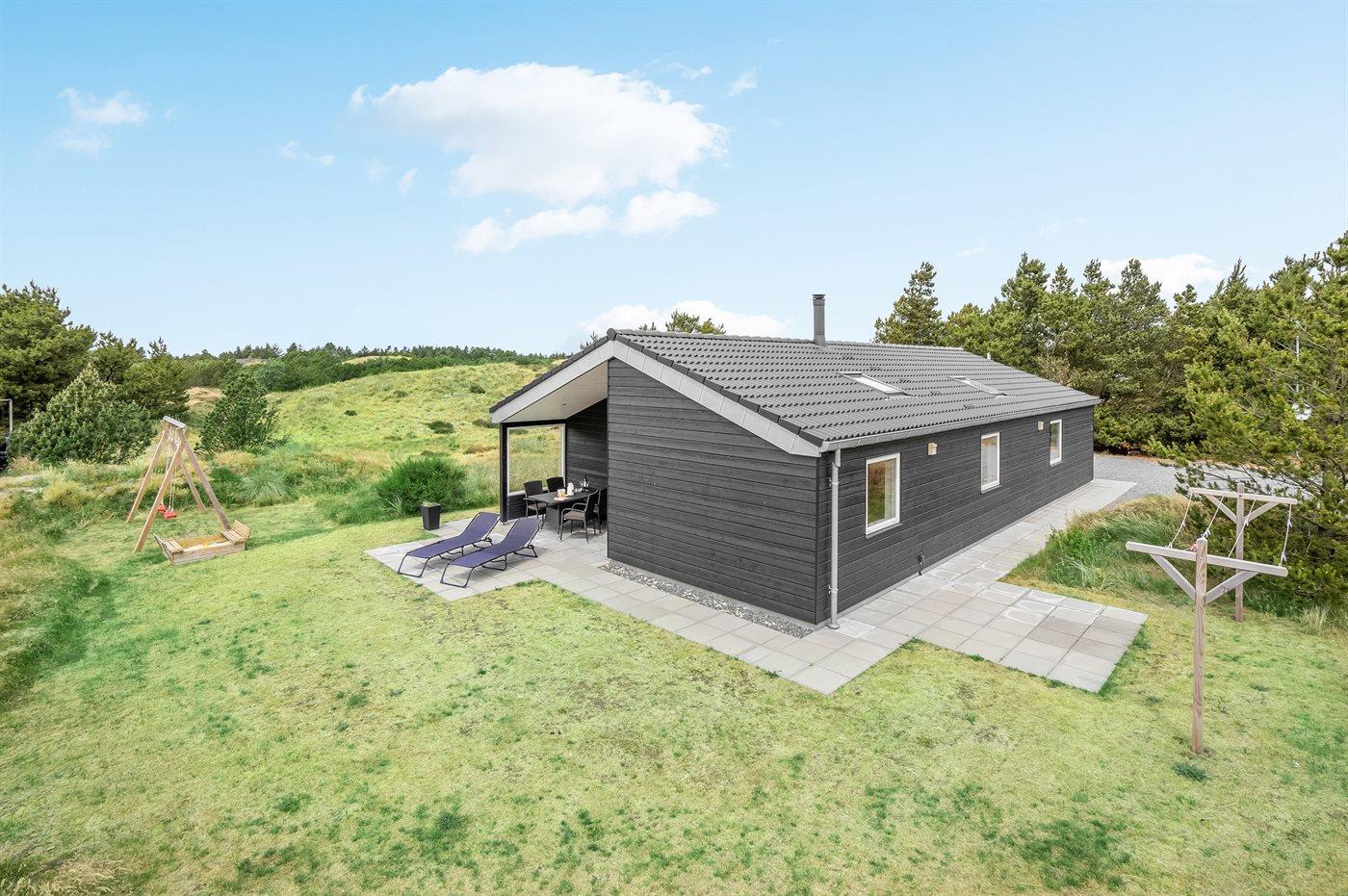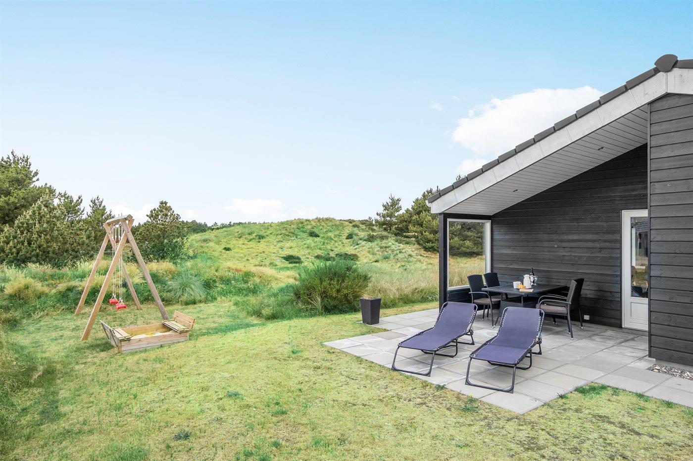 Moderne sommerhus i Blåvand med spa, sauna og stor terrasse nær havet.