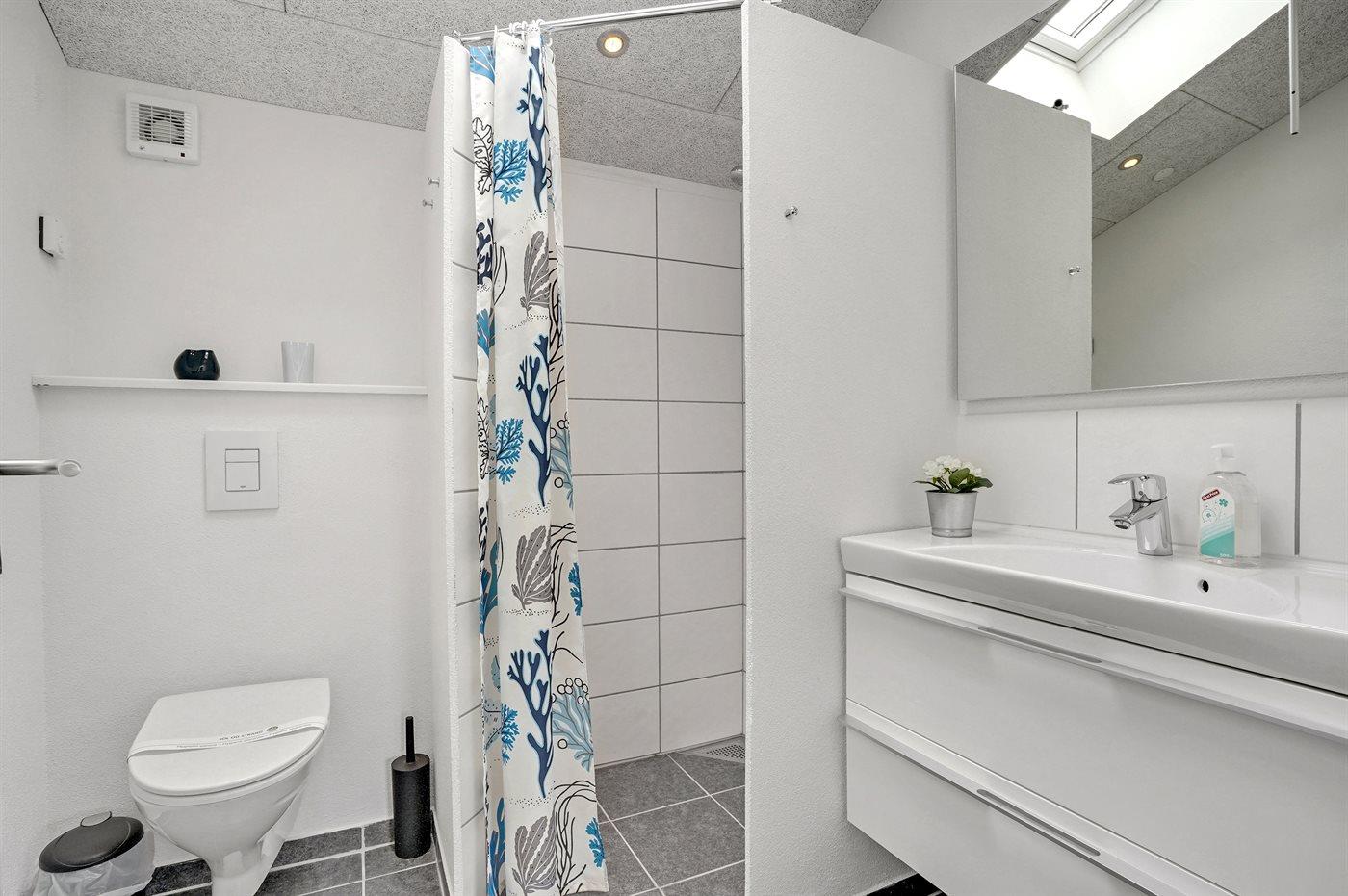 Der er 2 badeværelser med bruseniche og 2 toiletter. Der er gulvvarme på 2 badeværelser. I den infrarøde sauna er mulighed for afslapning.