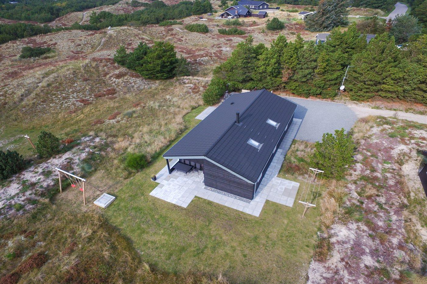 Ferieboligen er beliggende på en 1648 m² stor naturgrund. Der er 1200 m til havet. Nærmeste forretning er beliggende i en afstand af 1500 m. Til ferieboligen hører 80 m² terrasseareal. Desuden er der 15 m² overdækket terrasse. Gynge. Sandkasse. Grill til rådighed. Parkering ved ferieboligen.