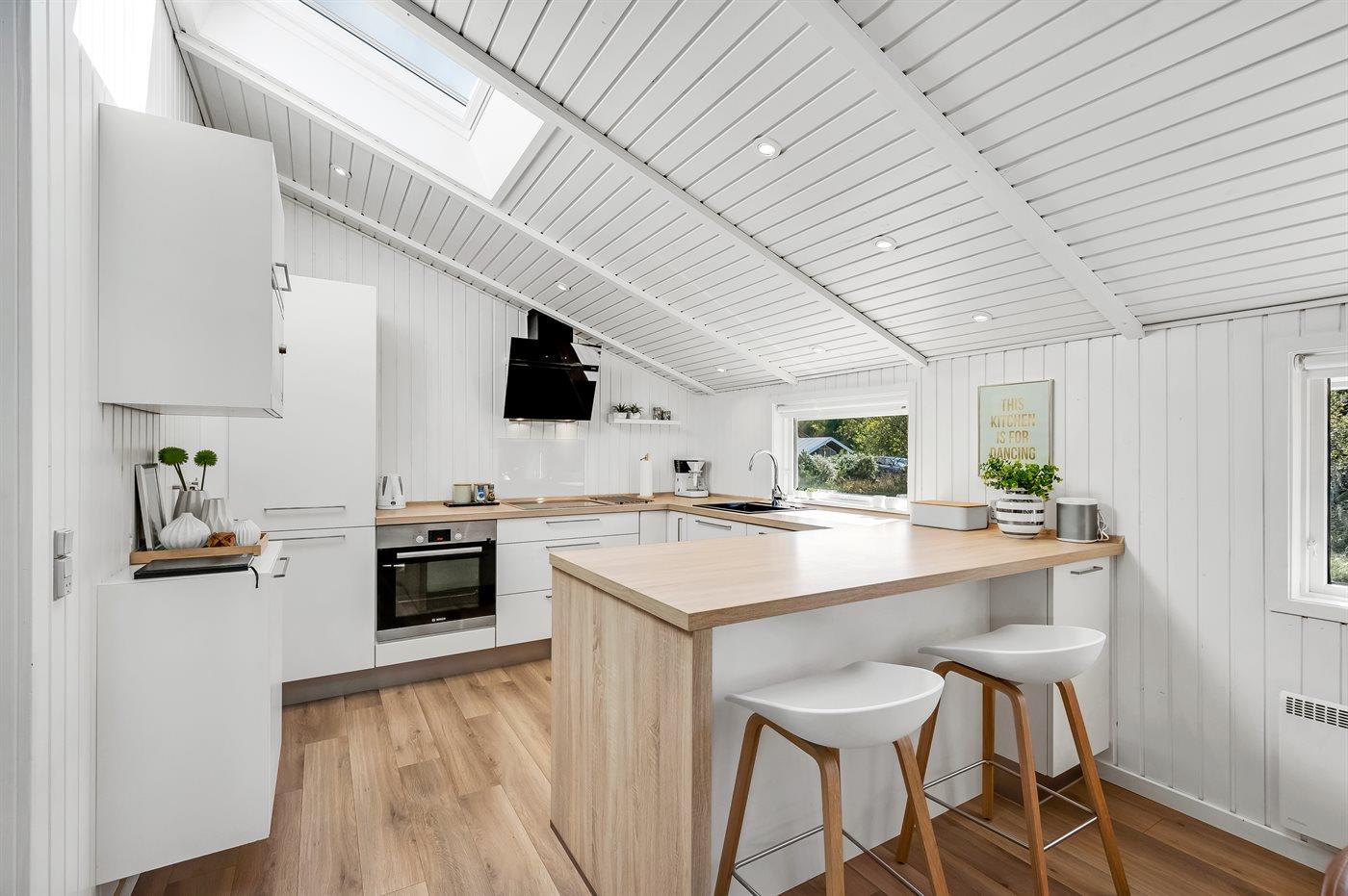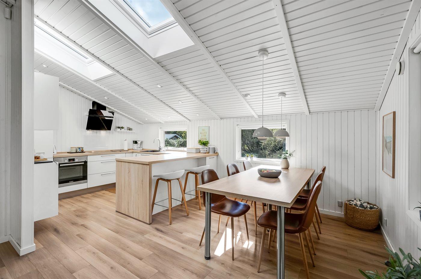 Køkkenet er udstyret med 1 køleskab. Der er 4 induktionskogeplader, varmluftovn, mikrobølgeovn samt opvaskemaskine.