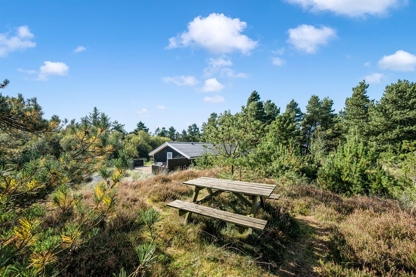 Ferieboligen er beliggende på en 3008 m² stor naturgrund. Der er 2500 m til havet. Nærmeste forretning er beliggende i en afstand af 1300 m. Til ferieboligen hører 97 m² terrasseareal. Desuden er der 14 m² overdækket terrasse. Der er redskabsrum. Gynge. Sandkasse. Legetårn. Grill til rådighed. Parkering ved ferieboligen.