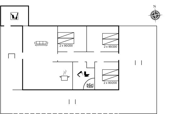 Der er i alt 3 soveværelser. Sovepladserne fordeler sig på: 6 sovepladser i dobbeltsenge. Derudover er der 1 stk. barneseng.