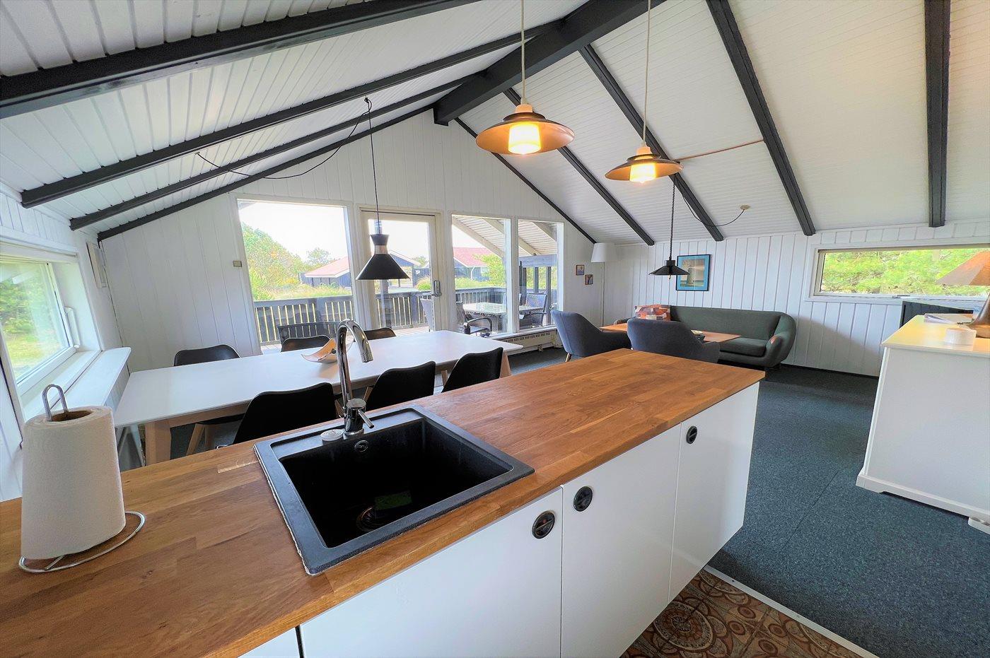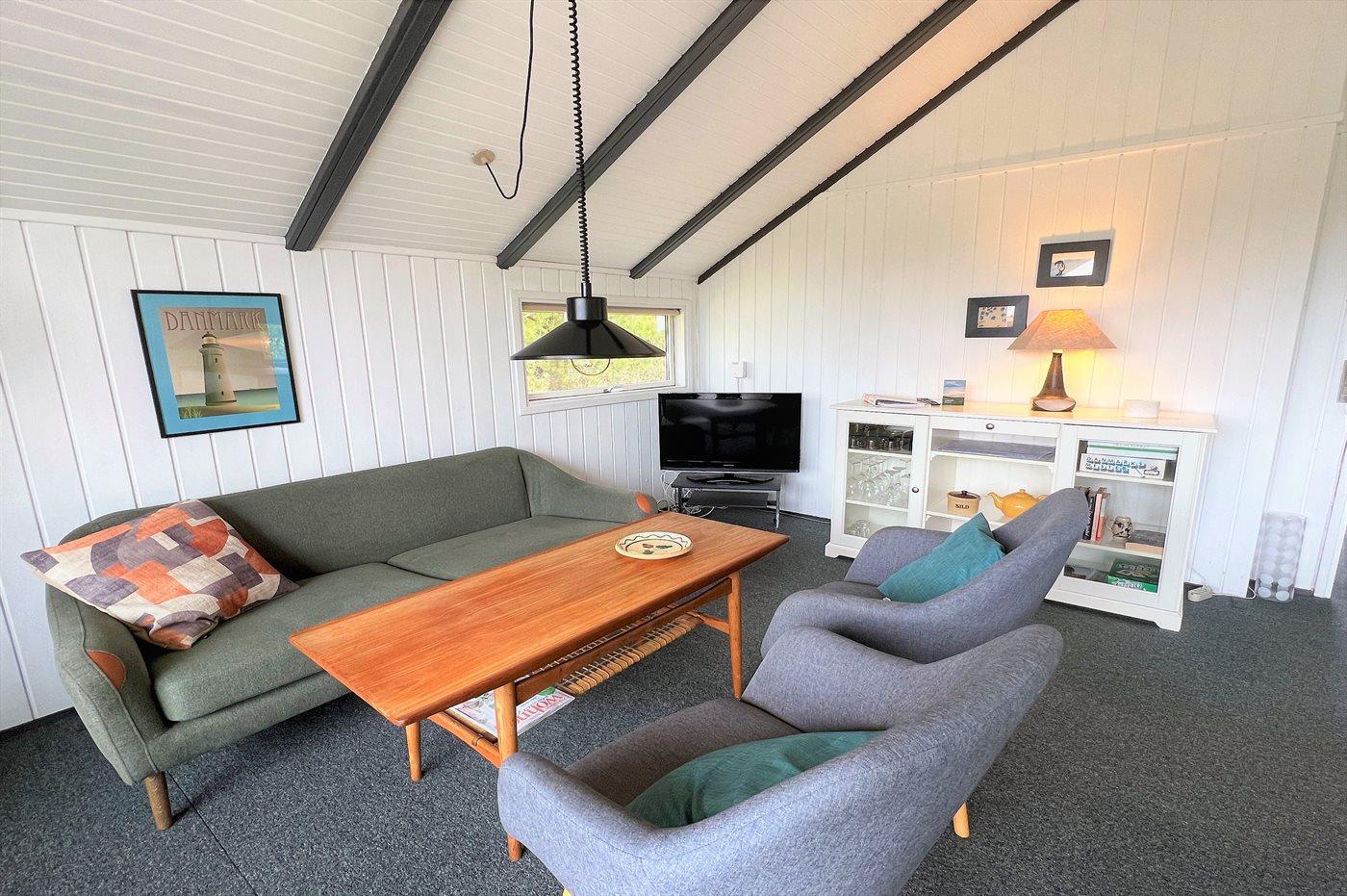 Et sommerhus beliggende i et roligt område ved Blåvand, tæt på store vidder. Sommerhuset er indrettet med skandinaviske møbler og fremtræder lyst og indbydende.