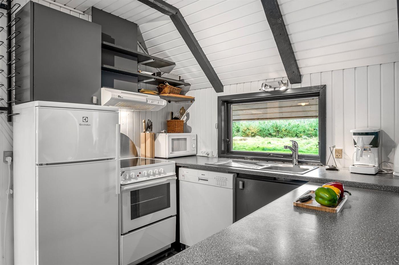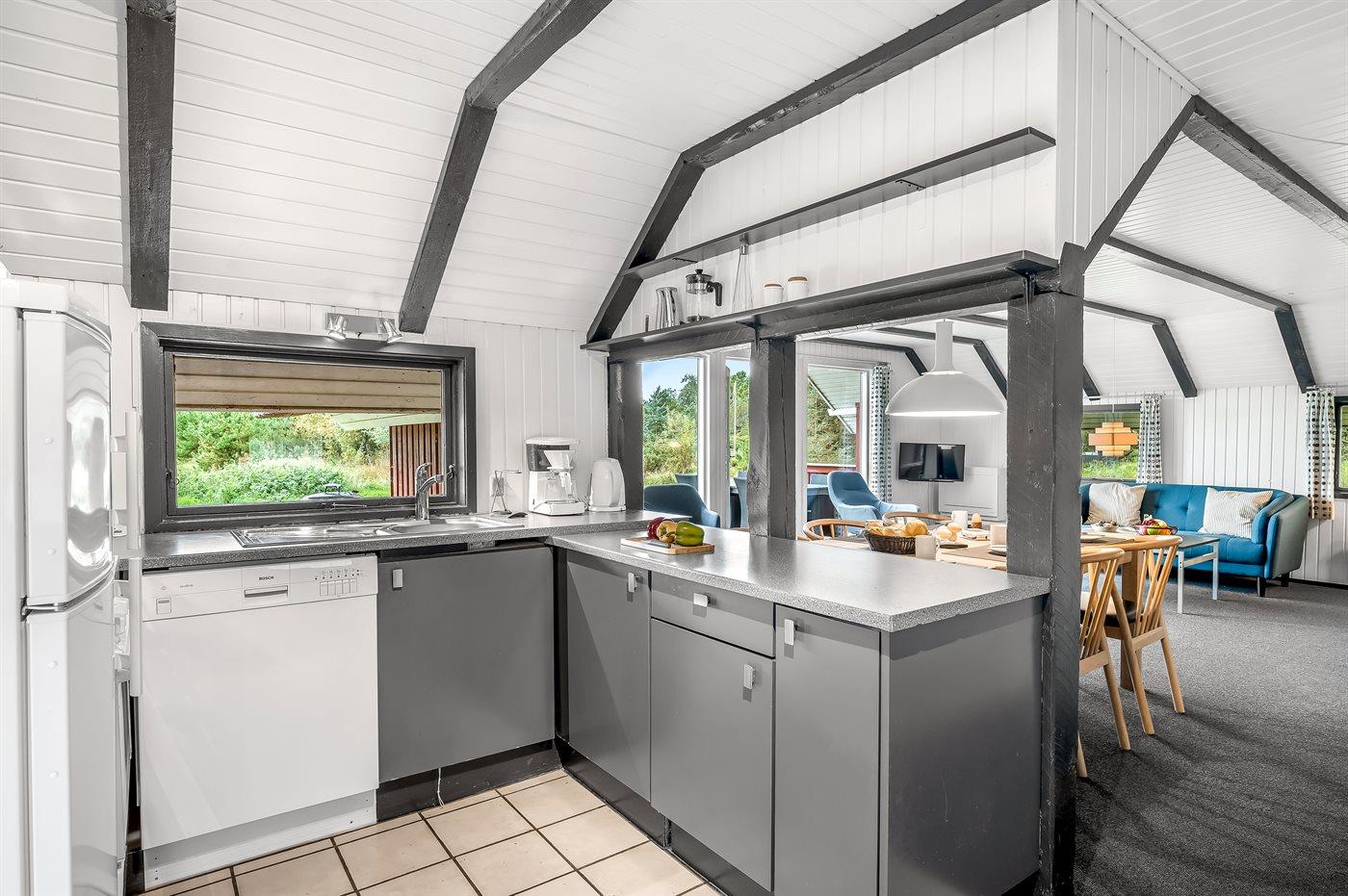 Køkkenet er udstyret med 1 køleskab. Der er 4 induktionskogeplader, varmluftovn, mikrobølgeovn samt opvaskemaskine.