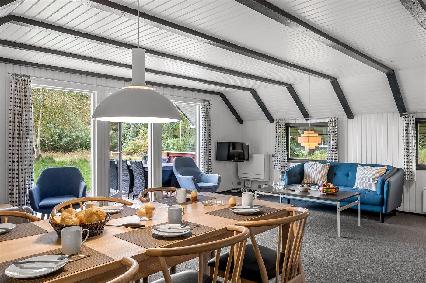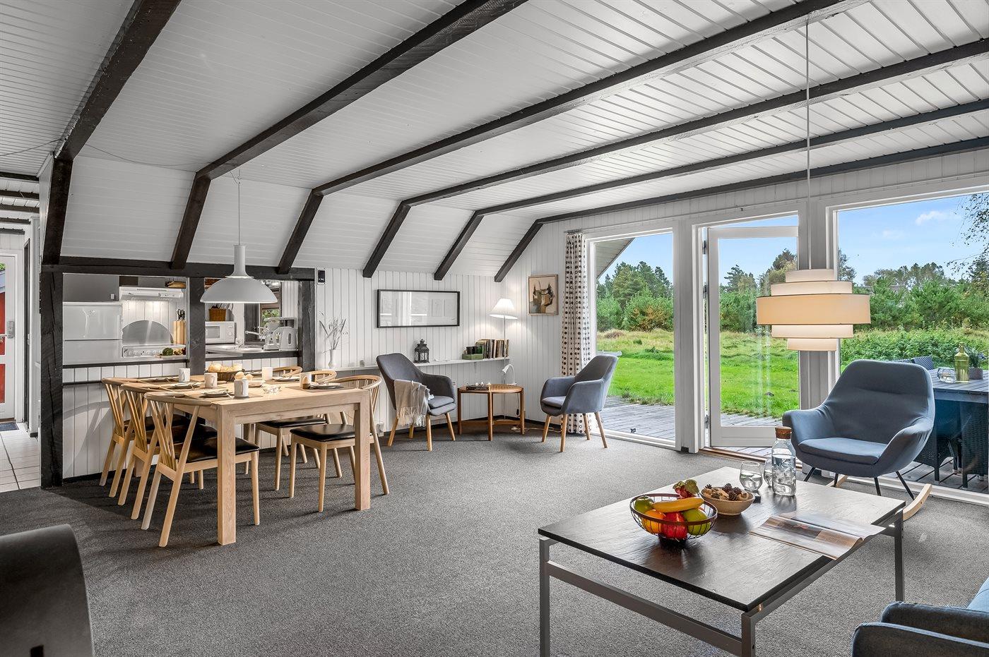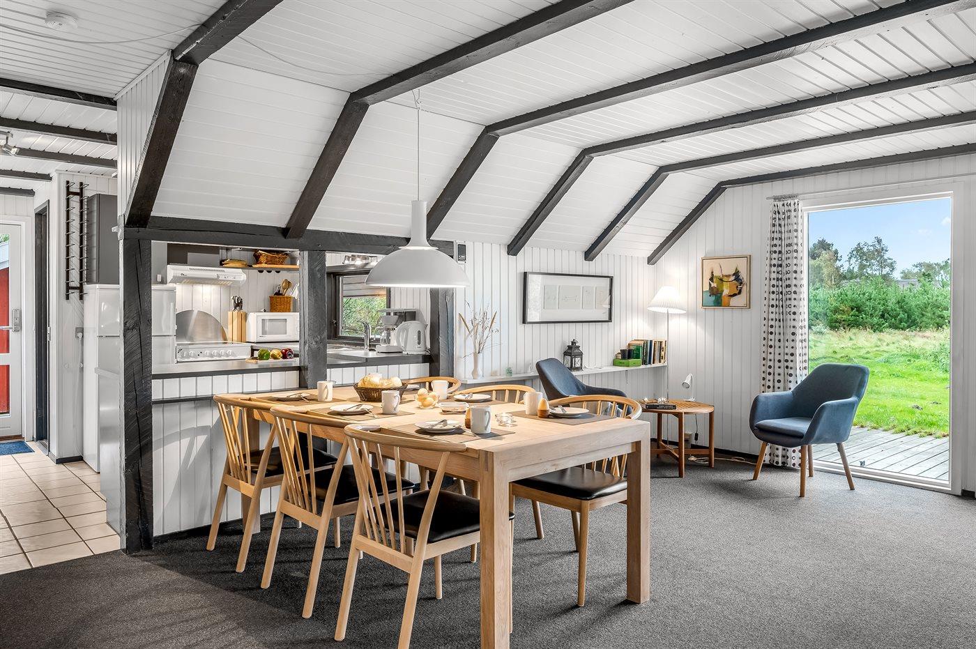 Sommerhuset er indrettet i skandinavisk stil, hyggeligt og med lette møbler.