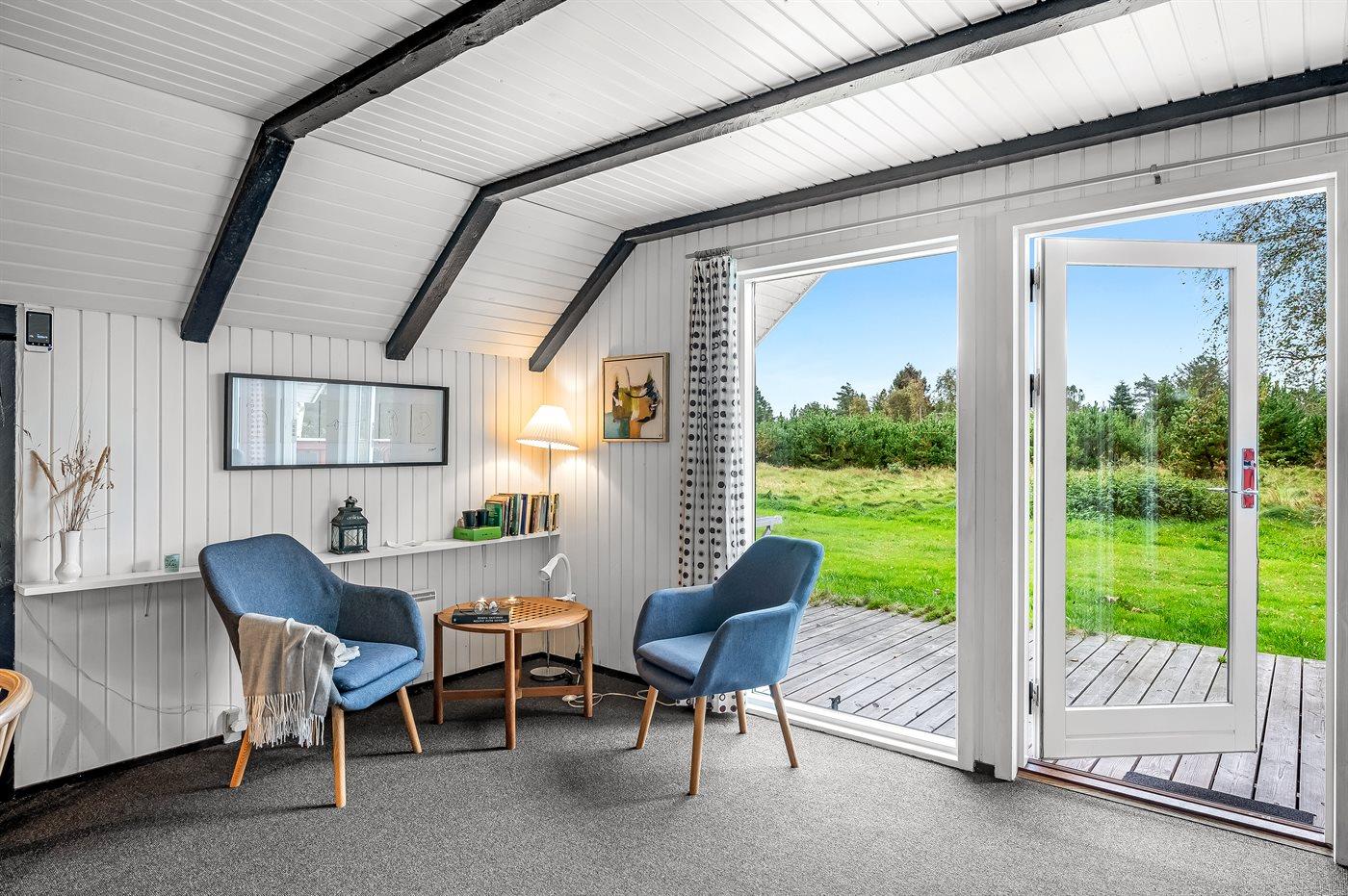 Hyggeligt sommerhus i rolige omgivelser med stor terrasse og naturgrund nær Blåvand strand.
