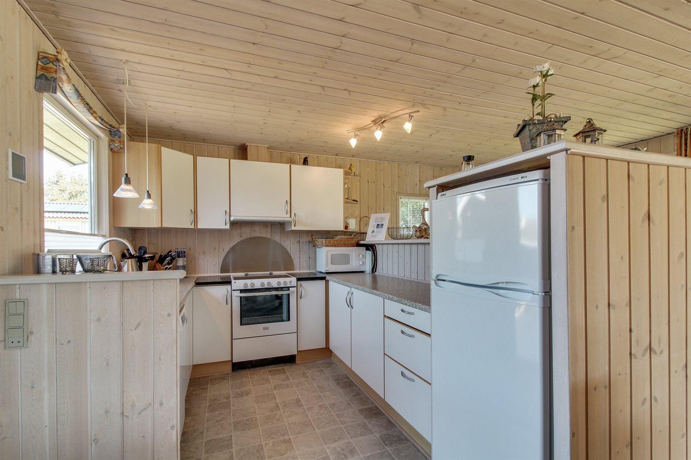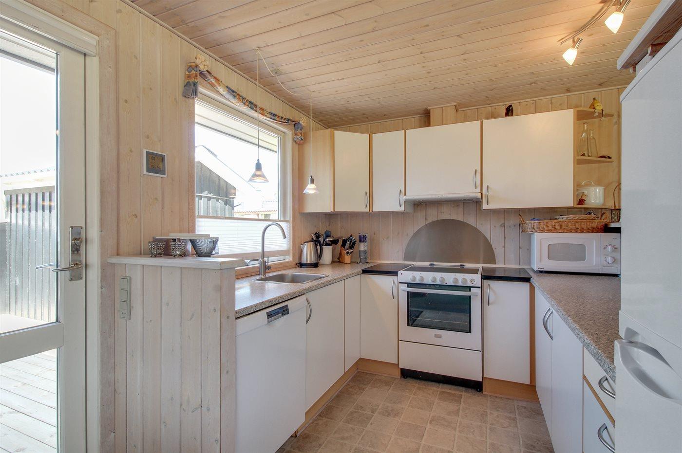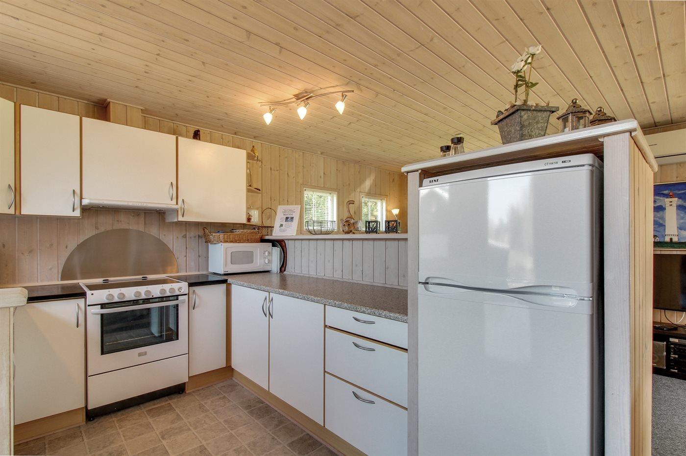 Køkkenet er udstyret med 1 køleskab. Der er 4 keramiske kogeplader, varmluftovn, mikrobølgeovn samt opvaskemaskine.