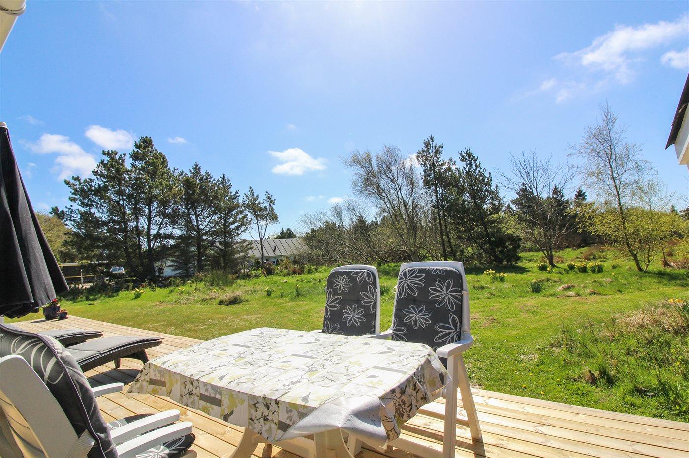 Ferieboligen er beliggende på en 1500 m² stor naturgrund. Der er 1800 m til havet. Nærmeste forretning er beliggende i en afstand af 800 m. Til ferieboligen hører 93 m² terrasseareal. Desuden er der 12 m² overdækket terrasse. Der er redskabsrum. Gynge. Sandkasse. Parkering ved ferieboligen.