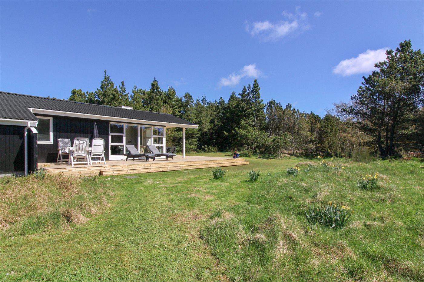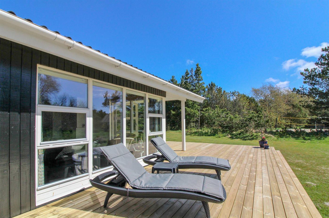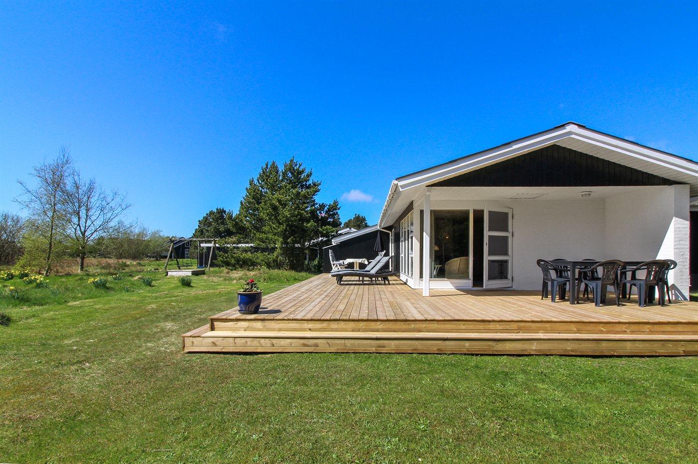 Velholdt sommerhus i Blåvand med sauna, brændeovn og stor terrasse i naturskønne omgivelser.
