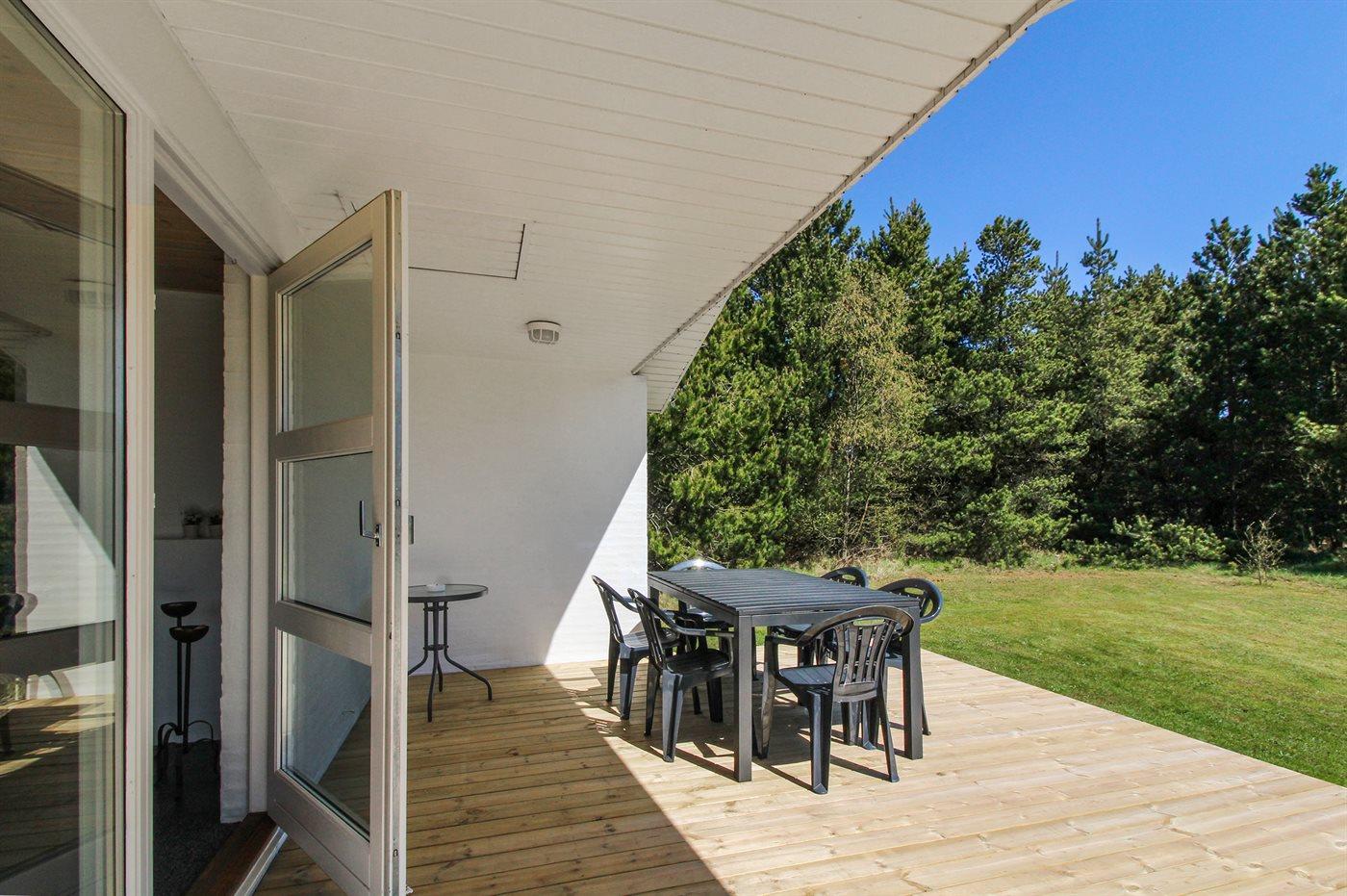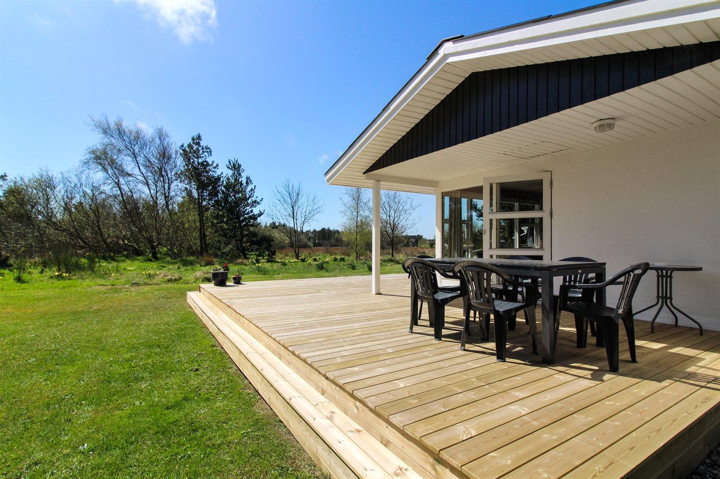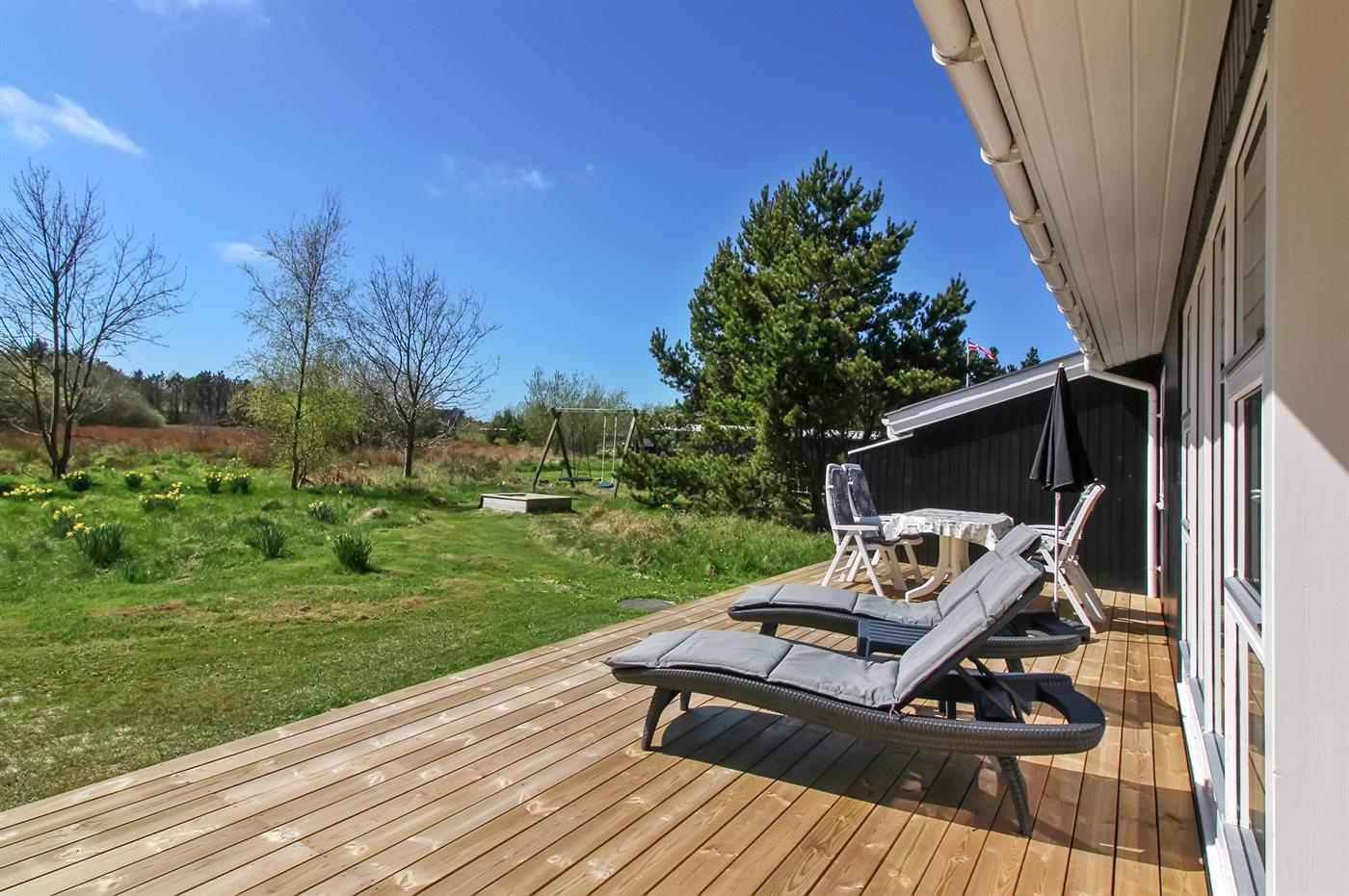 Velholdt sommerhus i Blåvand med sauna, brændeovn og stor terrasse i naturskønne omgivelser.