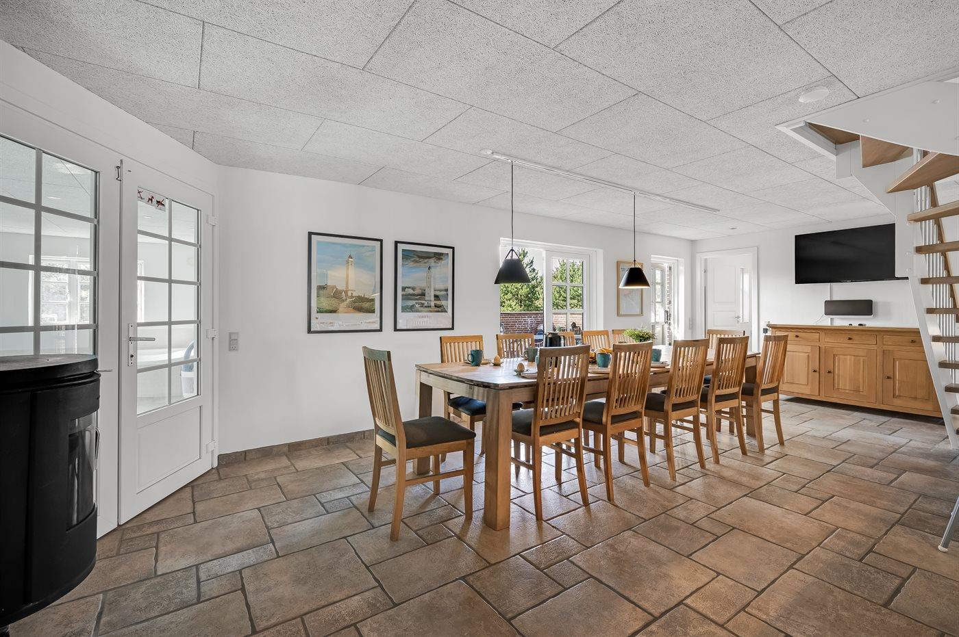 Sommerhuset egner sig til 14 personer samt 1 barn op til 3 år. Ferieboligen er på 250 m², er i 2 plan, og er bygget i 1992. I 2016 gennemgik ferieboligen en renovering. I 2021 er der bygget et anneks med aktivitetsrum og adgang til hems. Det er tilladt at medbringe 1 husdyr. Ferieboligen er udstyret med energibesparende varmepumpe. Der er jordvarme. Der er gulvvarme i alle klinkegulve. Ferieboligen har vaskemaskine. Tørretumbler. Frysekapacitet på 170 liter. Der er desuden brændeovn. Til de små er der 1 stk. barnestol. Puslebord.