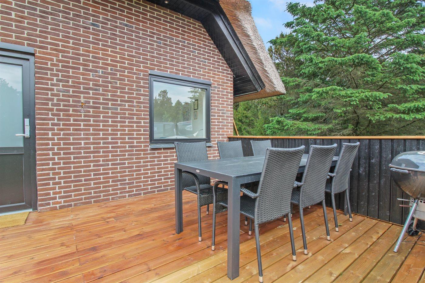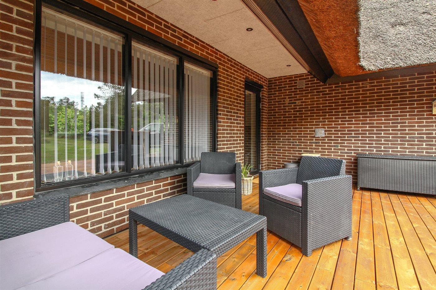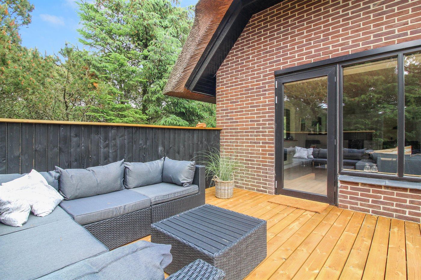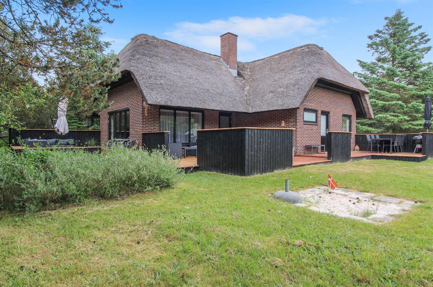 Et dejligt og velplejet sommerhus med stråtag og lys indretning. Huset ligger på en skøn naturgrund, på en rolig grusvej kun få minutters gang fra den børnevenlige badestrand og feriebyen Blåvand.