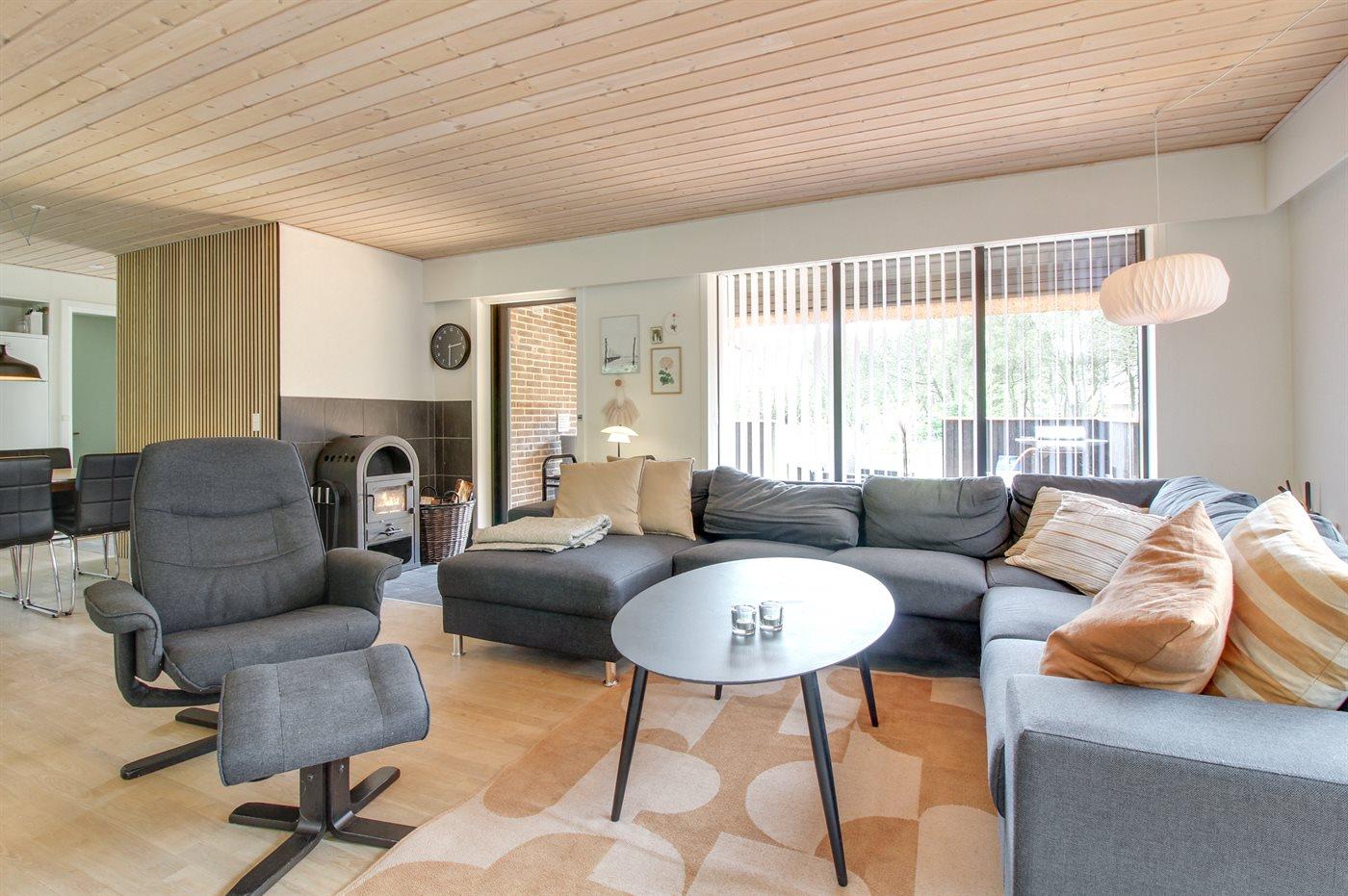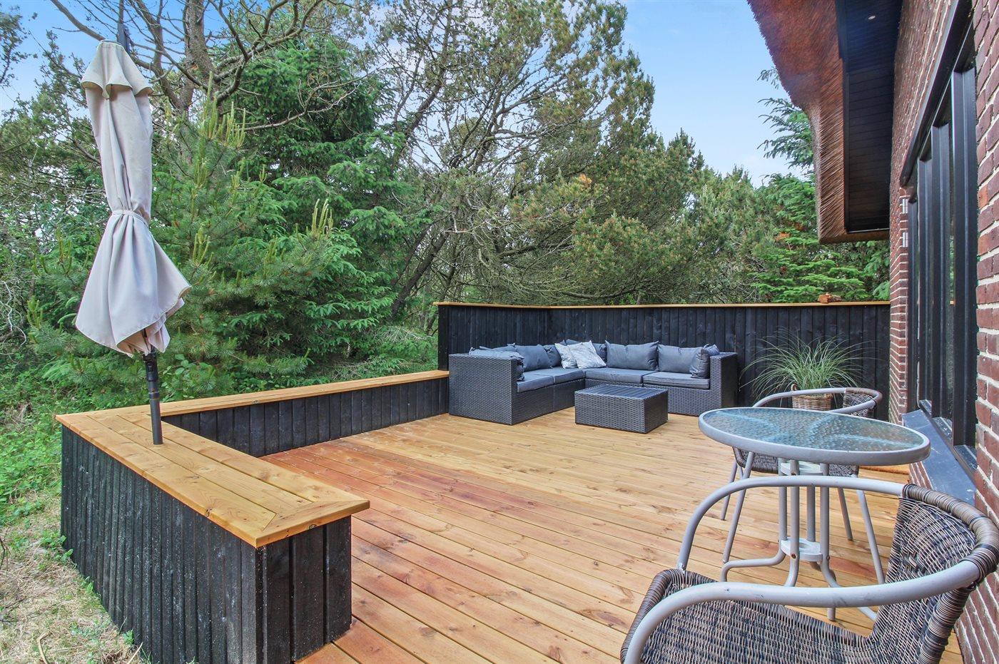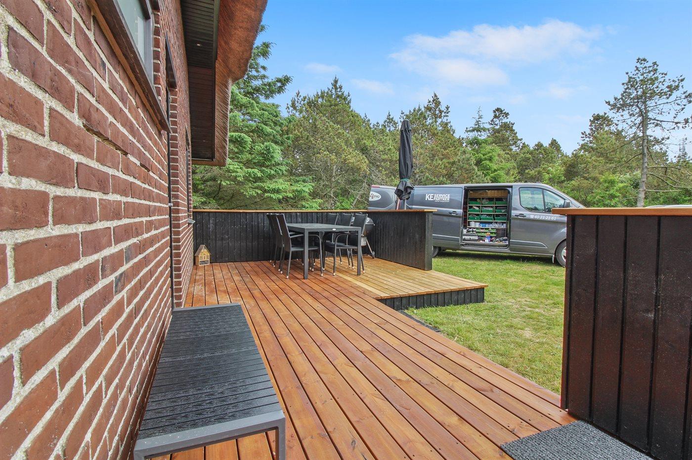 Ferieboligen er beliggende på en 2500 m² stor naturgrund. Der er 800 m til havet. Nærmeste forretning er beliggende i en afstand af 900 m. Til ferieboligen hører 20 m² terrasseareal. Gynge. Sandkasse. Grill til rådighed. Der er installeret stik til opladning af elbil. Parkering ved ferieboligen.