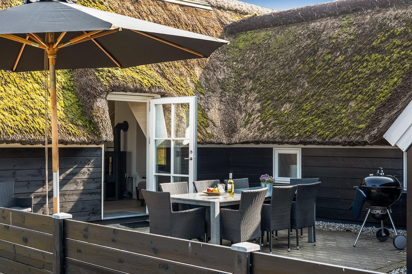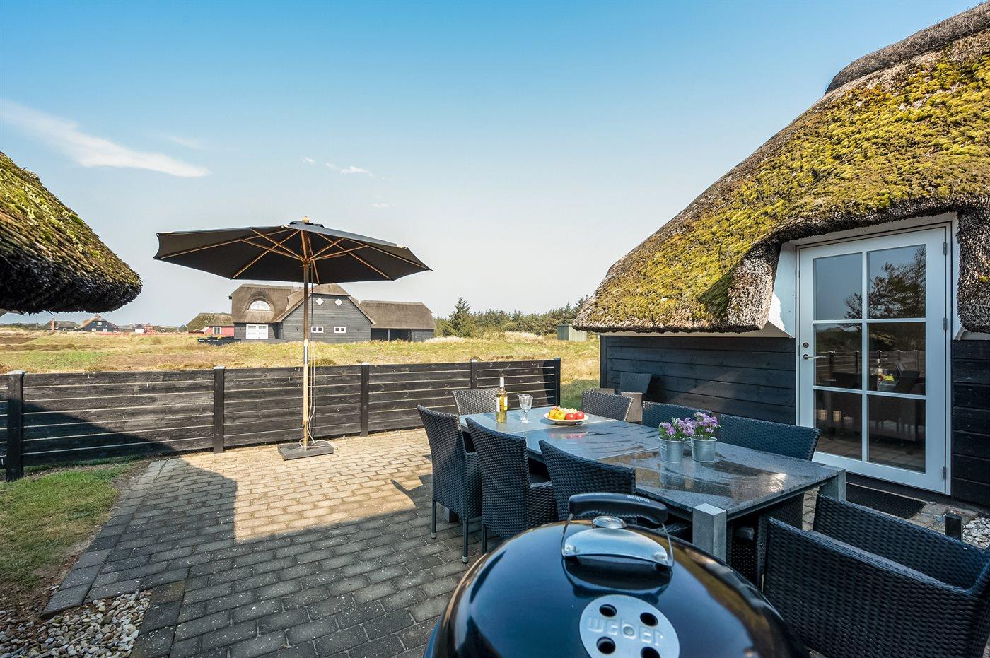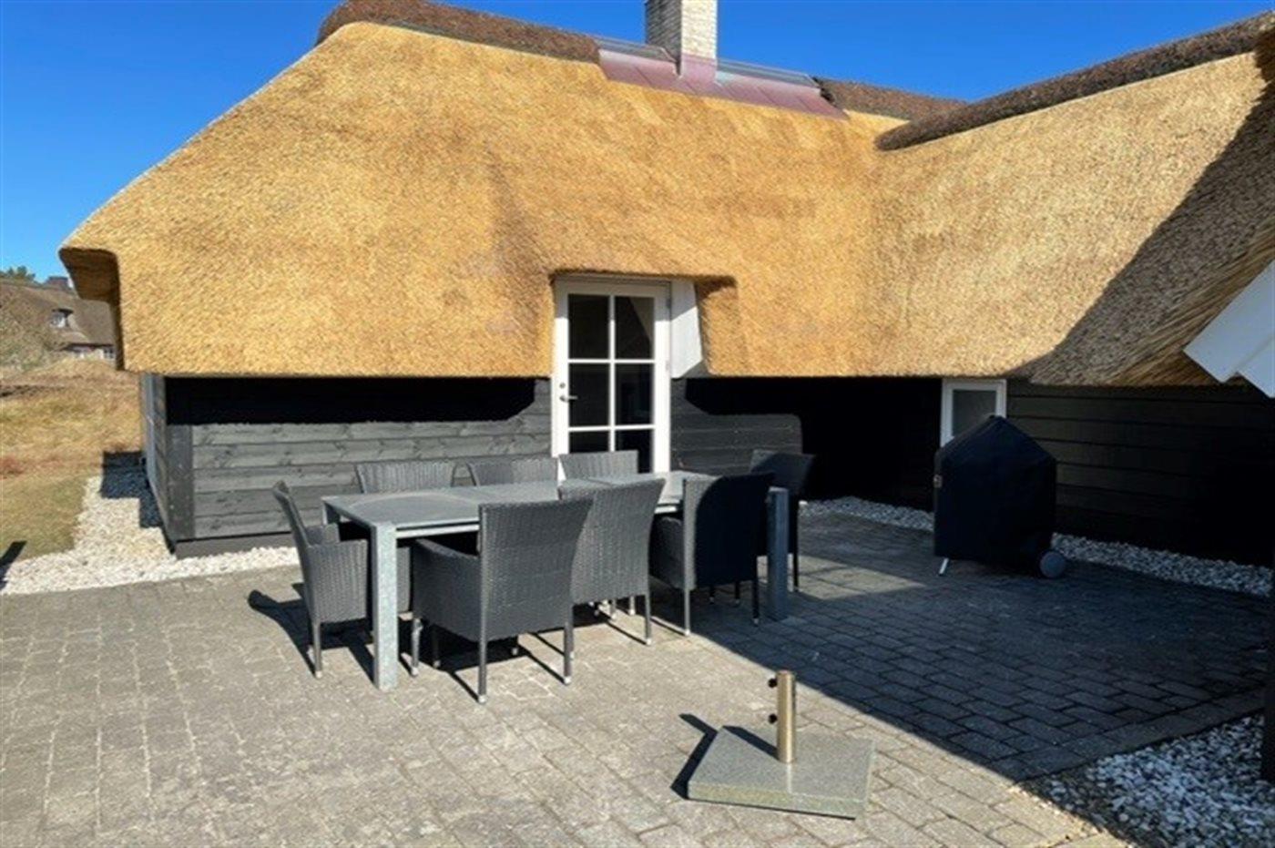 Sommerhuset er på 167 m² og egner sig fint til 8 personer. I 2019 gennemgik ferieboligen en totalrenovering og fremstår nu lys og moderne. Huset er omgivet af et delvist lukket areal og er udstyret med en energibesparende varmepumpe. Der er Weber grill til rådighed