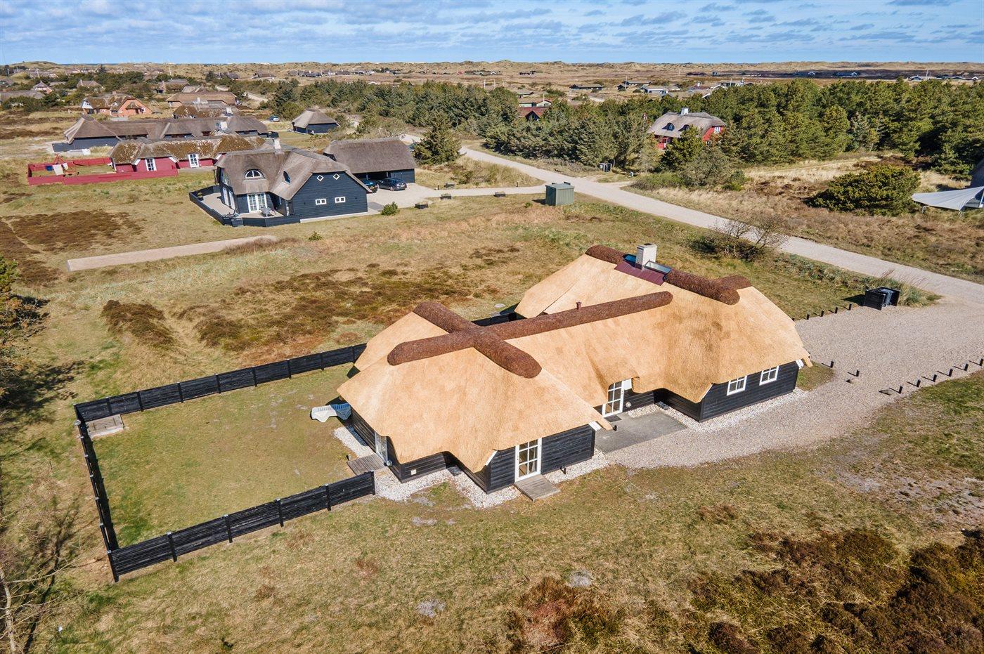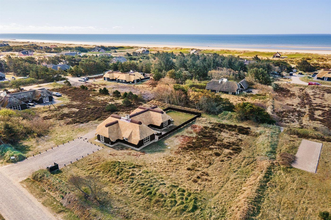 Kun 200 m fra en af Danmarks bedste og mest børnevenlige badestrande finder I dette flotte og arkitekttegnede sommerhus. Huset ligger på en dejlig naturgrund, i et meget attraktivt og roligt område, ikke langt fra Blåvand Fyr og i gåafstand fra Blåvand centrum. Nærmeste forretning er beliggende i en afstand af 1500 m. Området egner sig rigtig godt til gåture eller ture på stranden og der er god parkeringsmulighed ved huset.