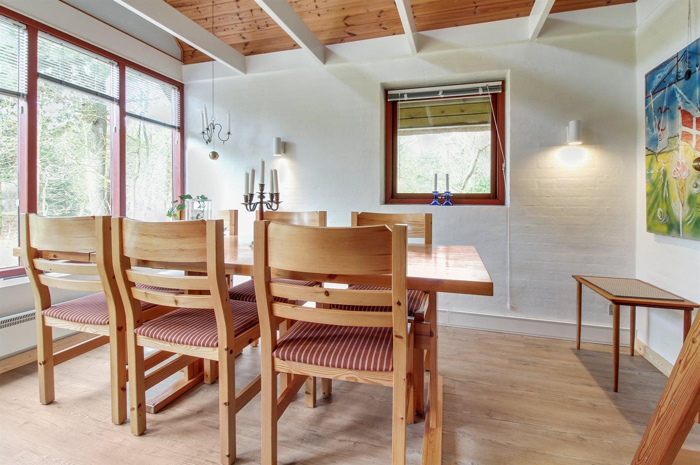 Sommerhuset egner sig til 5 personer. Ferieboligen er på 140 m², er i 2 plan, og er bygget i 1984. I 2001 gennemgik ferieboligen en delvis renovering. Det er tilladt at medbringe 1 husdyr. Ferieboligen er udstyret med energibesparende varmepumpe. Der findes vaskemaskine, som er placeret i garagen. Frysekapacitet på 40 liter. Der er desuden brændeovn.