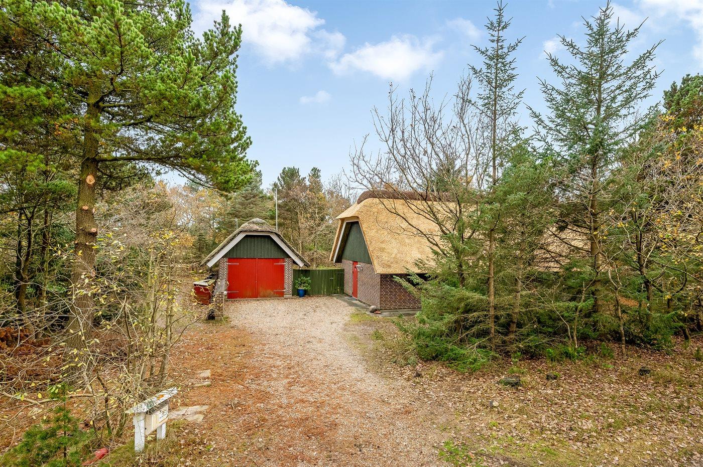 Ferieboligen er beliggende på en 2500 m² stor naturgrund. Der er 600 m til havet. Nærmeste forretning er beliggende i en afstand af 1000 m. Til ferieboligen hører 50 m² terrasseareal. Desuden er der 10 m² overdækket terrasse. Udgang til altan. Sandkasse. Grill til rådighed. Der er garage til rådighed. Parkering ved ferieboligen.