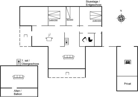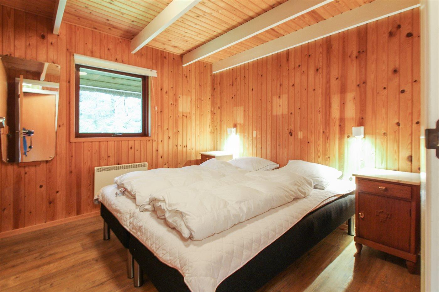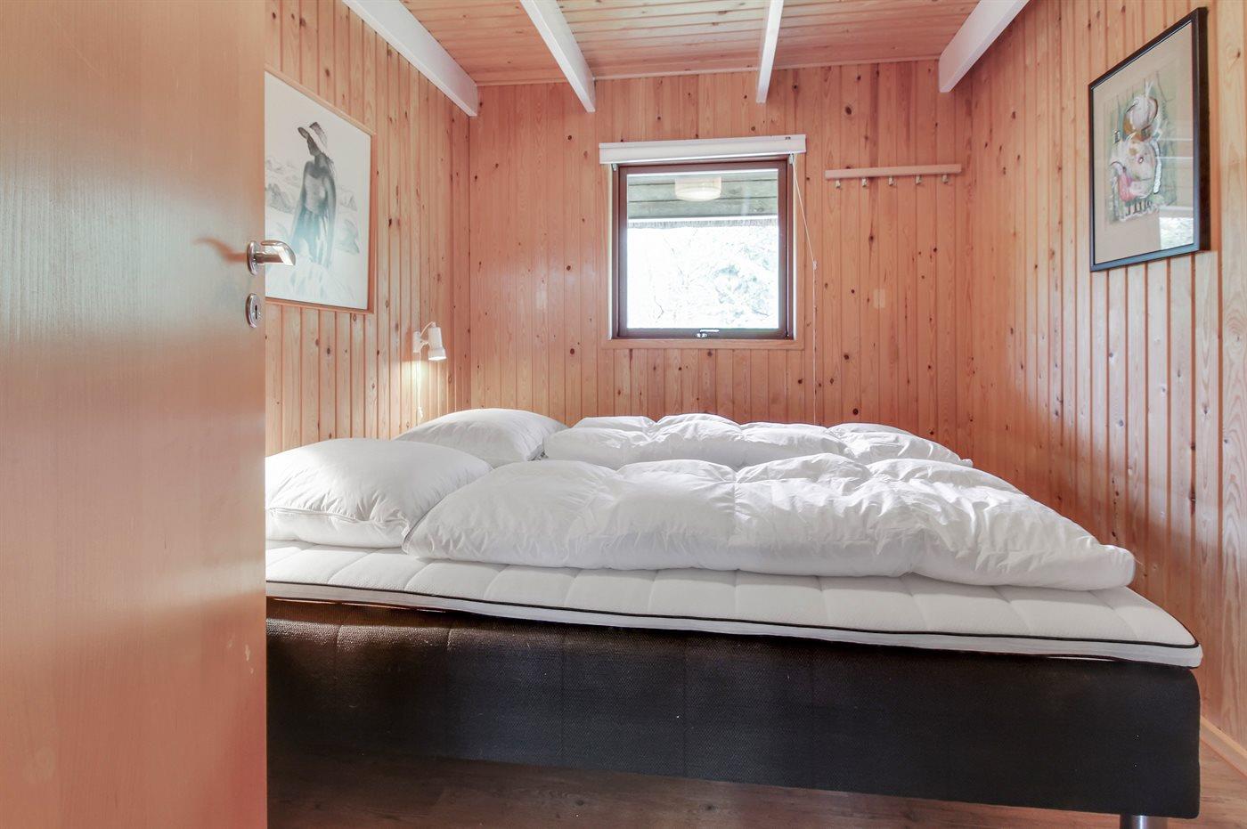 Der er i alt 3 soveværelser. Sovepladserne fordeler sig på: 4 sovepladser i dobbeltsenge. 2 sovepladser i enkeltsenge. 1 af disse sovepladser befinder sig på husets hems.