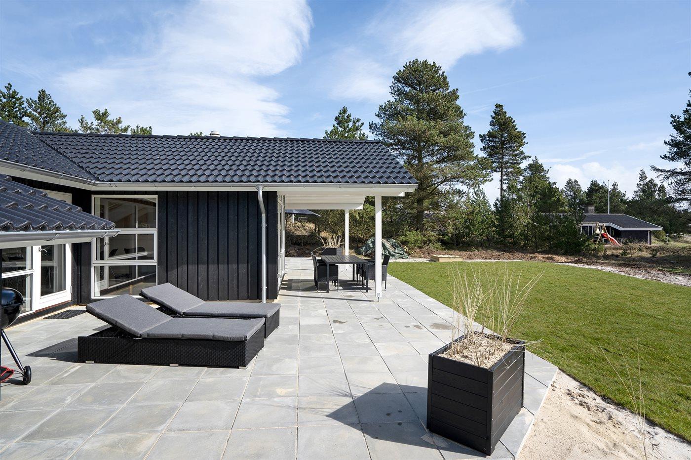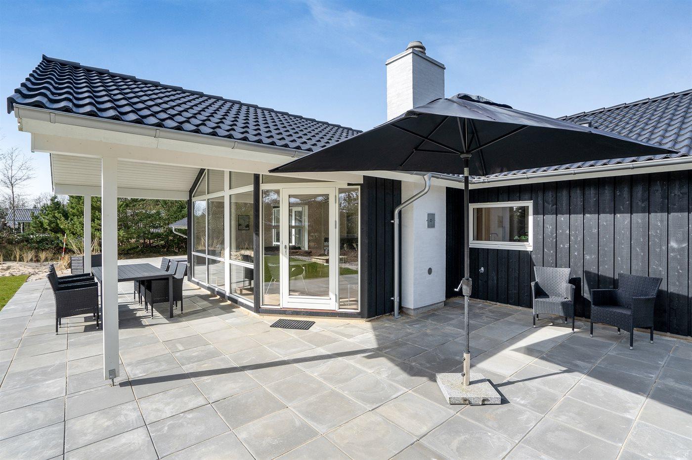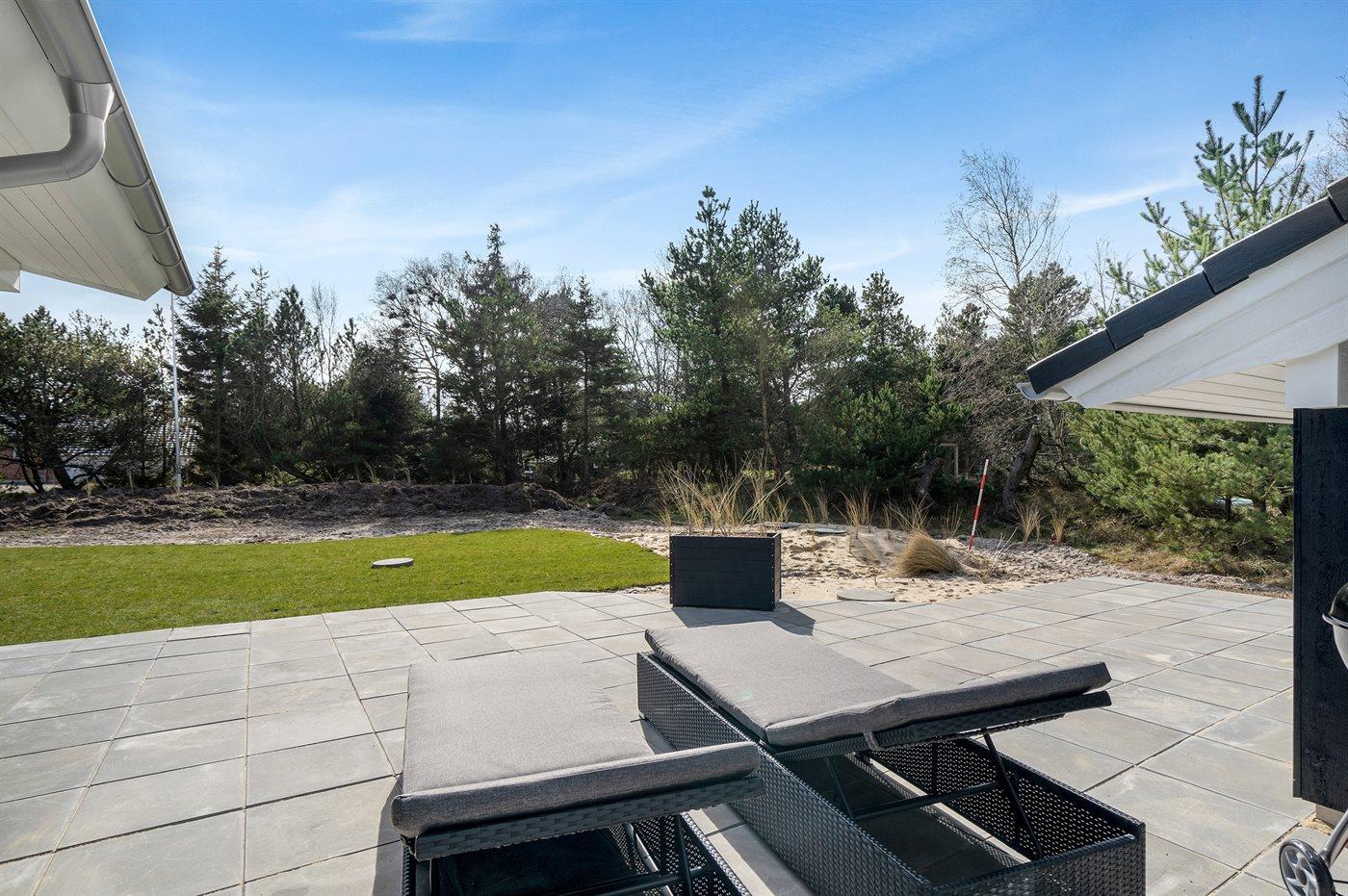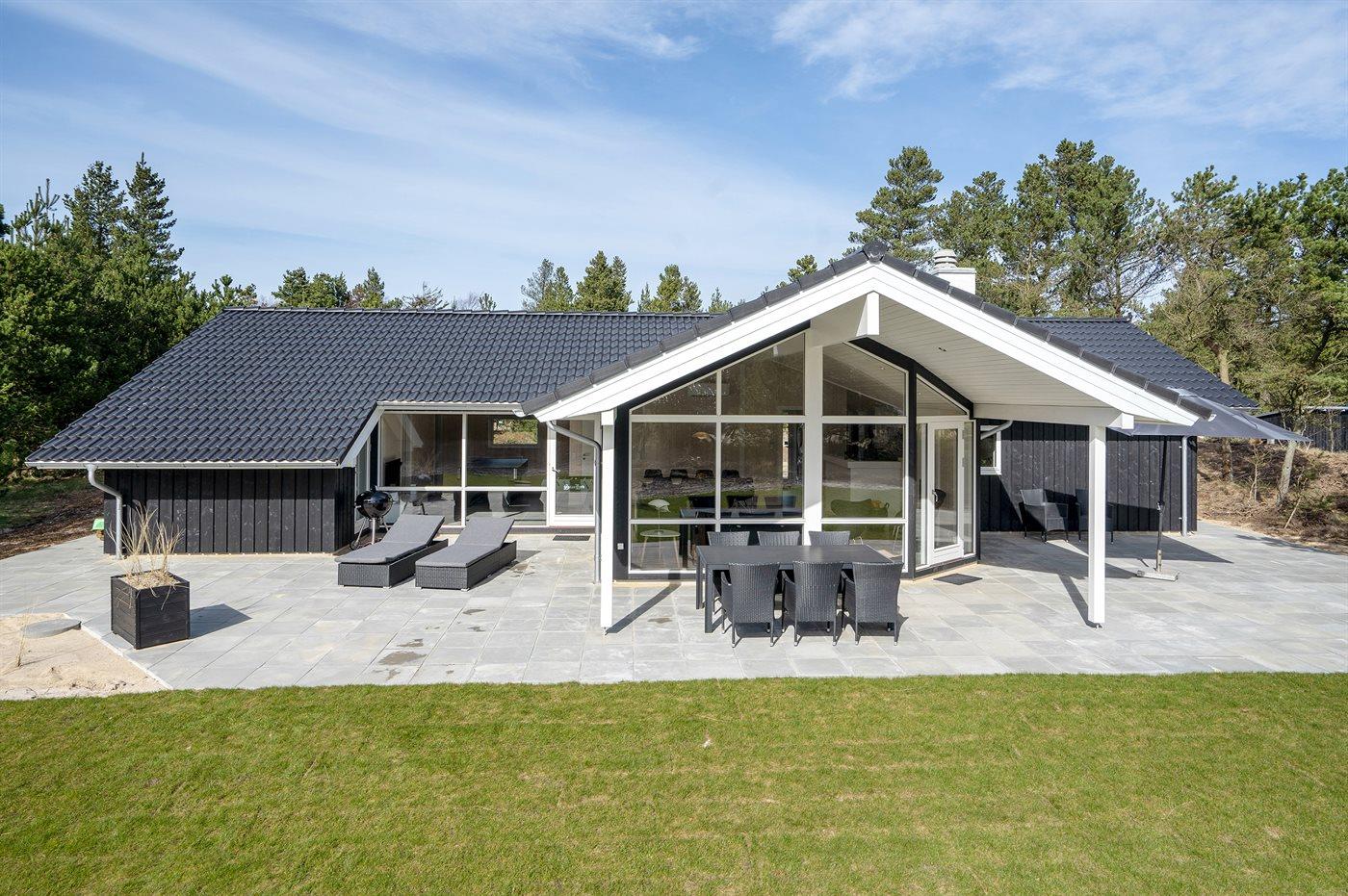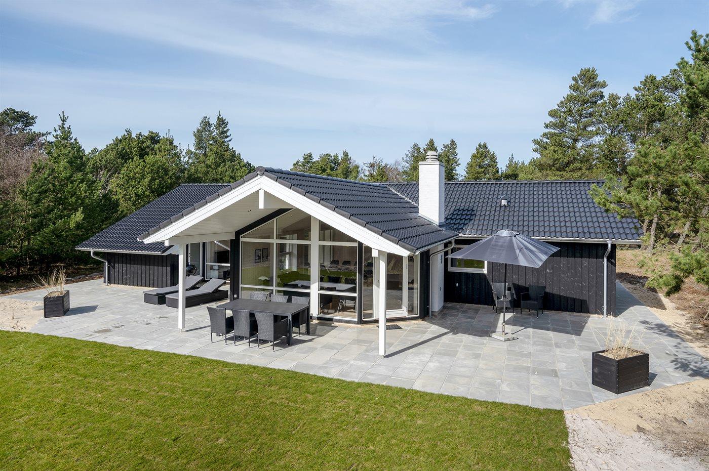 Flot sommerhus i Blåvand med spa, aktivitetsrum og stor naturgrund tæt på by og strand.