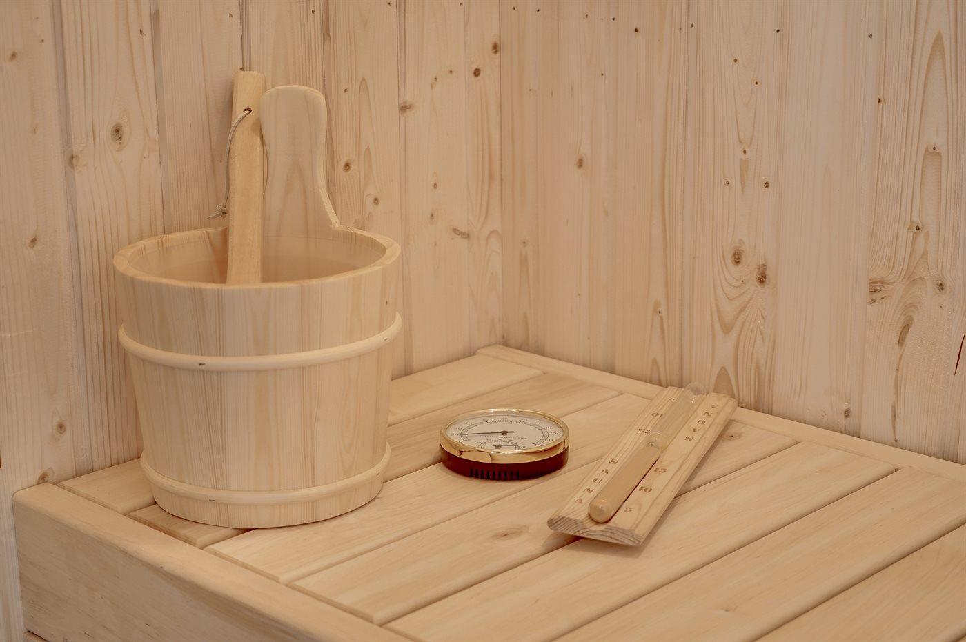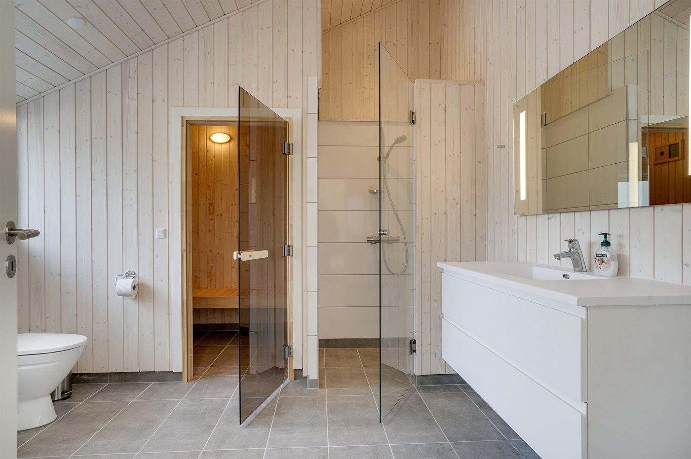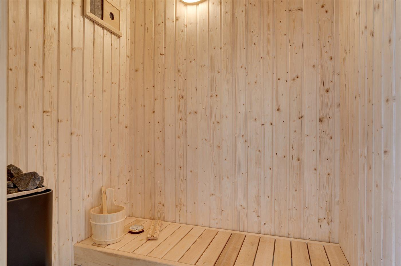 Der er 2 badeværelser med bruseniche og 2 toiletter. Der er gulvvarme på 2 badeværelser. I saunaen er der mulighed for afslapning.