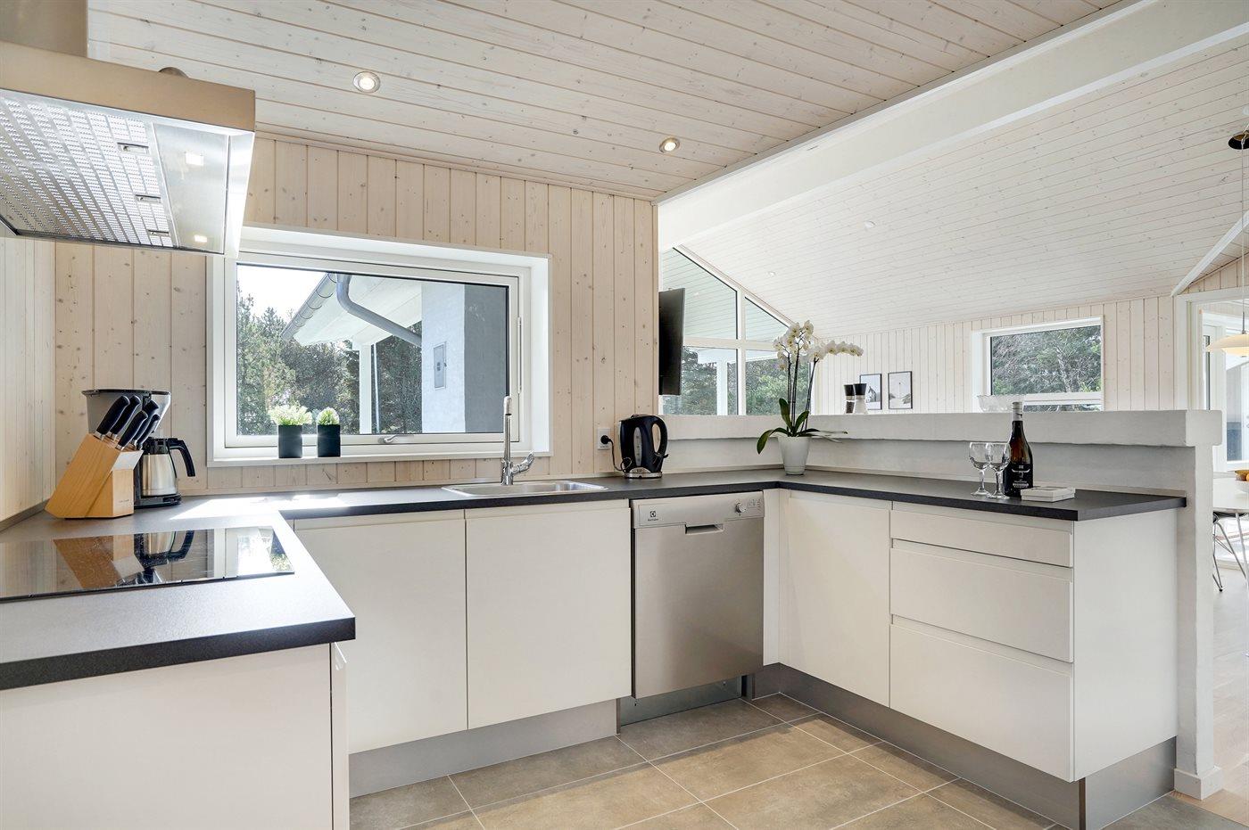 Køkkenet er udstyret med 1 køleskab. Der er 4 keramiske kogeplader, varmluftovn samt opvaskemaskine.