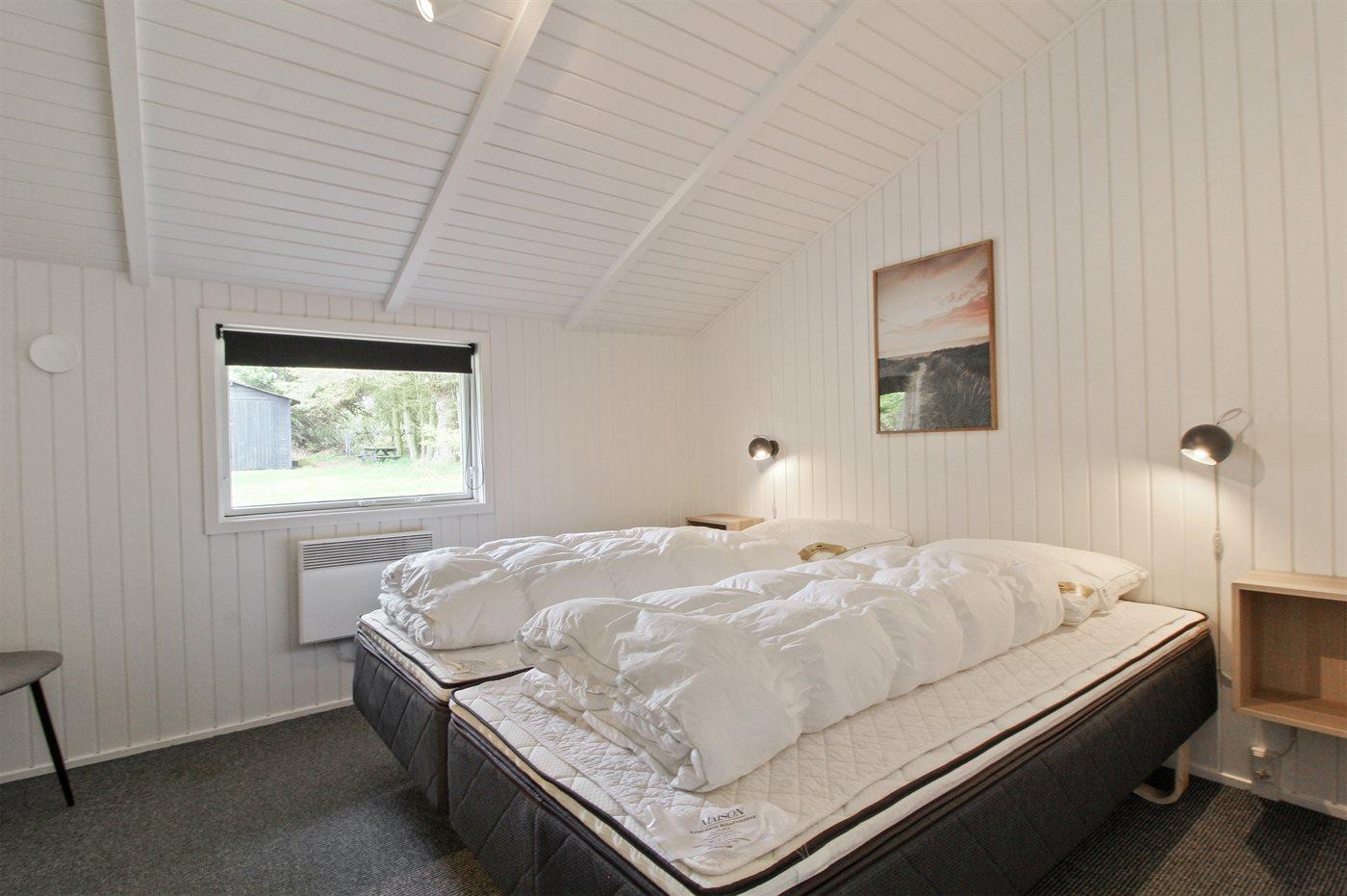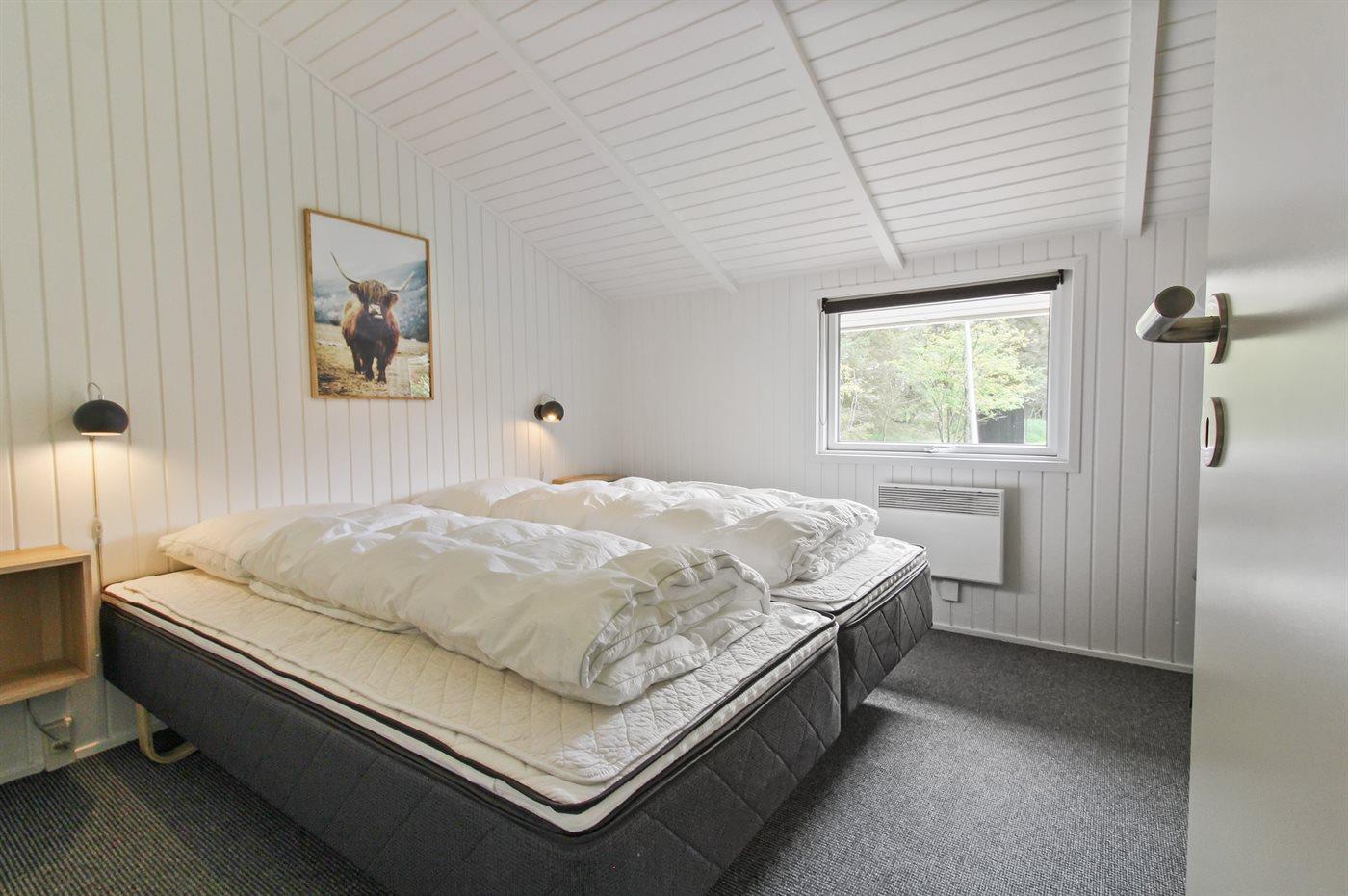 Der er i alt 4 soveværelser. Sovepladserne fordeler sig på: 6 sovepladser i dobbeltsenge. 2 sovepladser i sovesofa (dobbelt). Derudover er der 1 stk. barneseng.