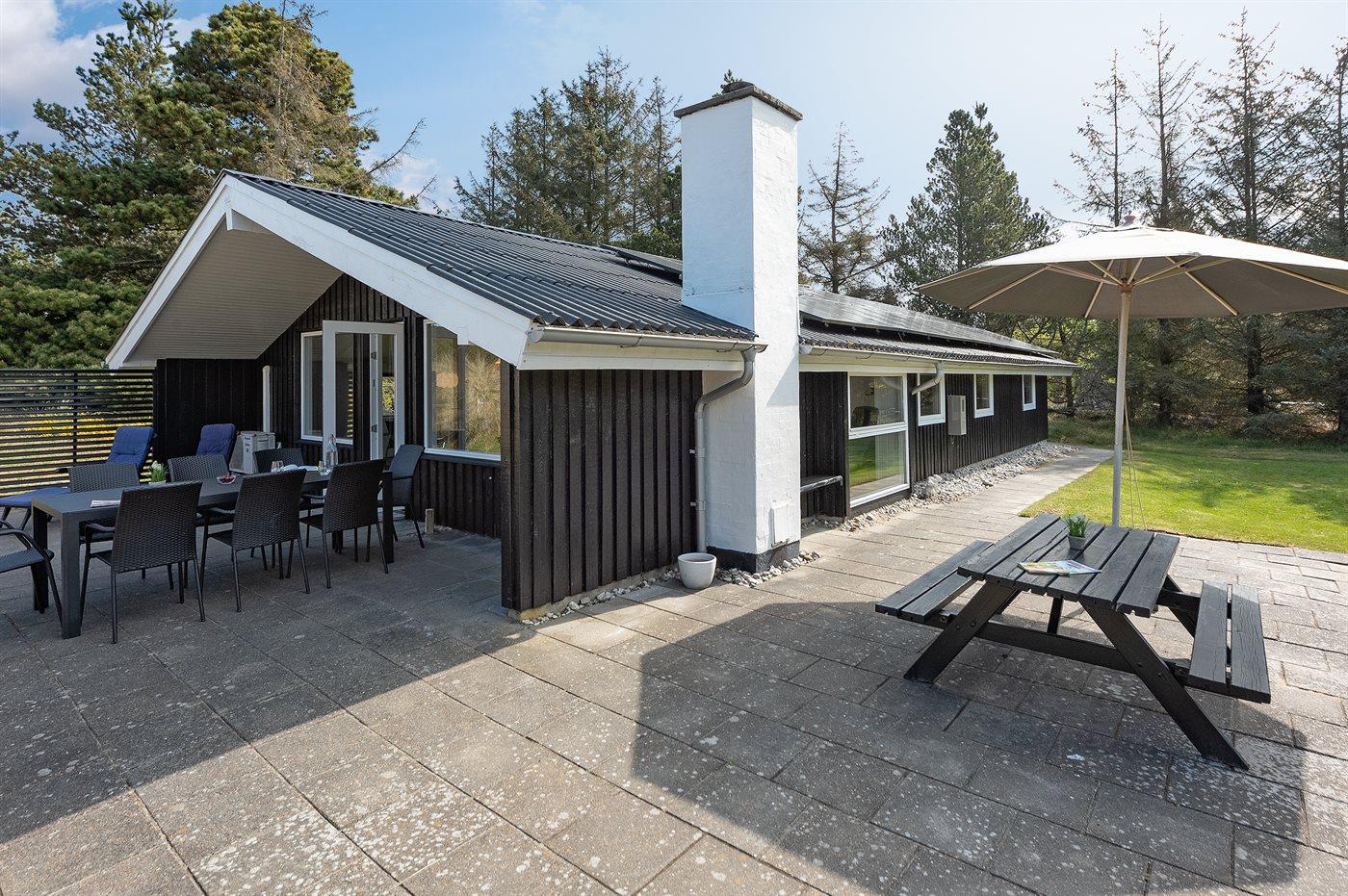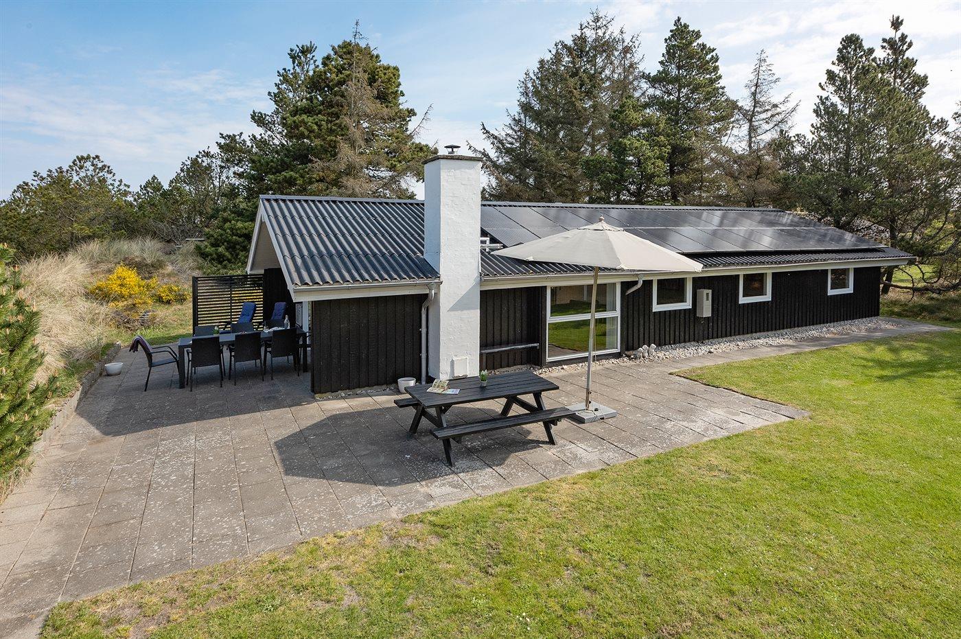 Et dejligt sommerhus med en rigtig skøn beliggenhed. Huset ligger på en 3060 m2 stor natur-/ klitgrund omgivet af træer og buske.
